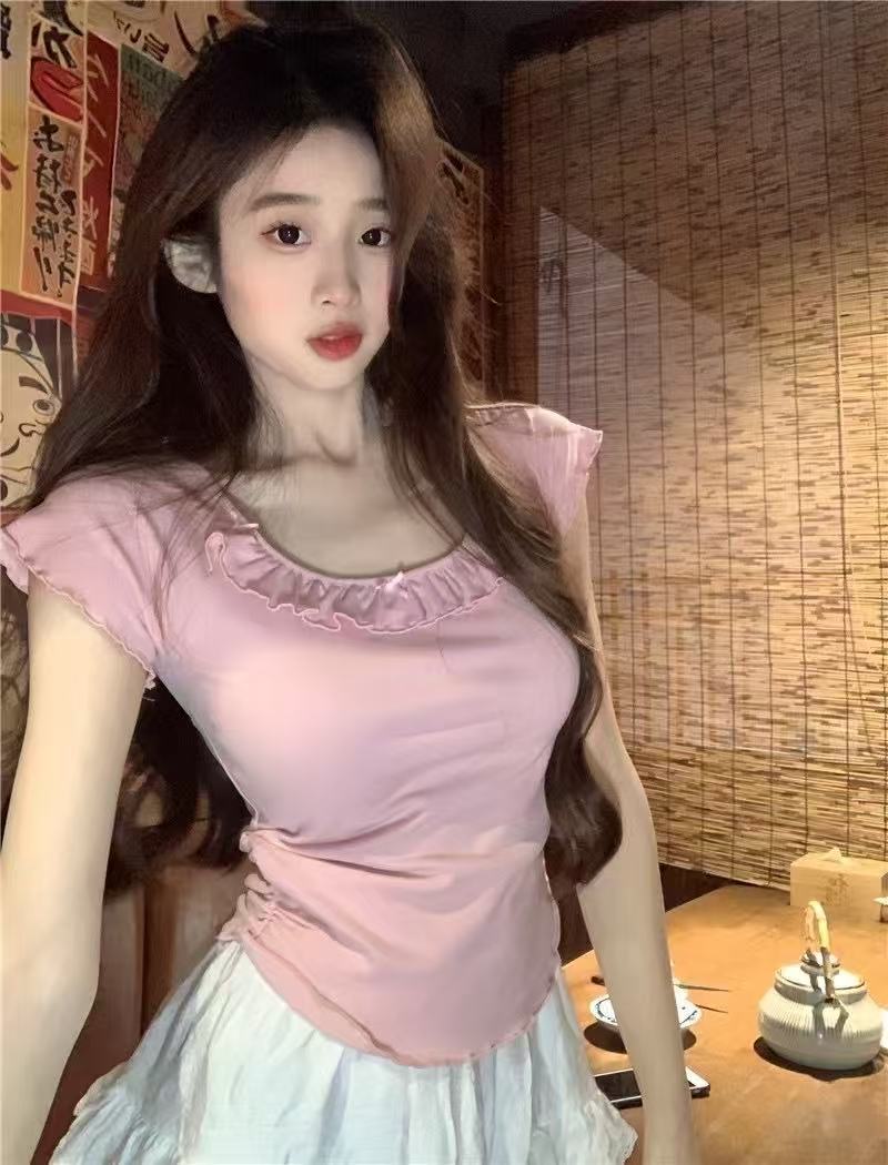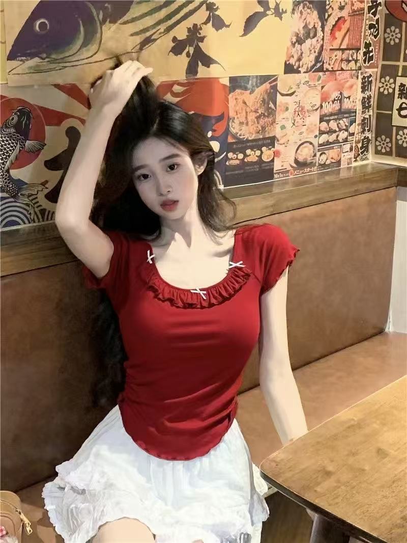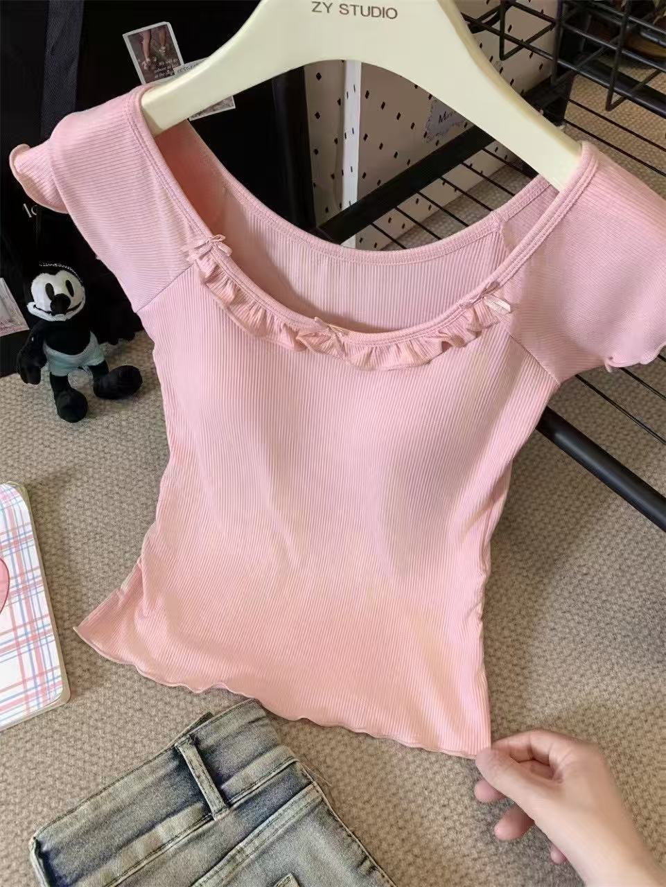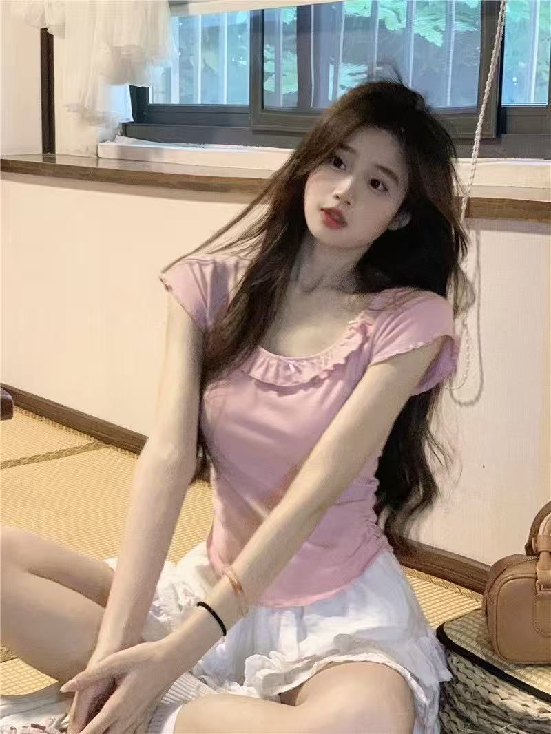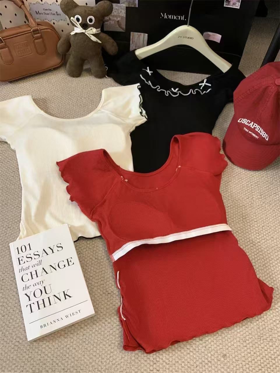 Дизайн с бантиком чистый ветер с короткими рукавами футболка женская с нагрудным ковриком