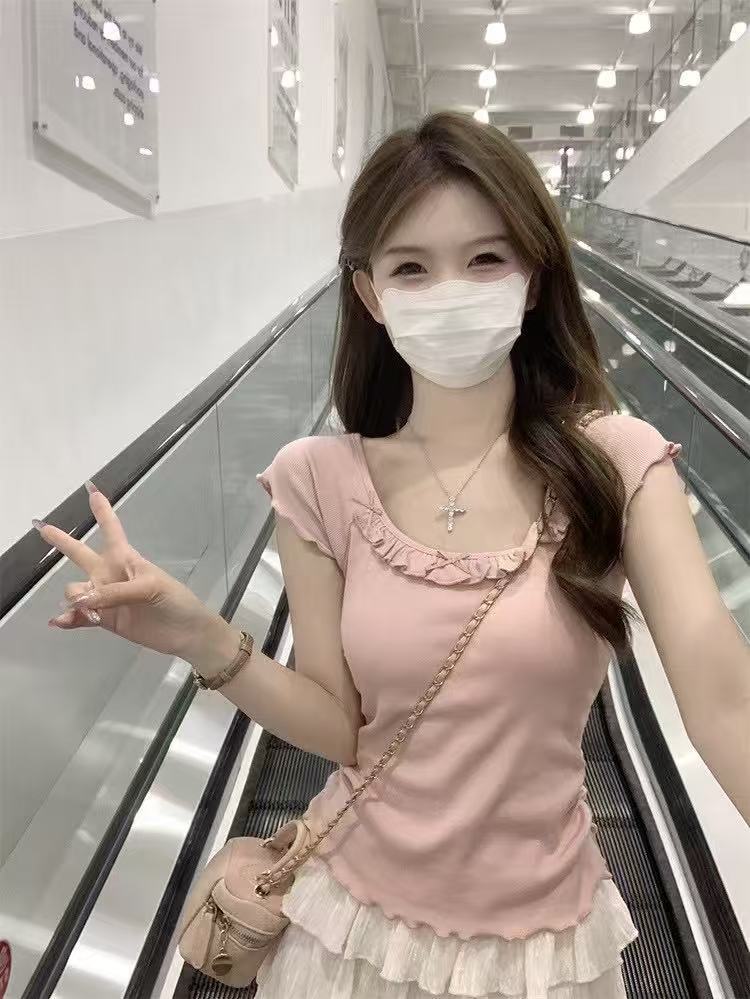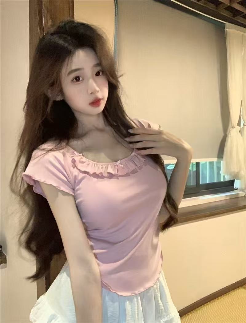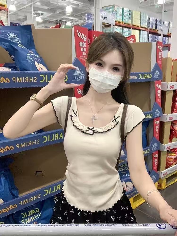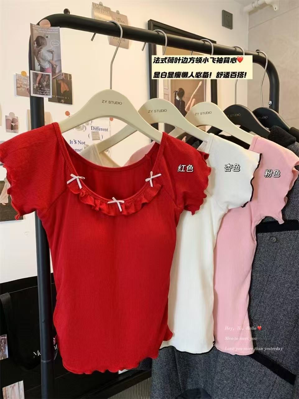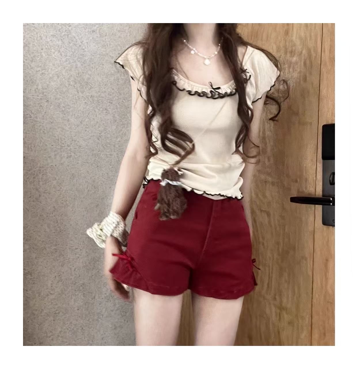 Дизайн с бантиком чистый ветер с короткими рукавами футболка женская с нагрудным ковриком
