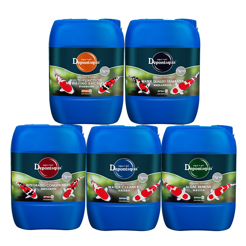 Несприимчивые бактерии 5 л (выдерживают 50 тонн воды); Средство для удаления моха для удаления водорослей, 5 л (выдерживает 50 тонн воды); Стабилизатор воды 5л (выдерживает 50 тонн воды); Комплексный кондиционер емкостью 5 л (выдерживает 50 тонн воды); Водоочиститель 5 л (выдерживает 50 тонн воды)