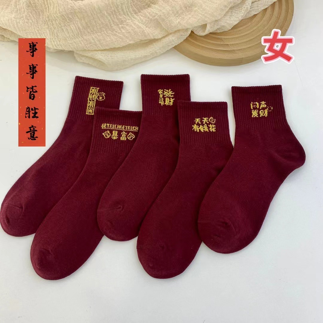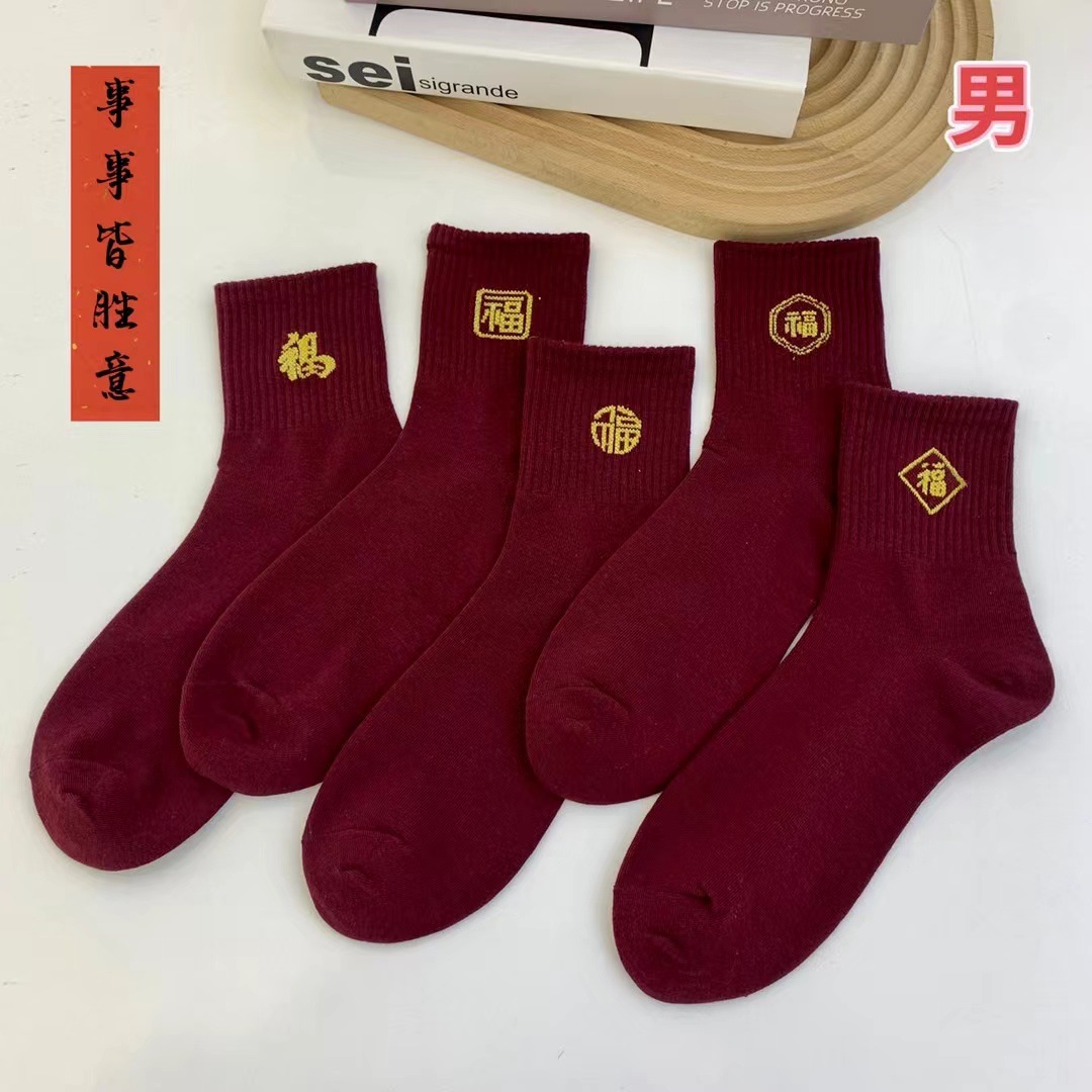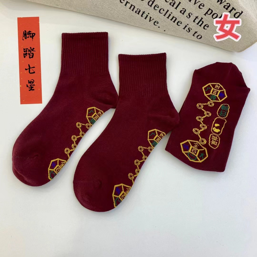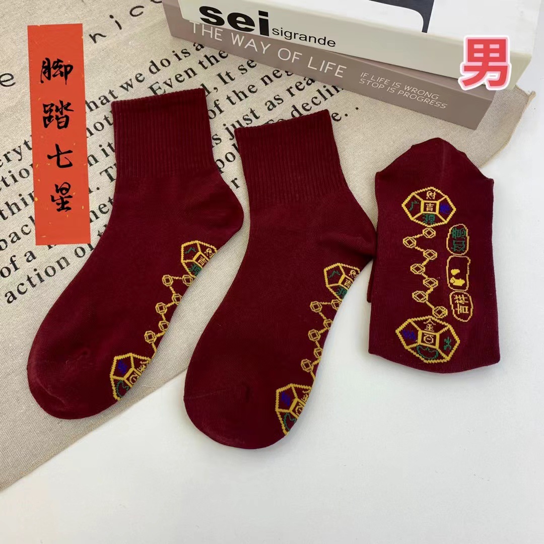 Красные носки на год рождения, унисекс, Год Лошади, семикратные носки, ярко-красные, семикратный символ удачи, хлопковые носки на удачу