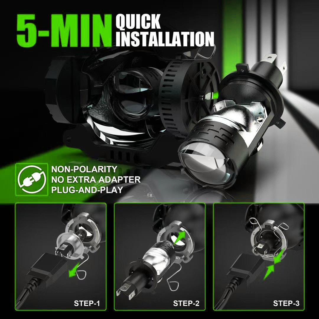 Новая светодиодная фара H4 для мотоцикла, линза «рыбий глаз», двойной свет (дальний и ближний), интегрированная, суперяркая, подключаемая.