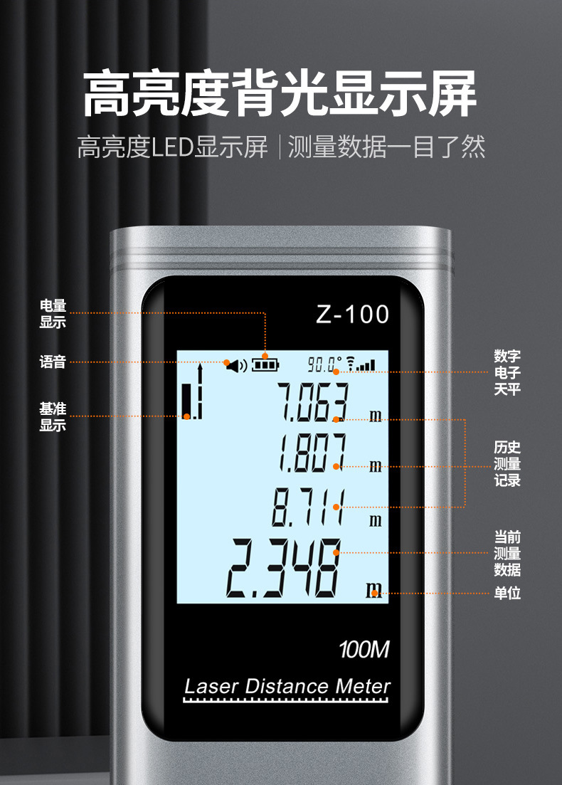 Инфракрасный лазерный дальномер Zhenbing, высокоточный измерительный прибор, портативный многофункциональный измерительный прибор для комнаты, литиевая батарея, лазерная линейка