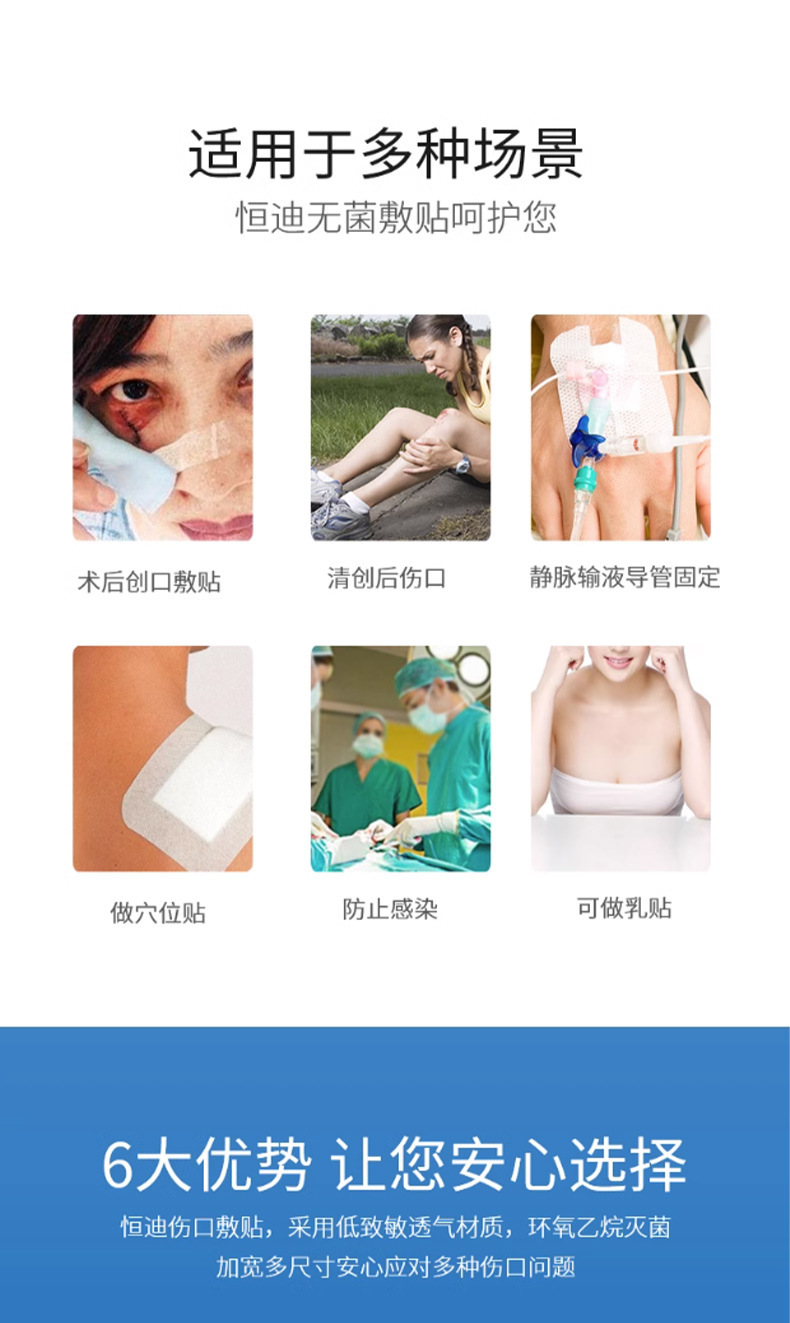 Медицинская стерильная повязка Hengdi, одноразовая водонепроницаемая повязка для заживления ран, дышащий пластырь большого размера, OEM-производство на заказ