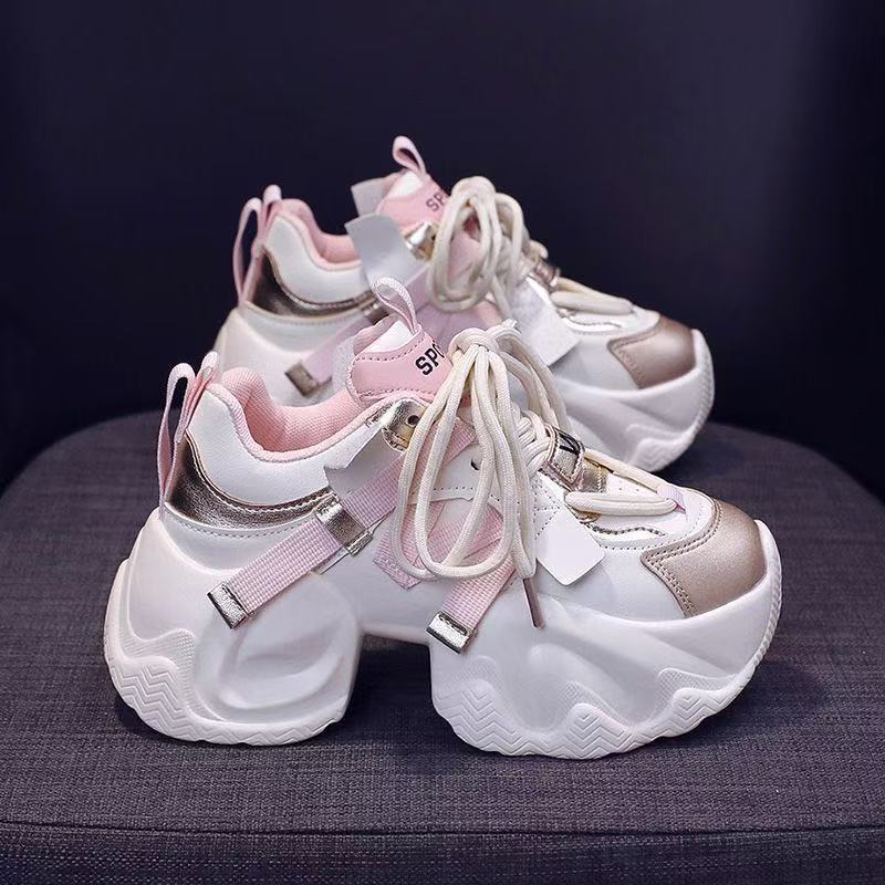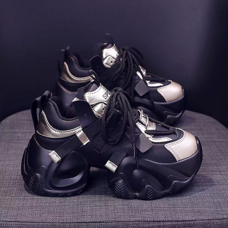 Обувь папы черный золотой удар женский весной и осенью 2025 года новая корейская версия тонкая и толстая подошва 8 см легкие дикие кроссовки