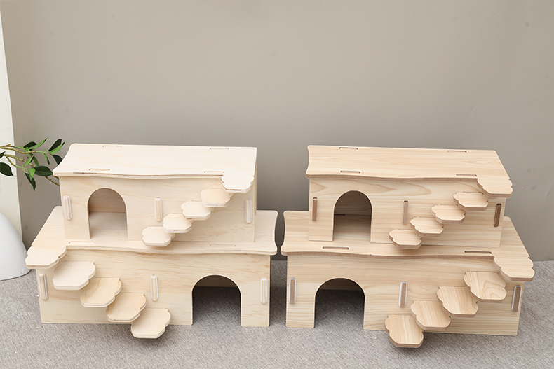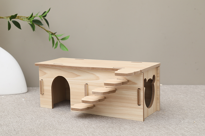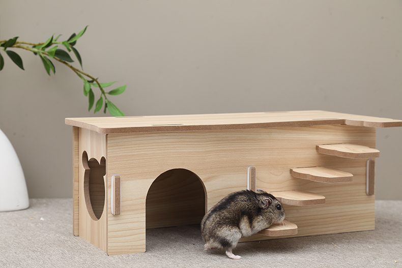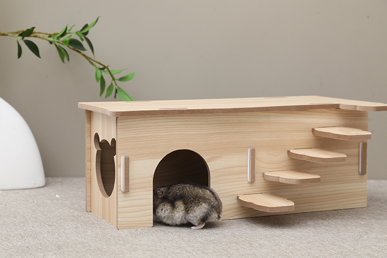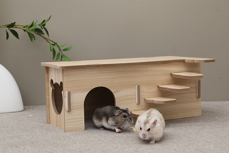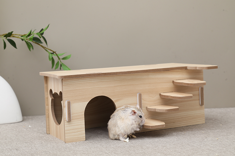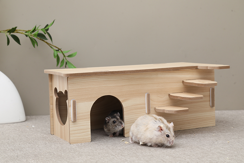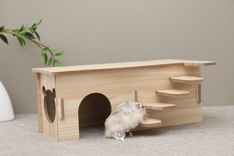 Хомяк уклоняется от гнезда из массива дерева лестница с двумя спальнями