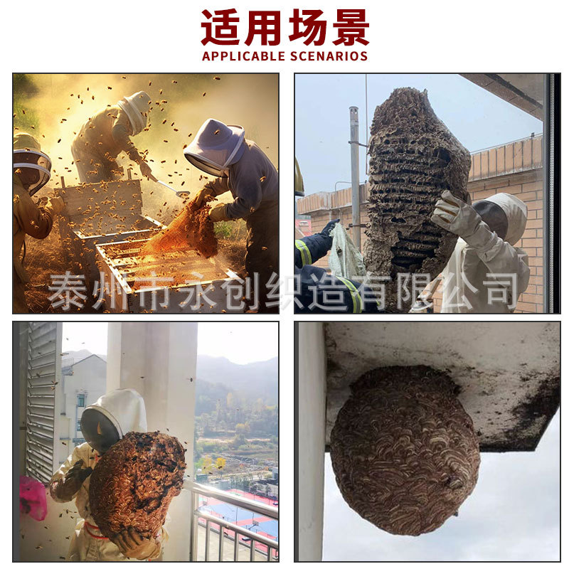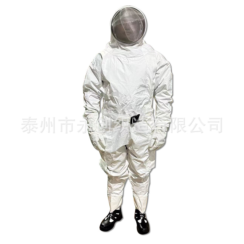 Костюм для защиты от пчел, цельный, двухслойный, из высокопрочной, устойчивой к проколам ткани, используется для пожаротушения и ловли ос на открытом воздухе.