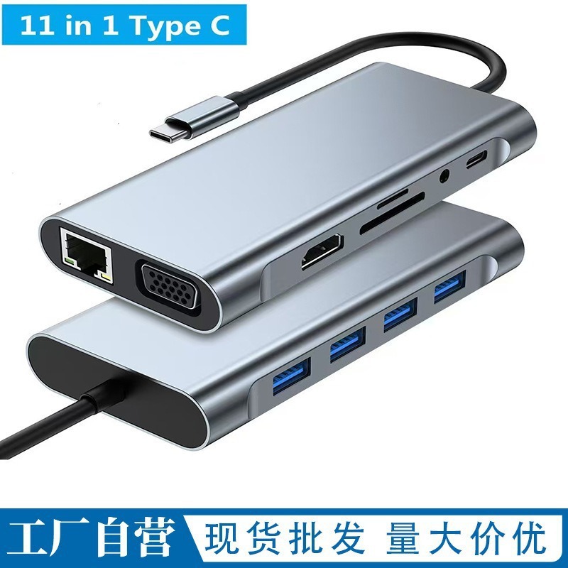Многофункциональная док-станция «одиннадцать в одном», многопортовый концентратор Type-C для ноутбуков со скоростью 100 Мбит/с, док-станция с поддержкой 3.0 Gigabit.