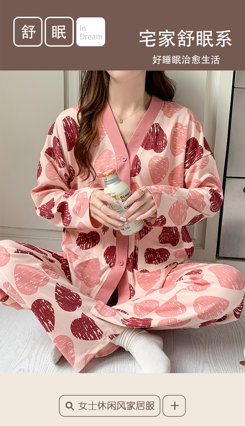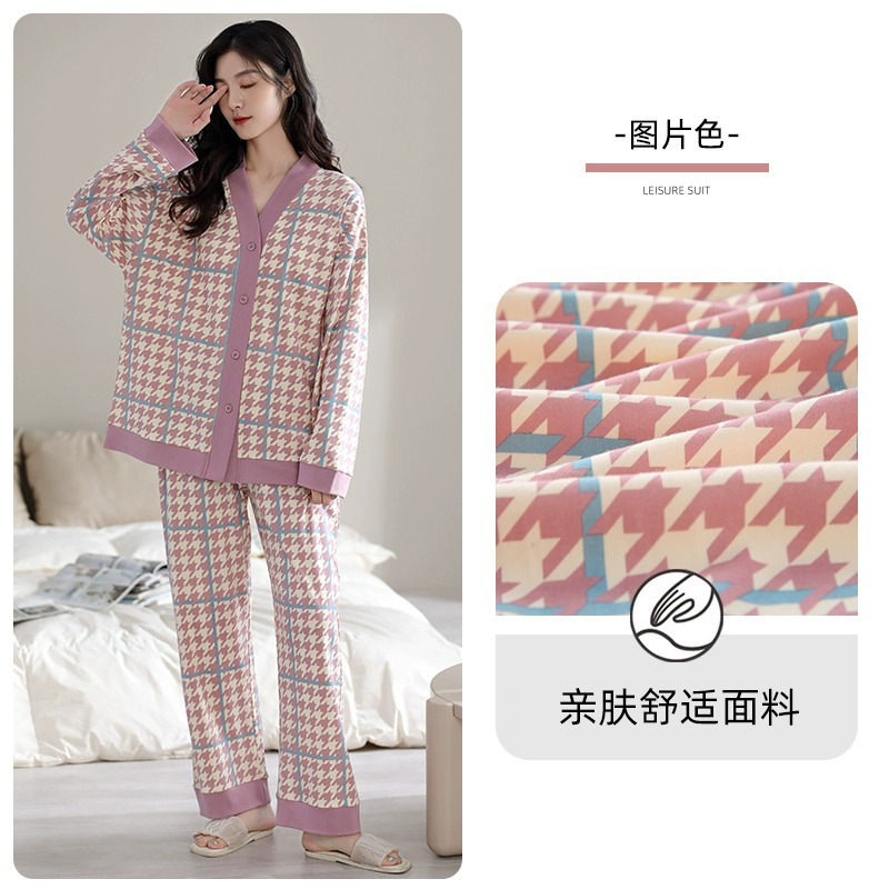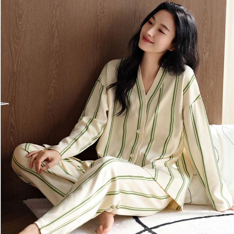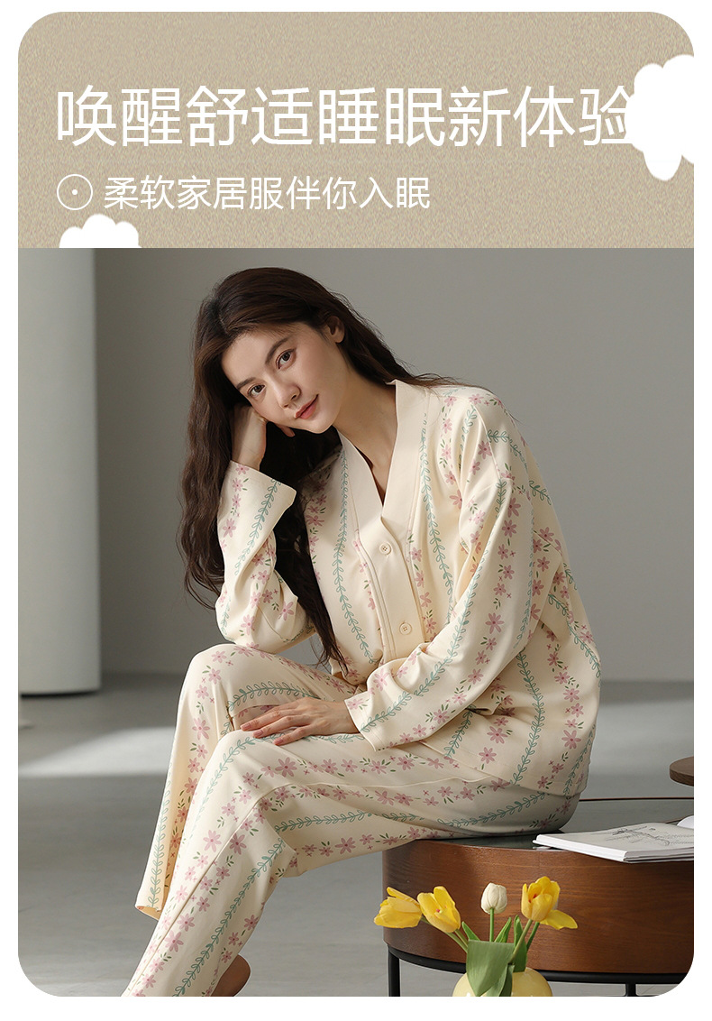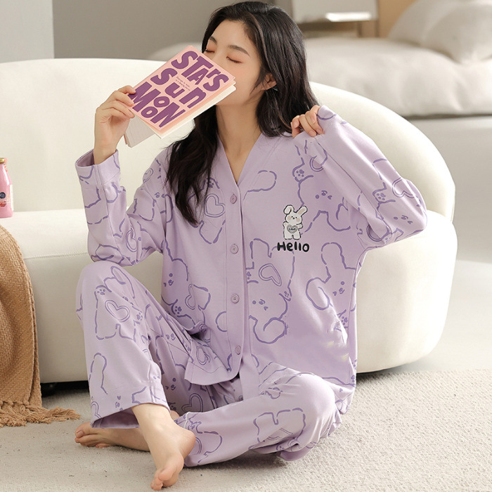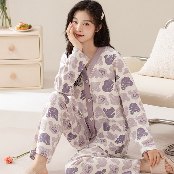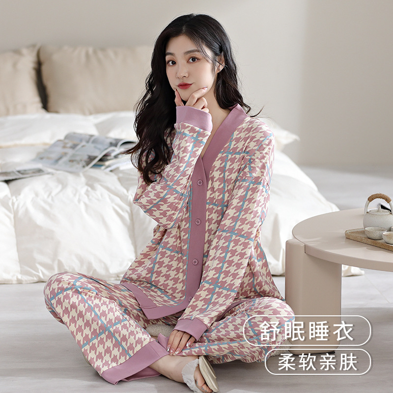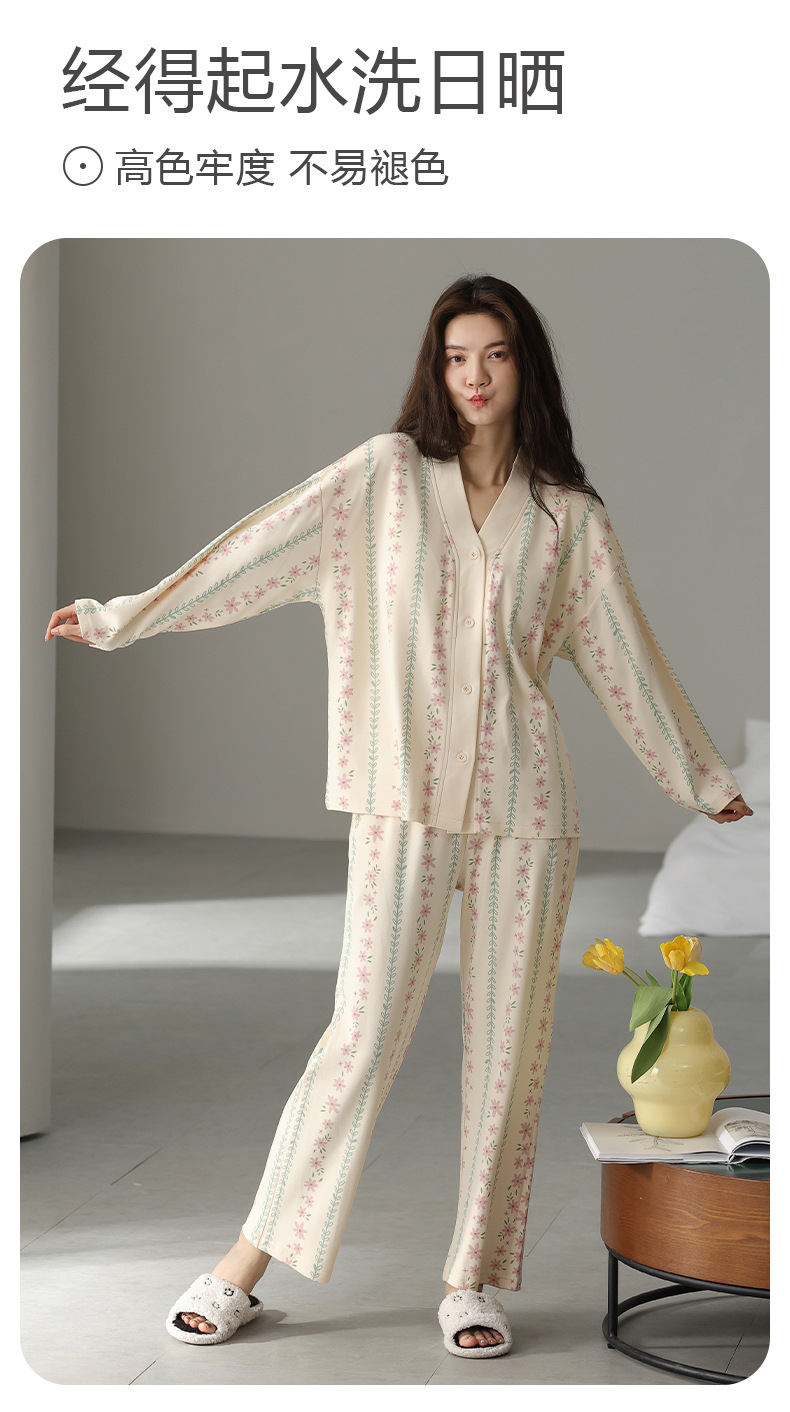 Хлопковая пижама женская весна и осень новый кардиган с длинными рукавами