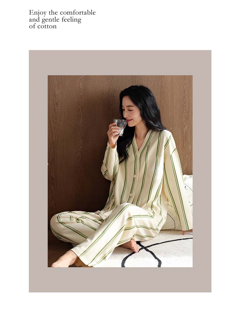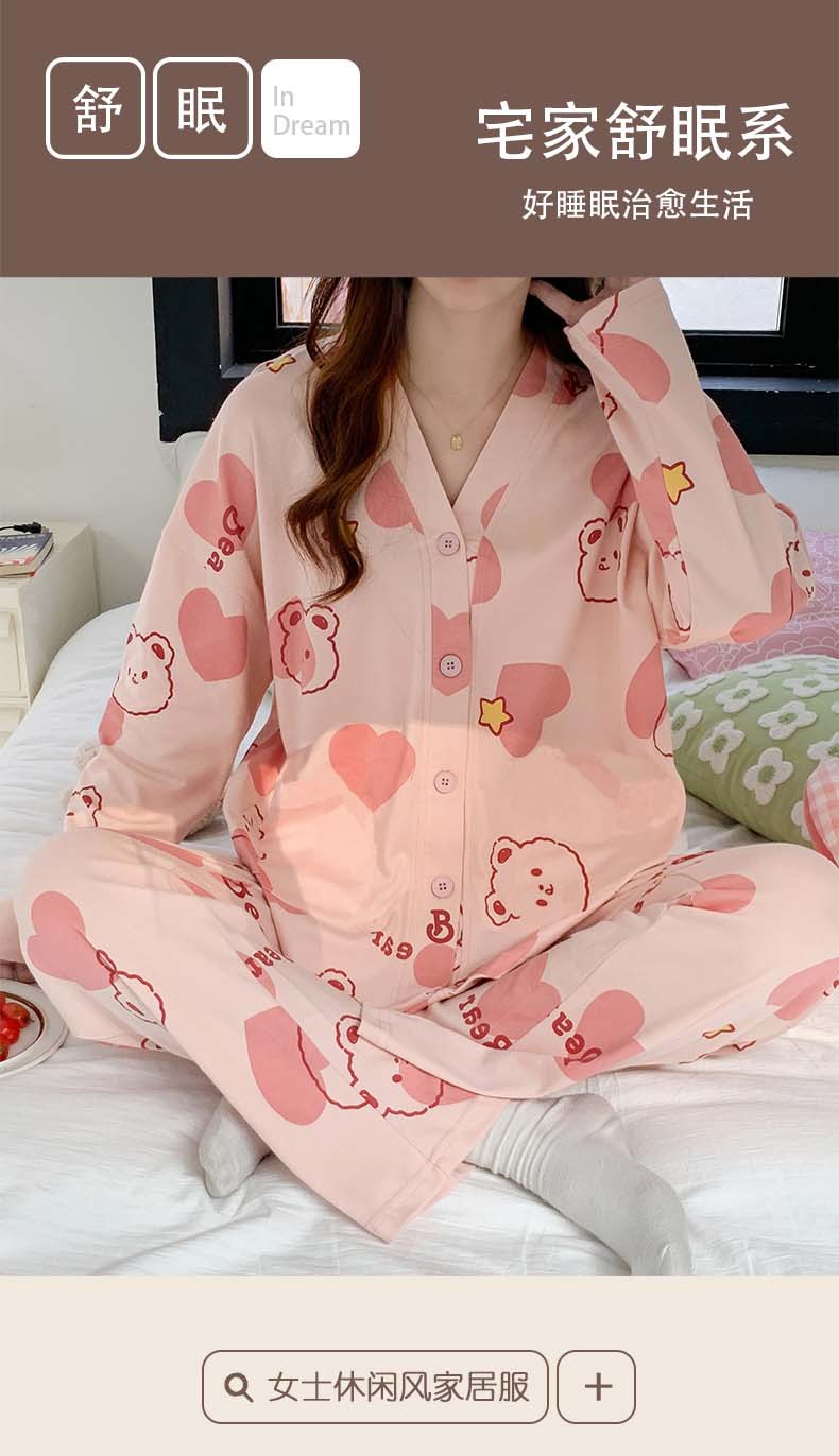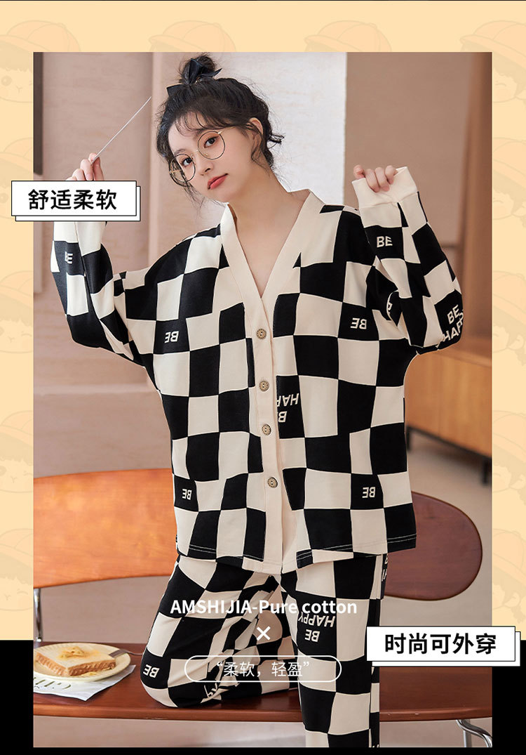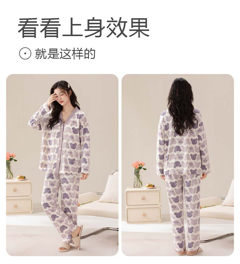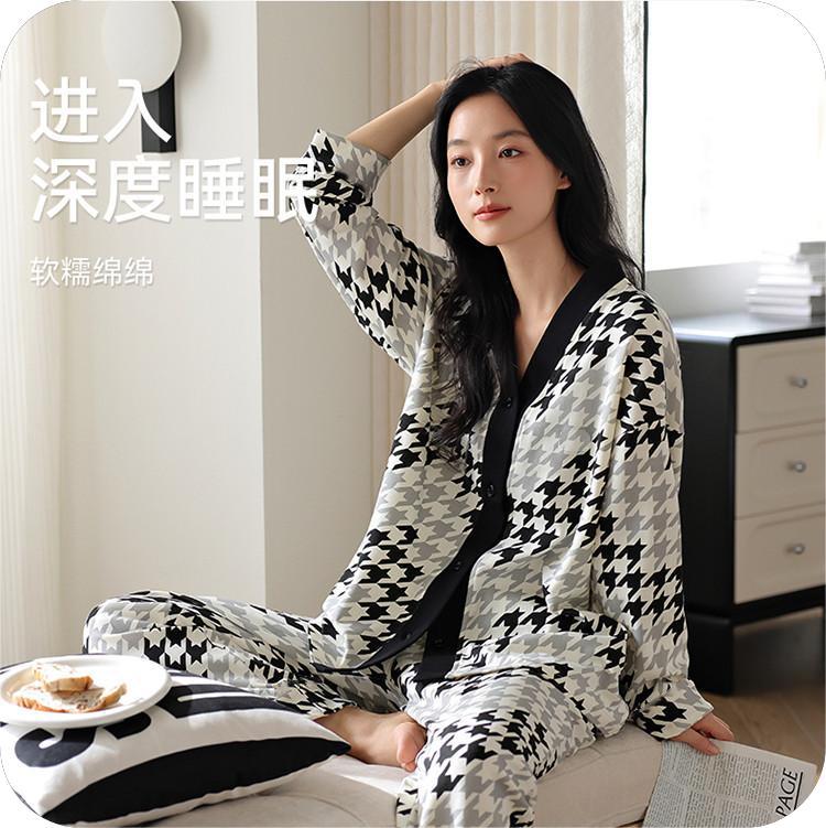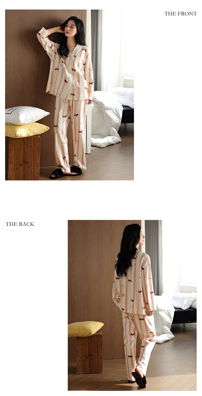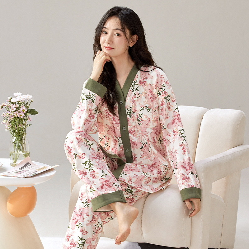 Хлопковая пижама женская весна и осень новый кардиган с длинными рукавами