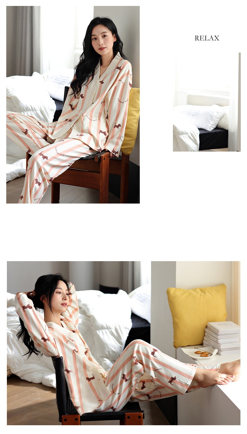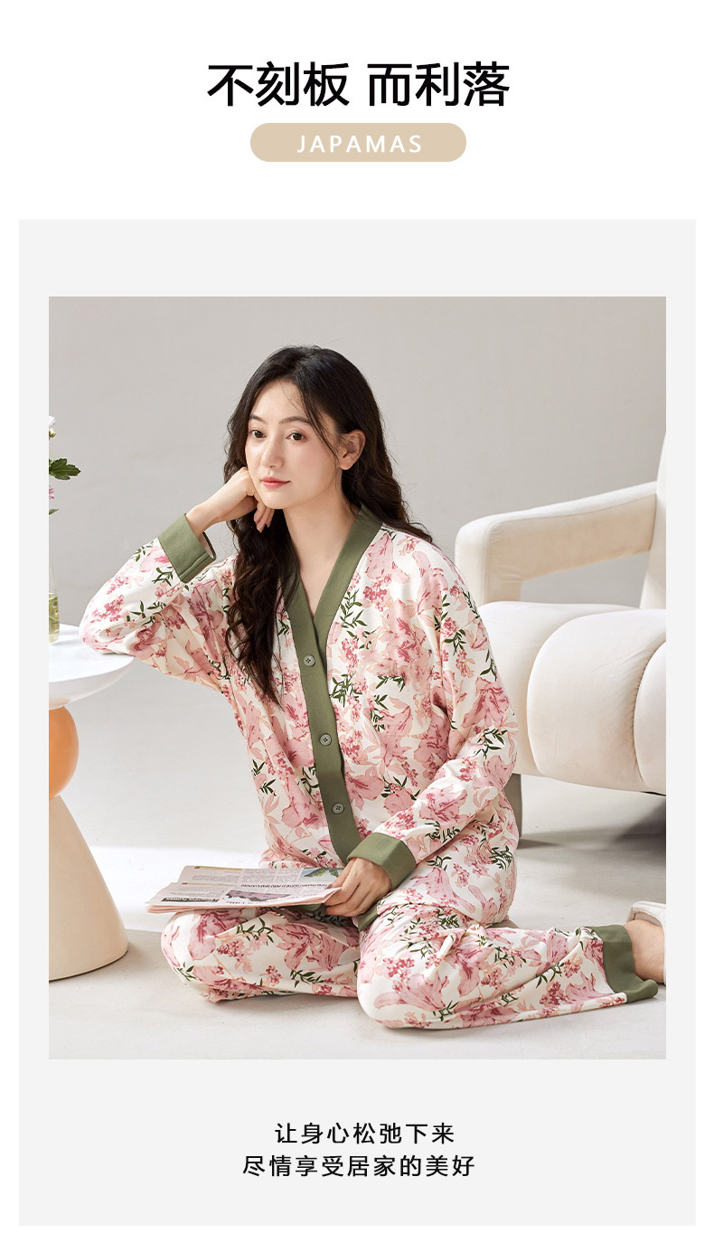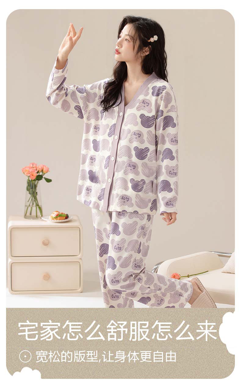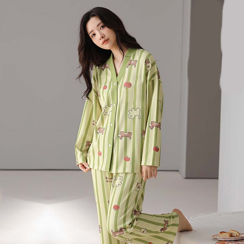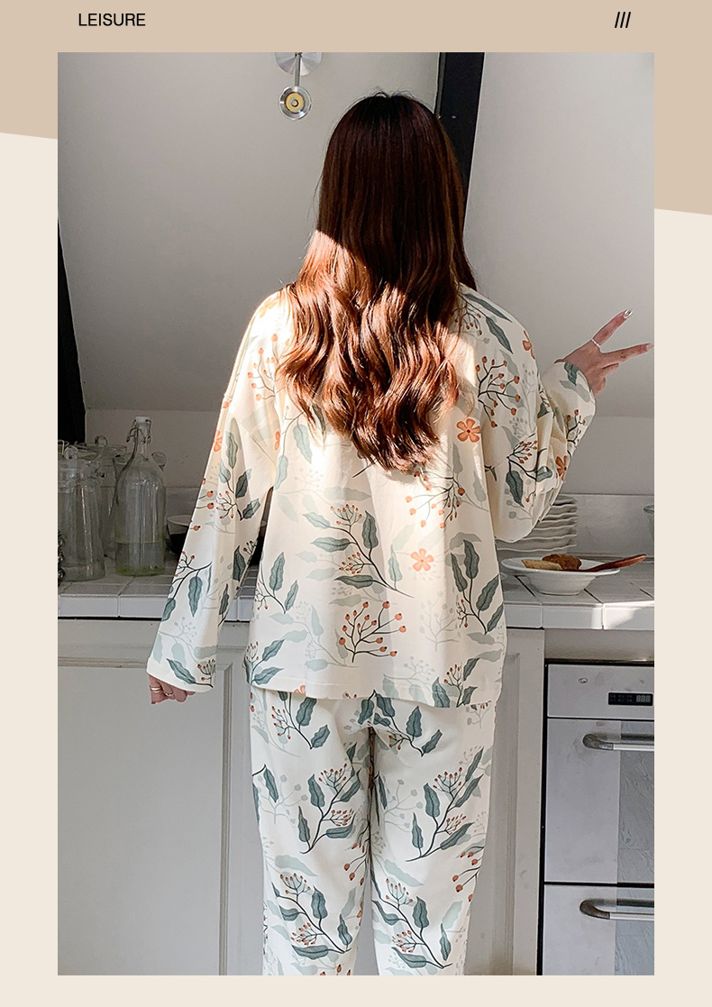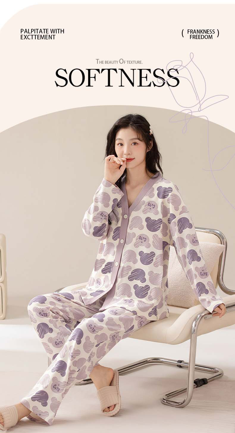 Хлопковая пижама женская весна и осень новый кардиган с длинными рукавами