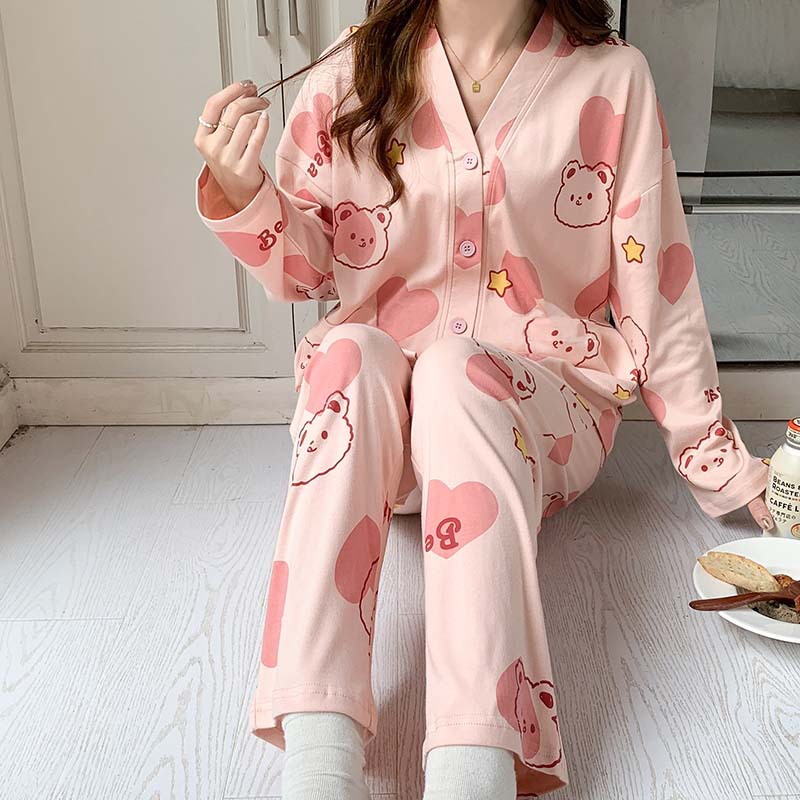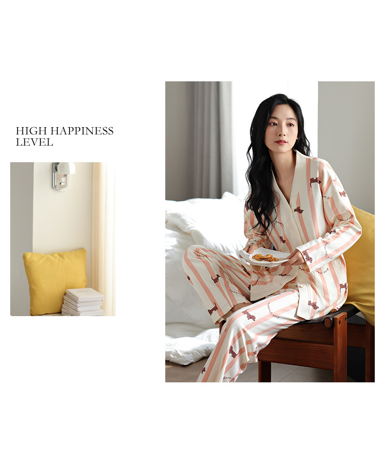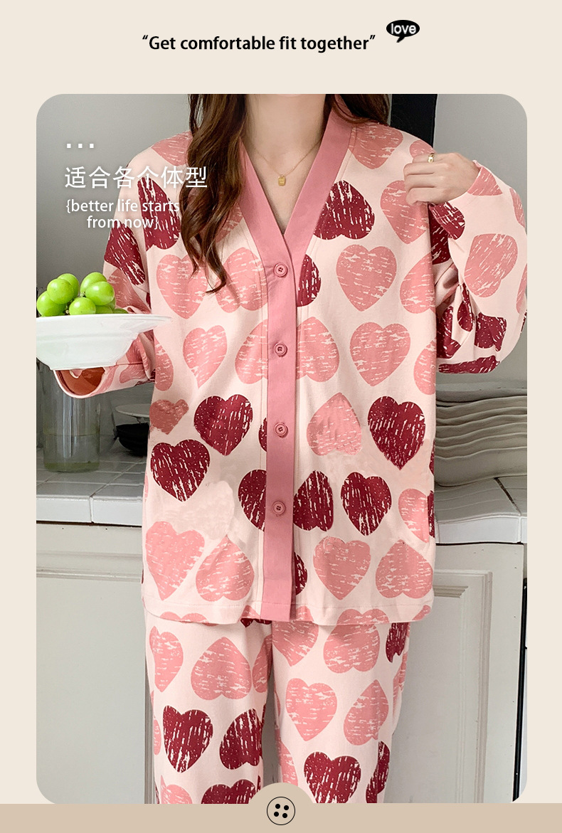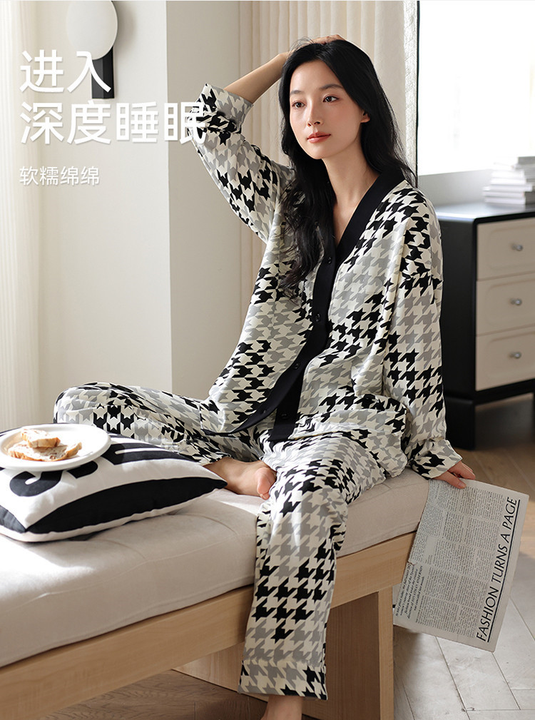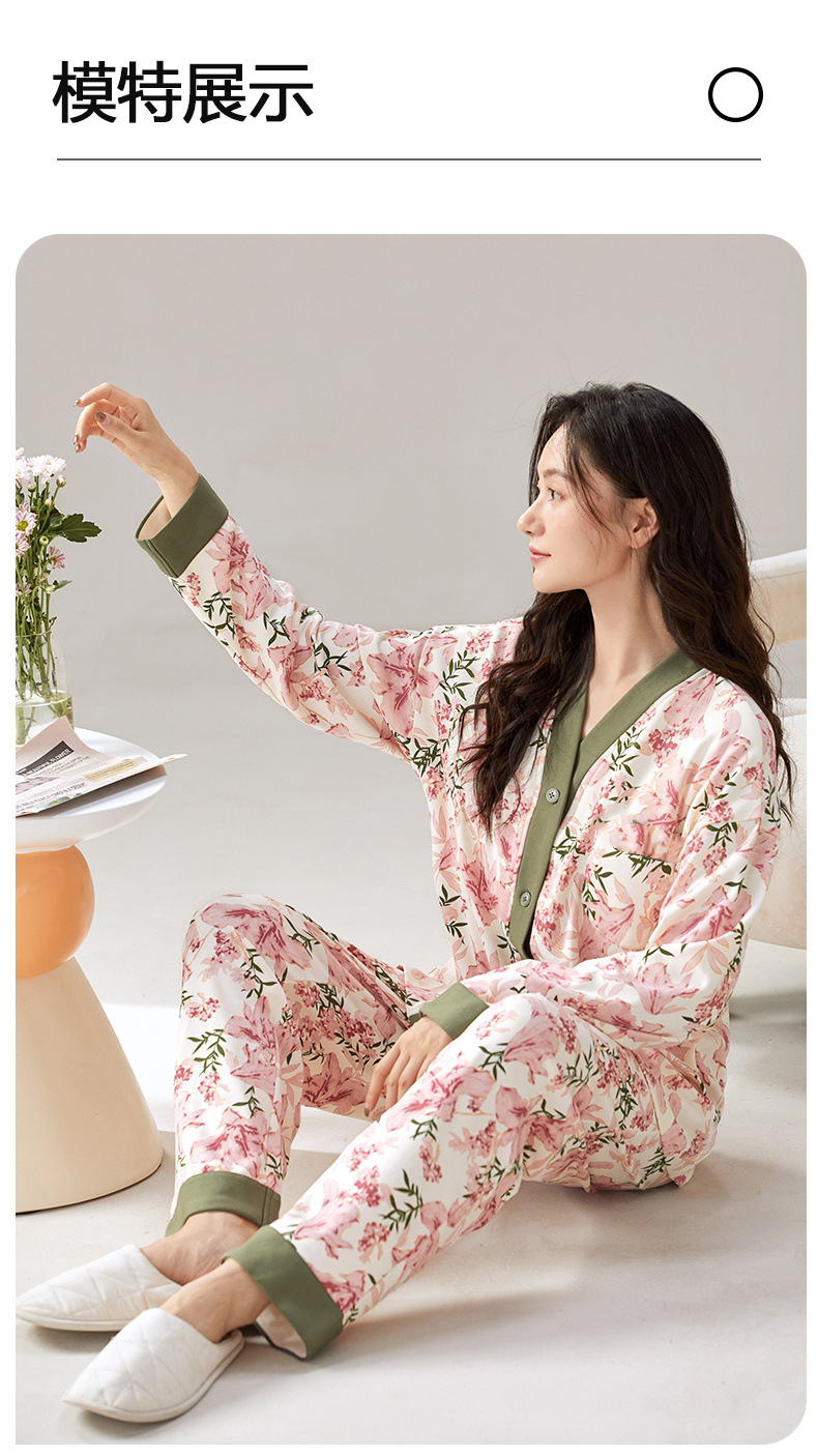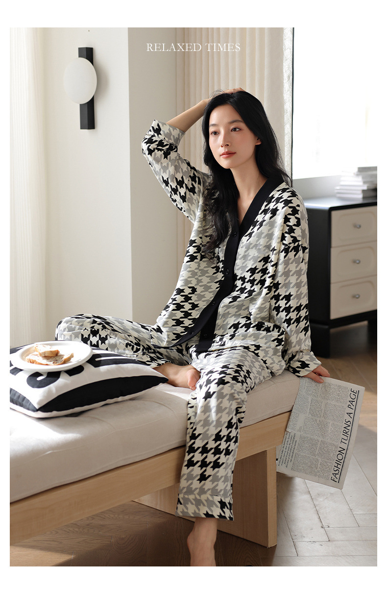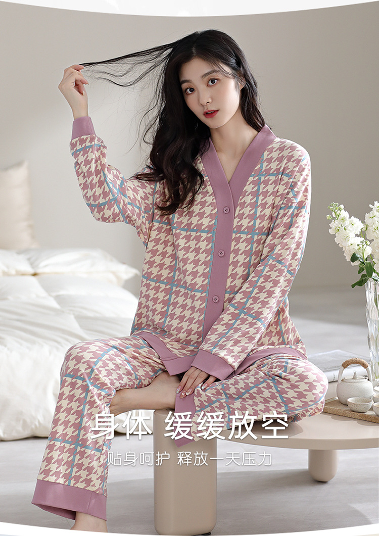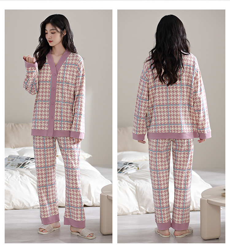 Хлопковая пижама женская весна и осень новый кардиган с длинными рукавами