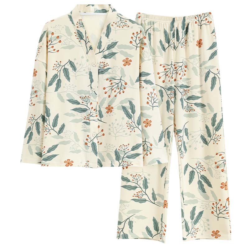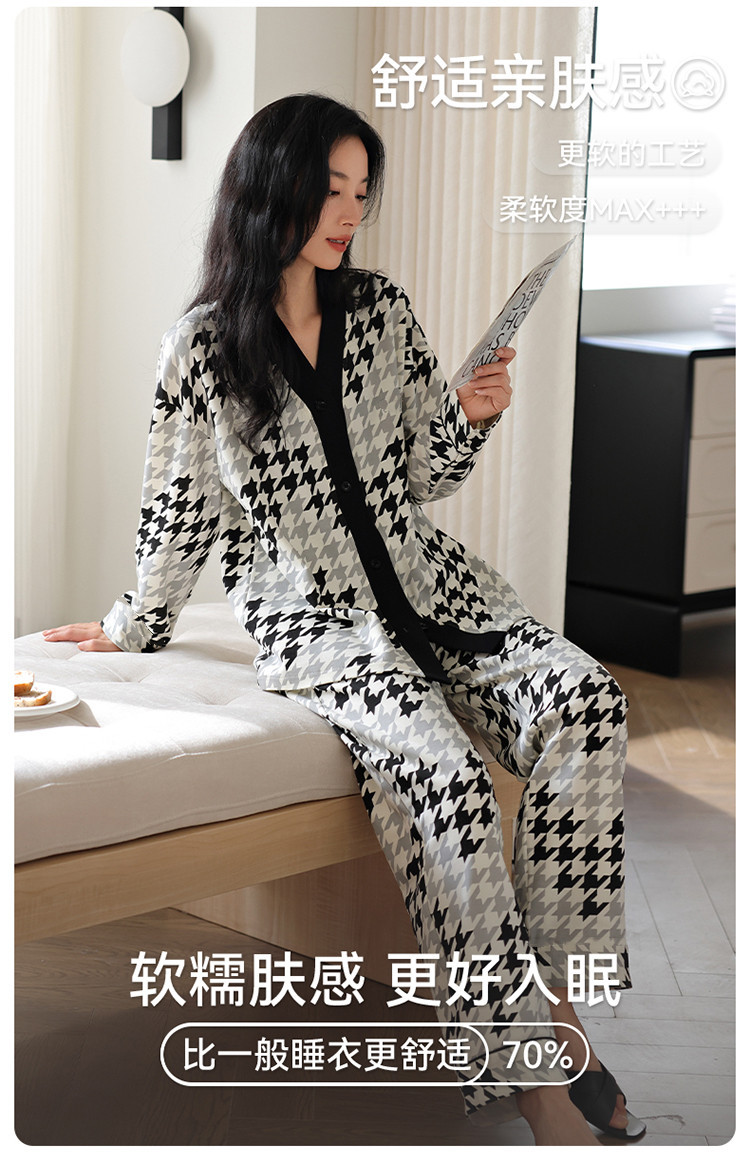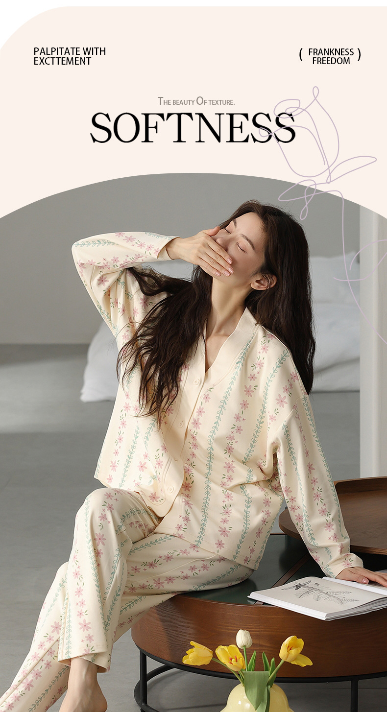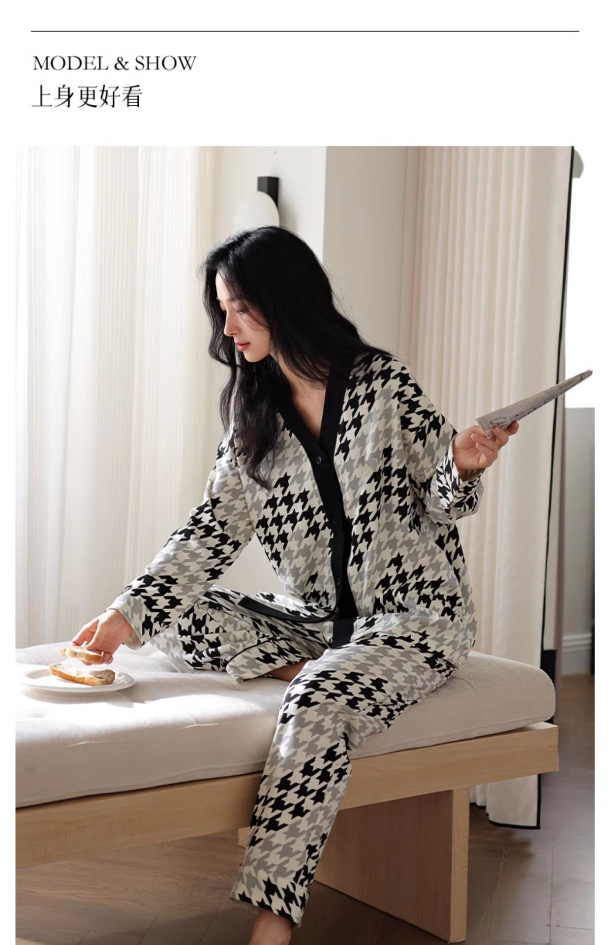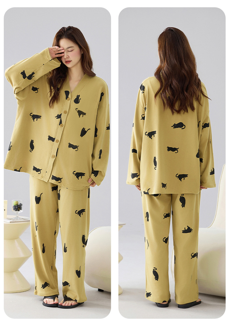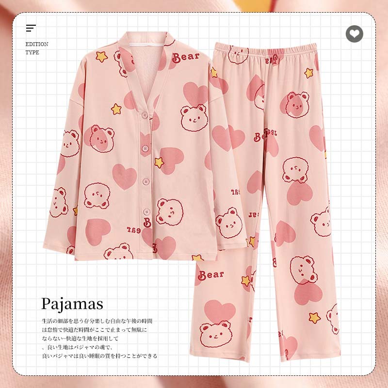 Хлопковая пижама женская весна и осень новый кардиган с длинными рукавами