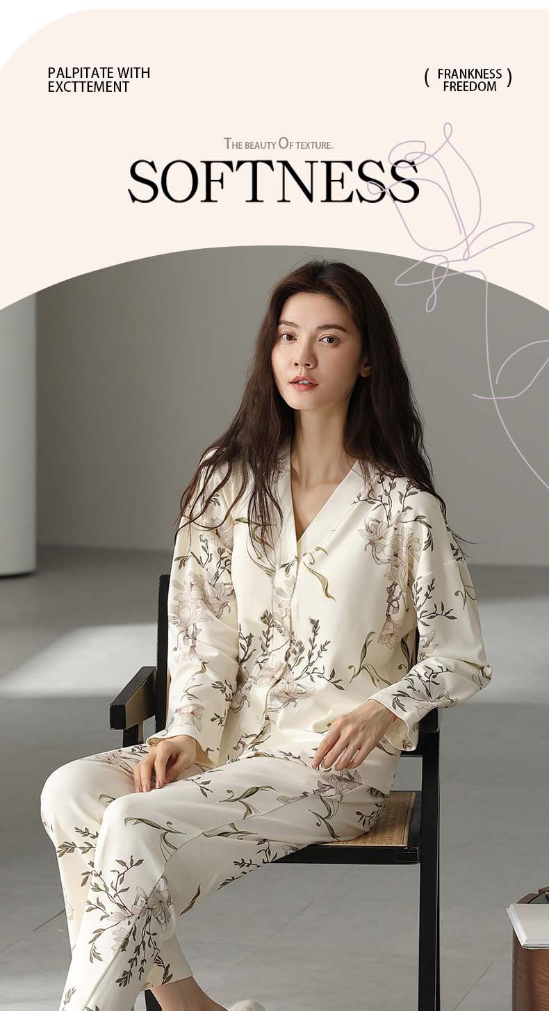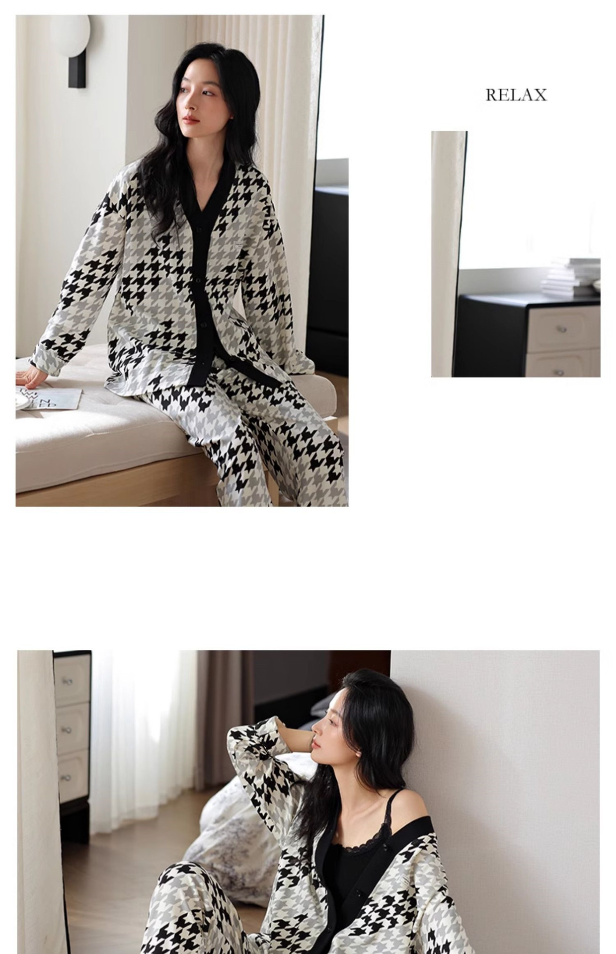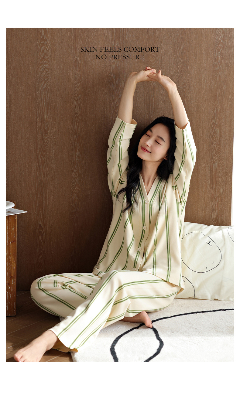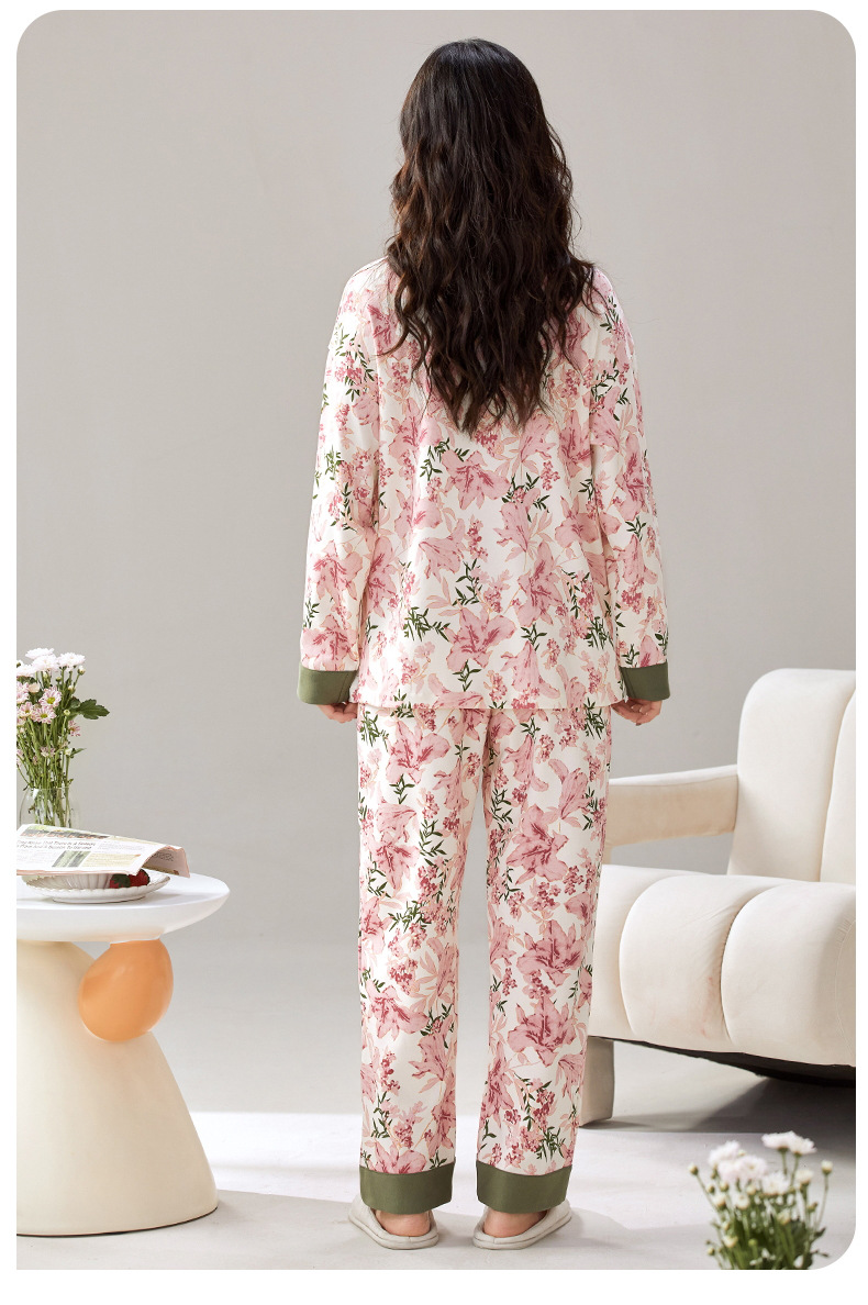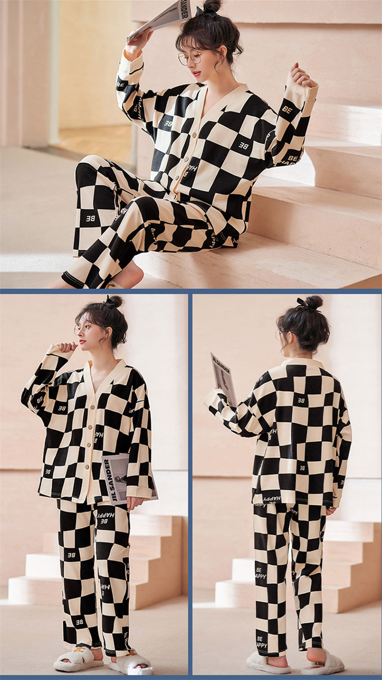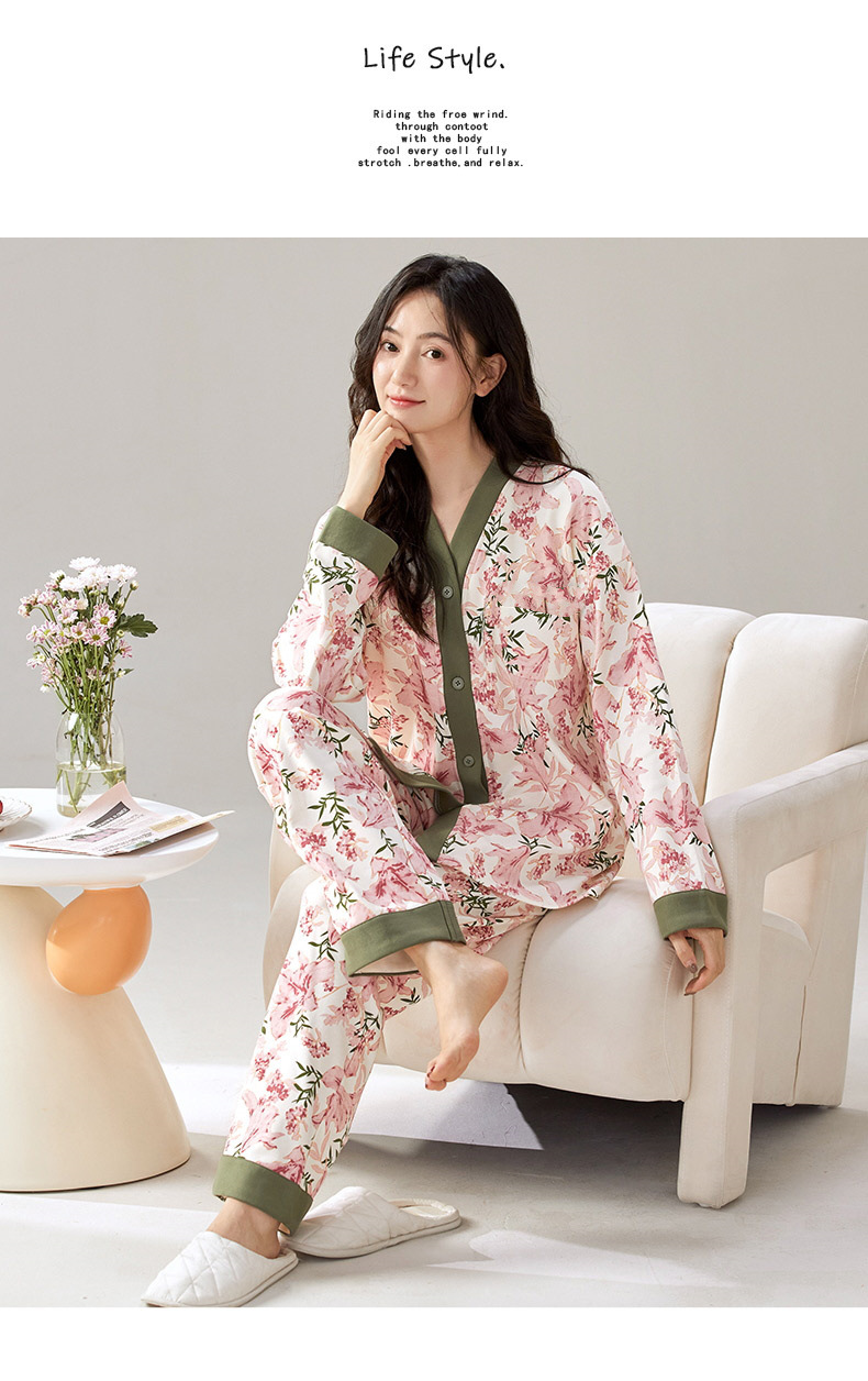 Хлопковая пижама женская весна и осень новый кардиган с длинными рукавами