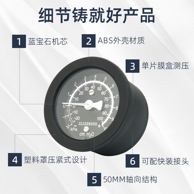 Медицинский диафрагменный манометр, специальный микроманометр для аппарата анестезии и аппаратов ИВЛ, медный сердечник, пластиковый корпус, высокоточный измеритель давления воздуха