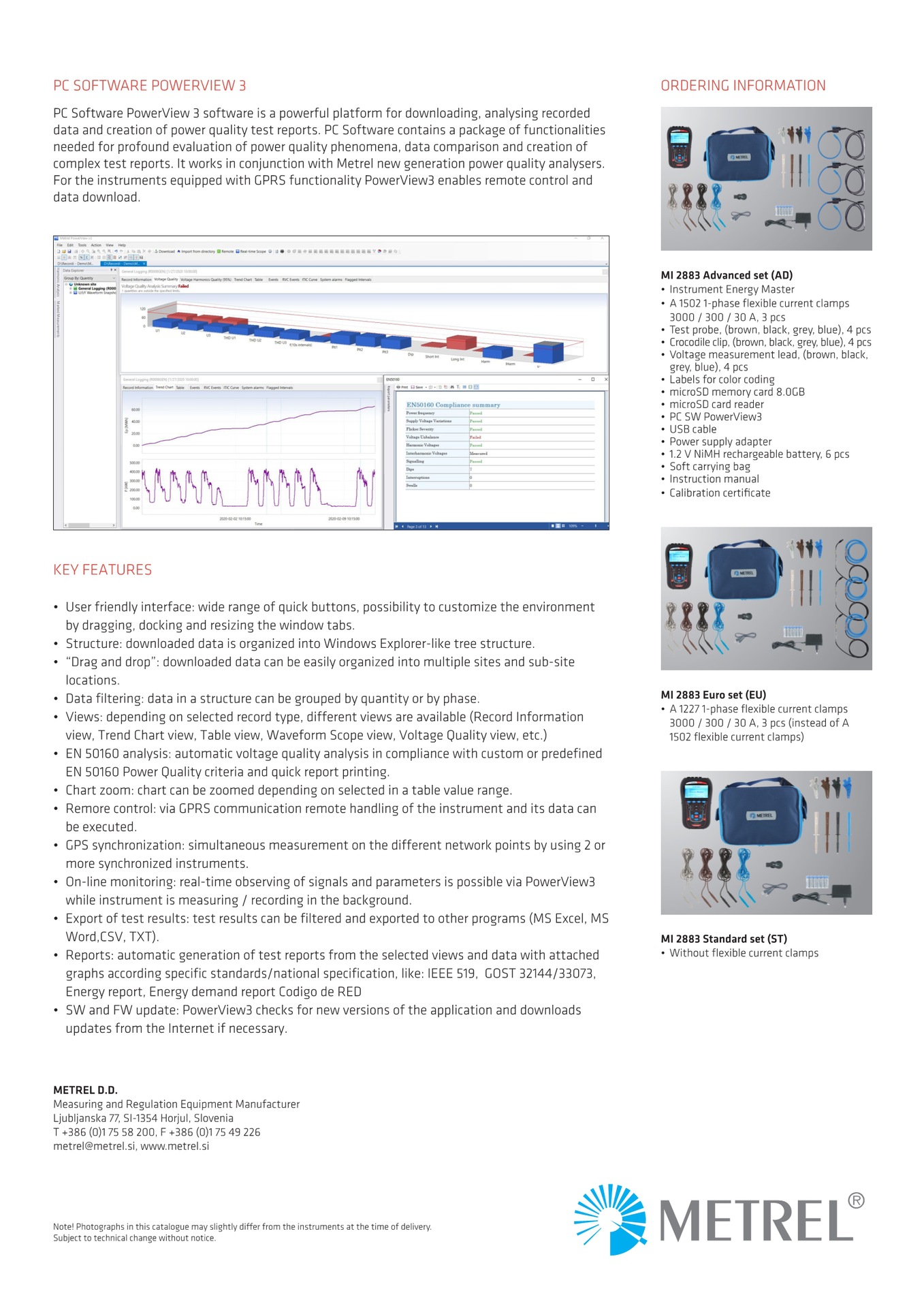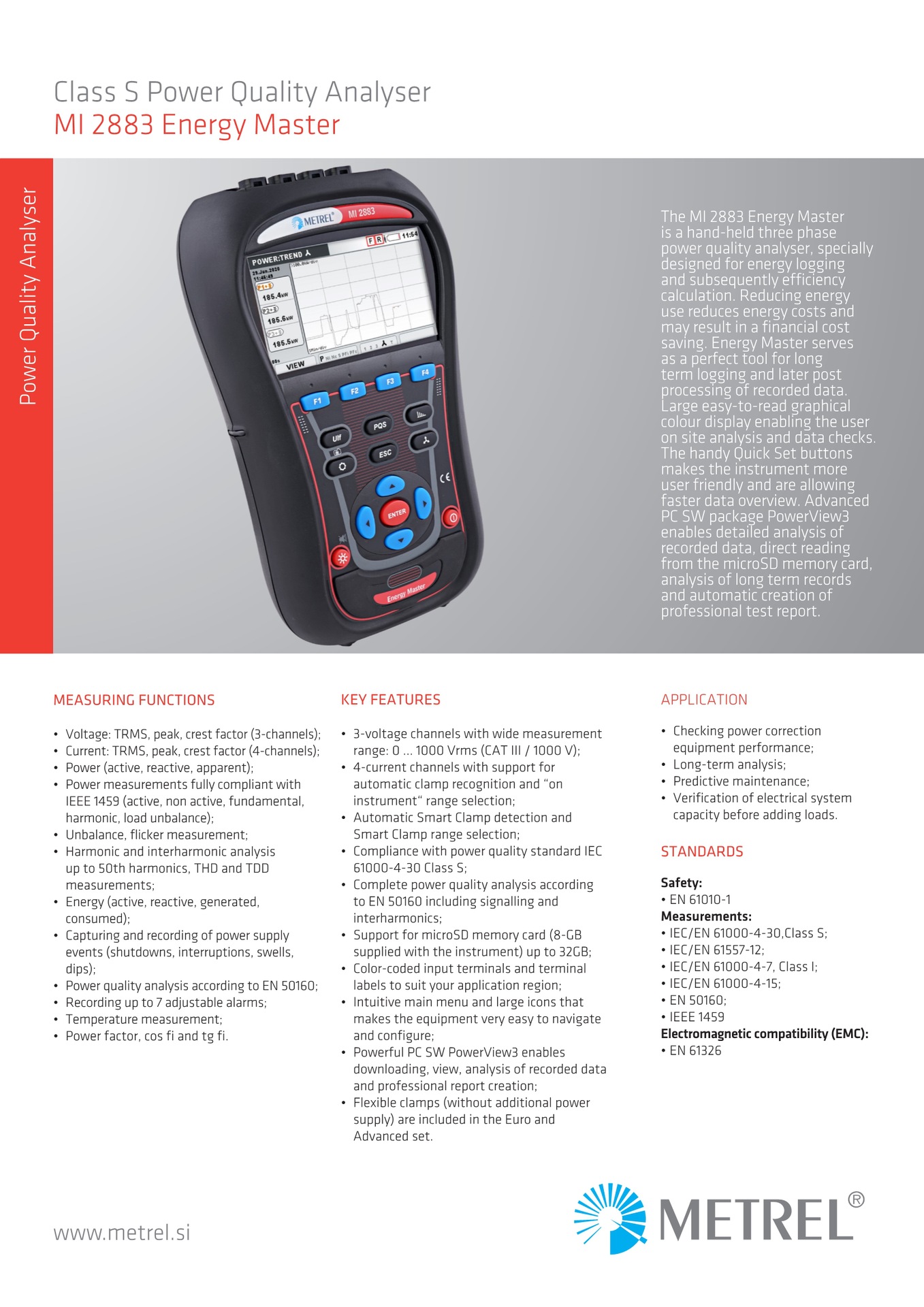 Немецкий анализатор качества электроэнергии METREL (Meicui) MI2883 S-класса, трехканальный, портативный