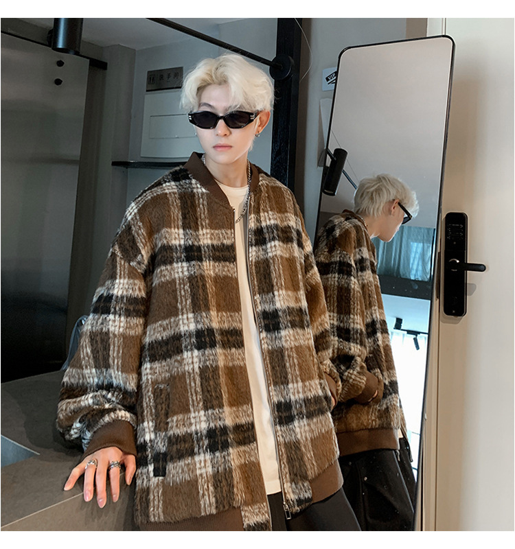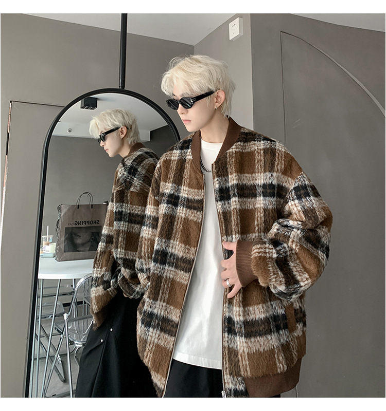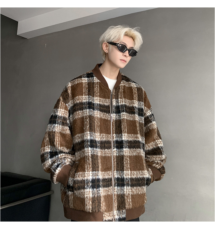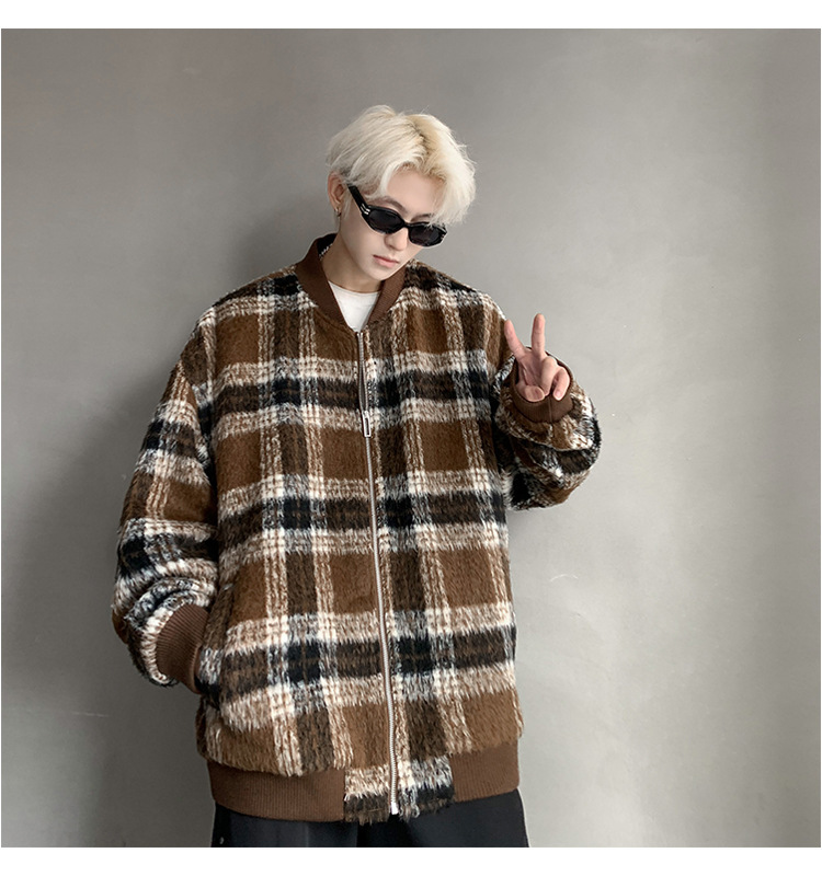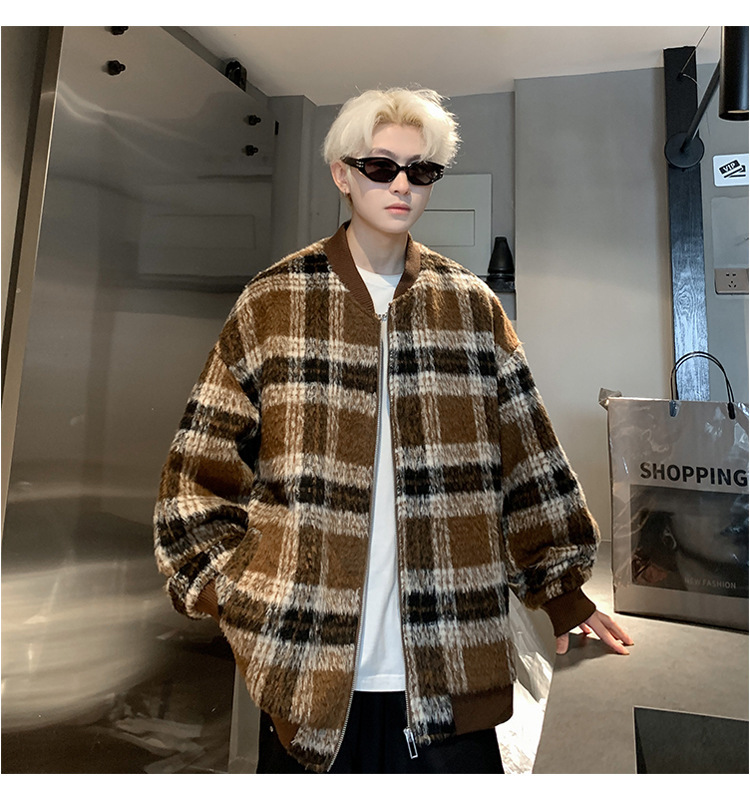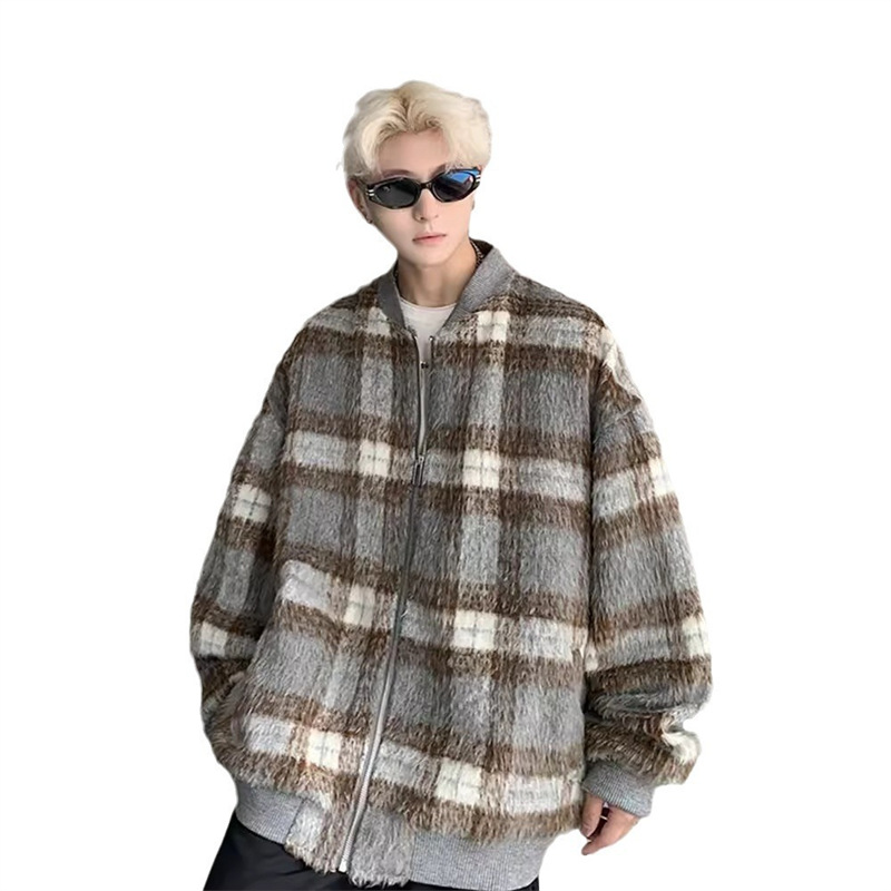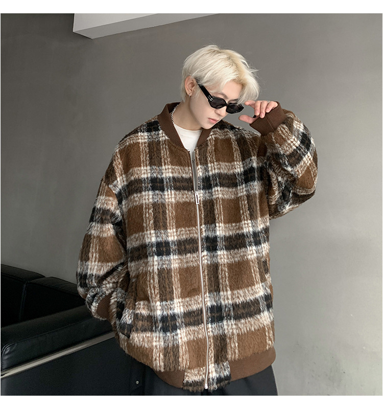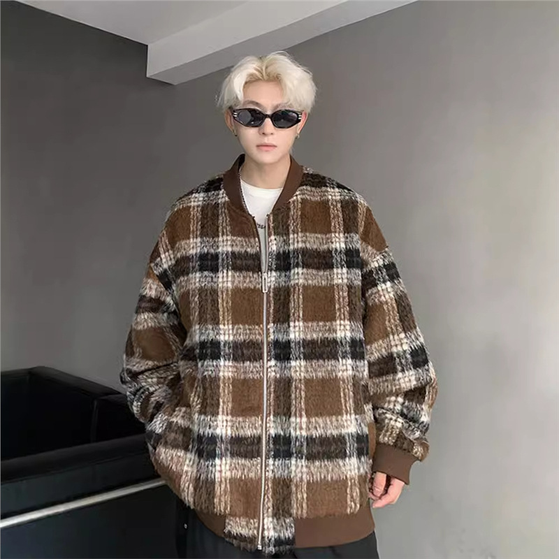 Little Xiangfeng клетчатое пальто мужской осень-зима 2024 новый американский ретро прилив бренда свободный повседневный бейсбольный костюм куртка