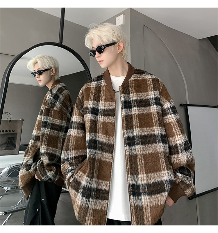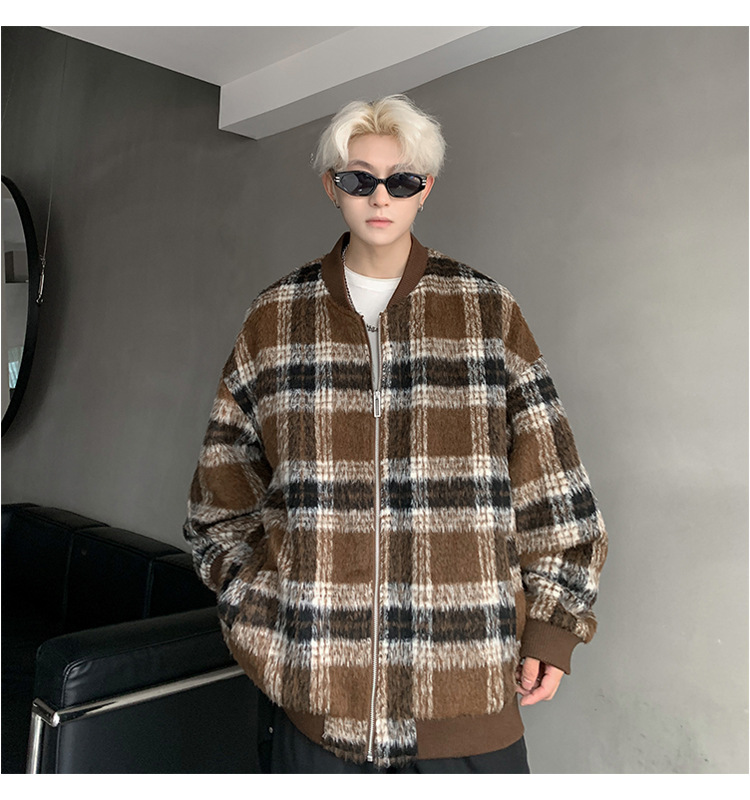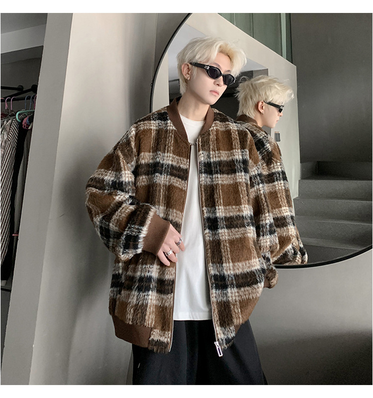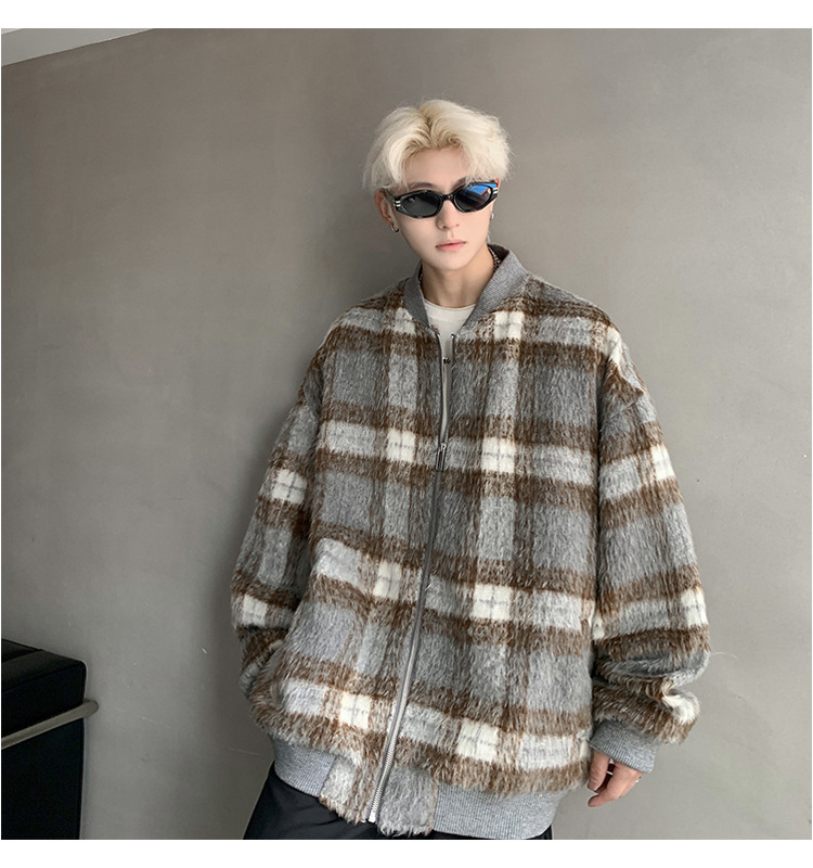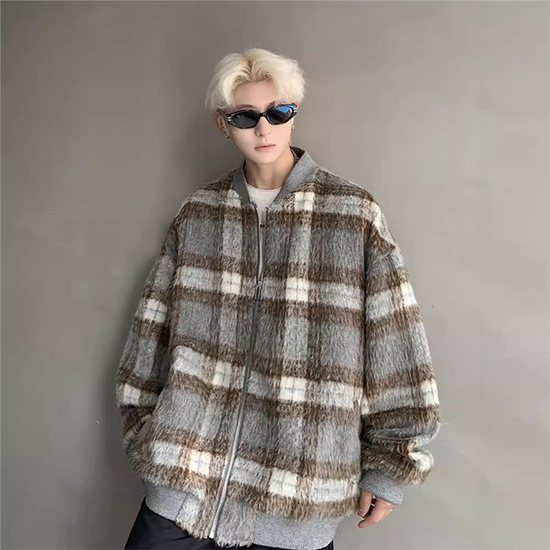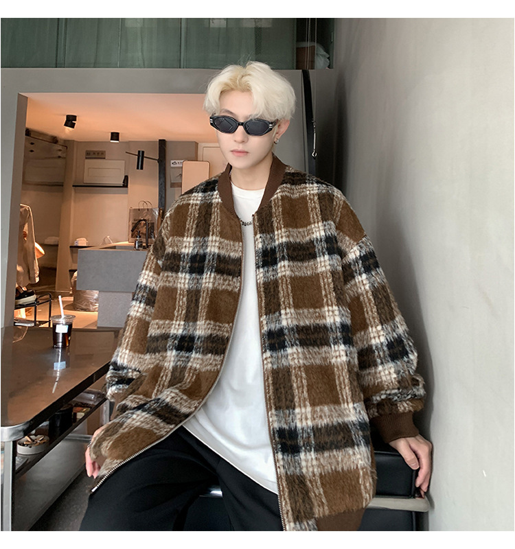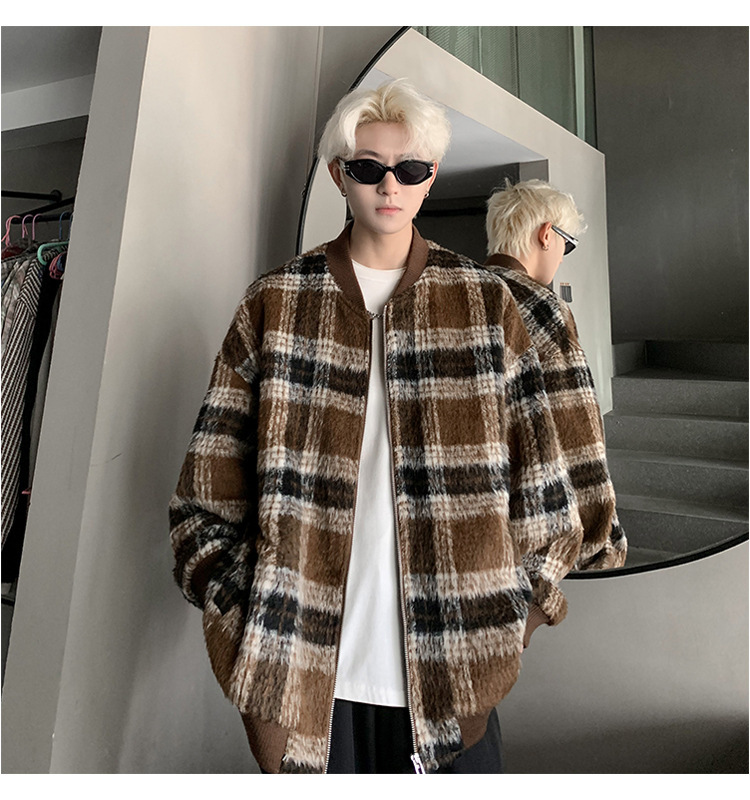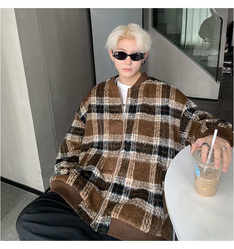 Little Xiangfeng клетчатое пальто мужской осень-зима 2024 новый американский ретро прилив бренда свободный повседневный бейсбольный костюм куртка