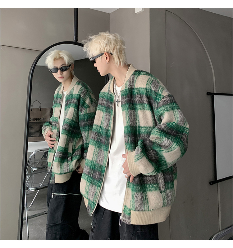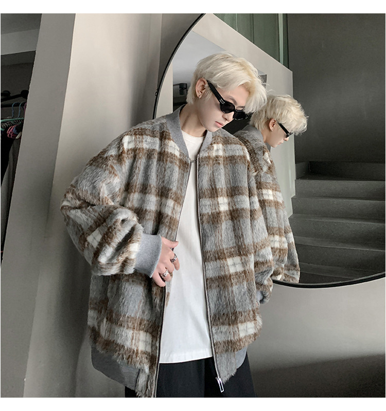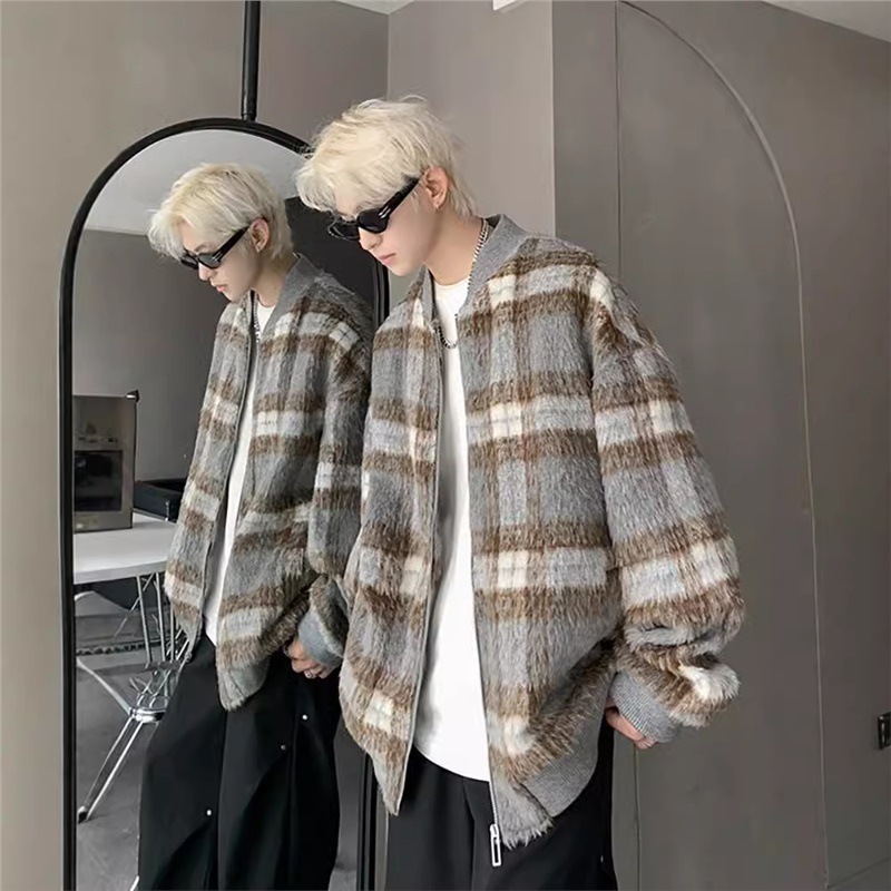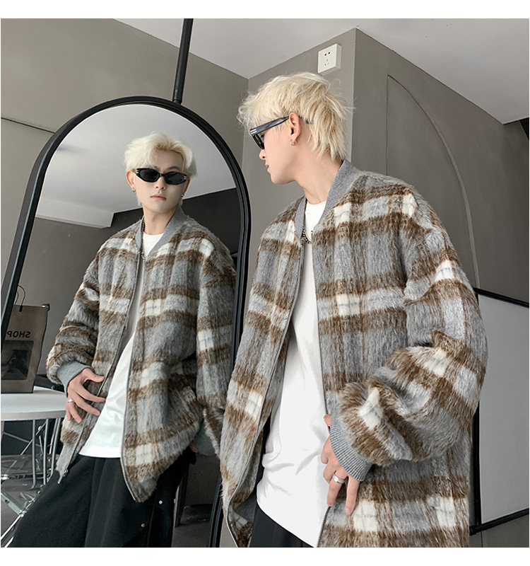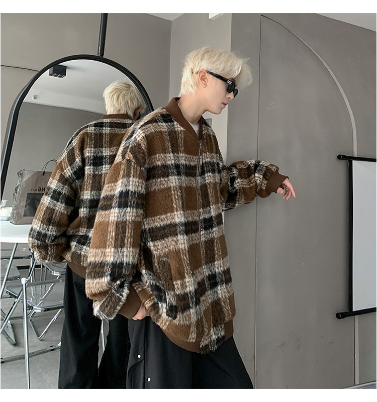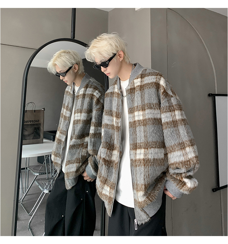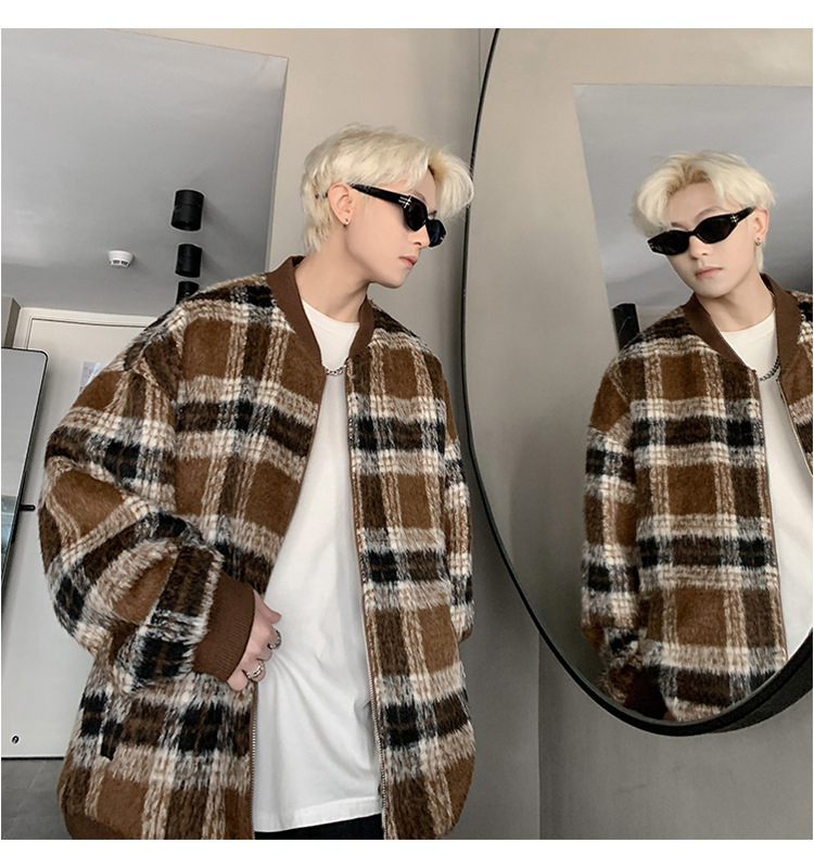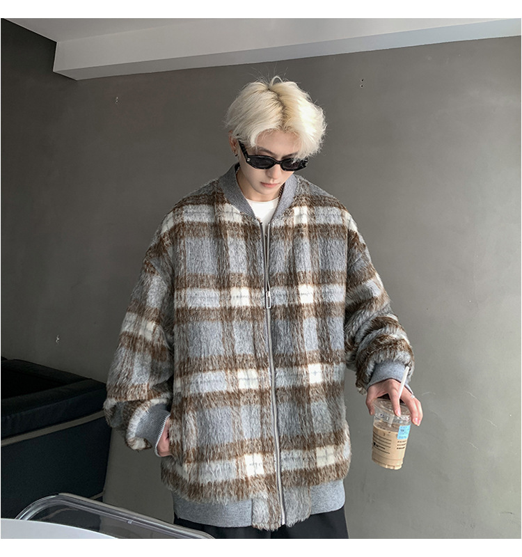 Little Xiangfeng клетчатое пальто мужской осень-зима 2024 новый американский ретро прилив бренда свободный повседневный бейсбольный костюм куртка