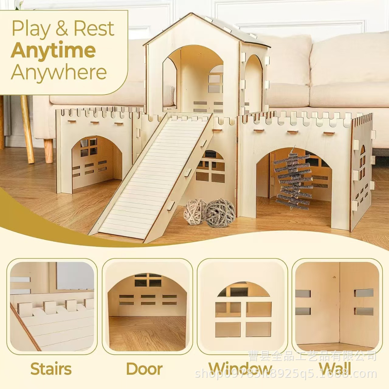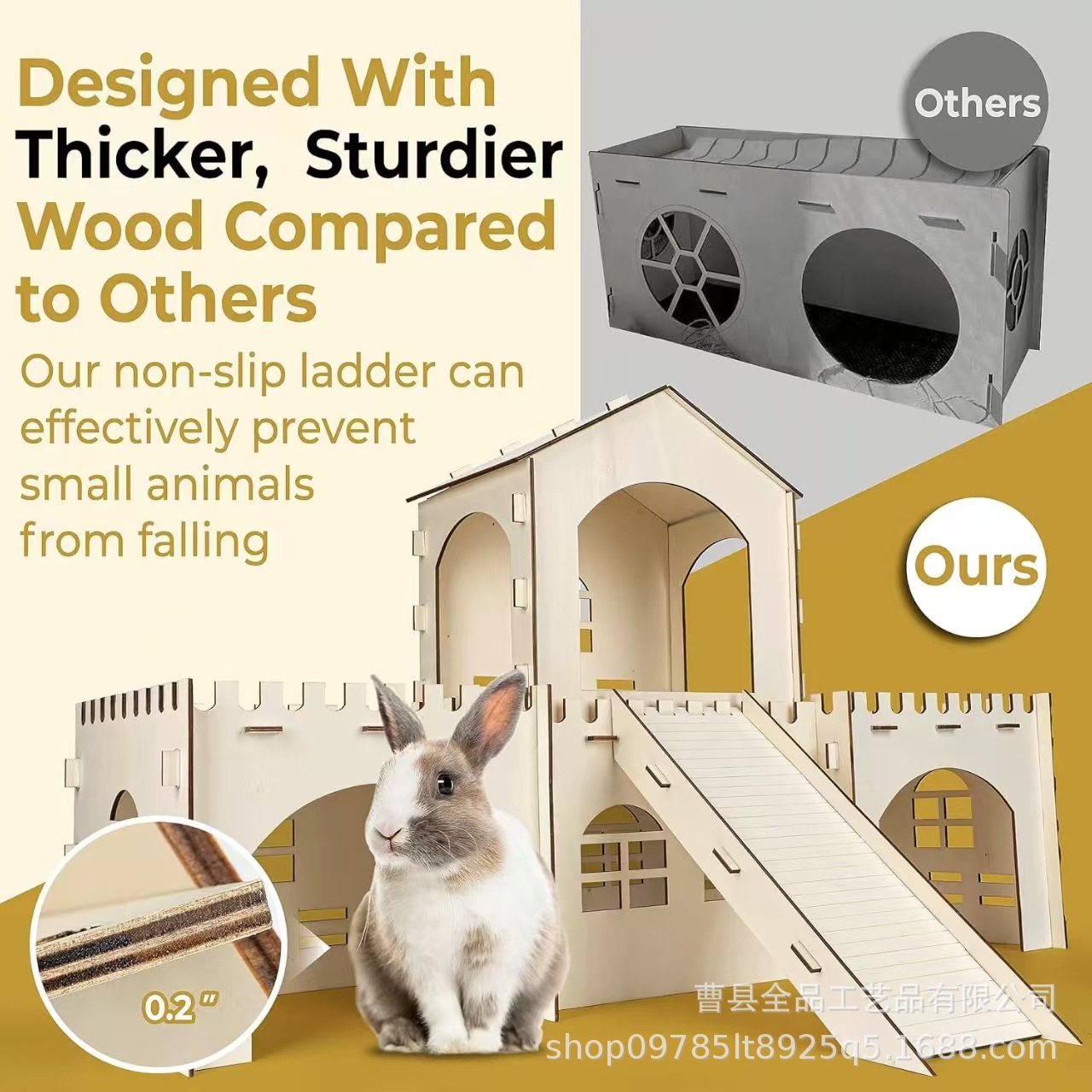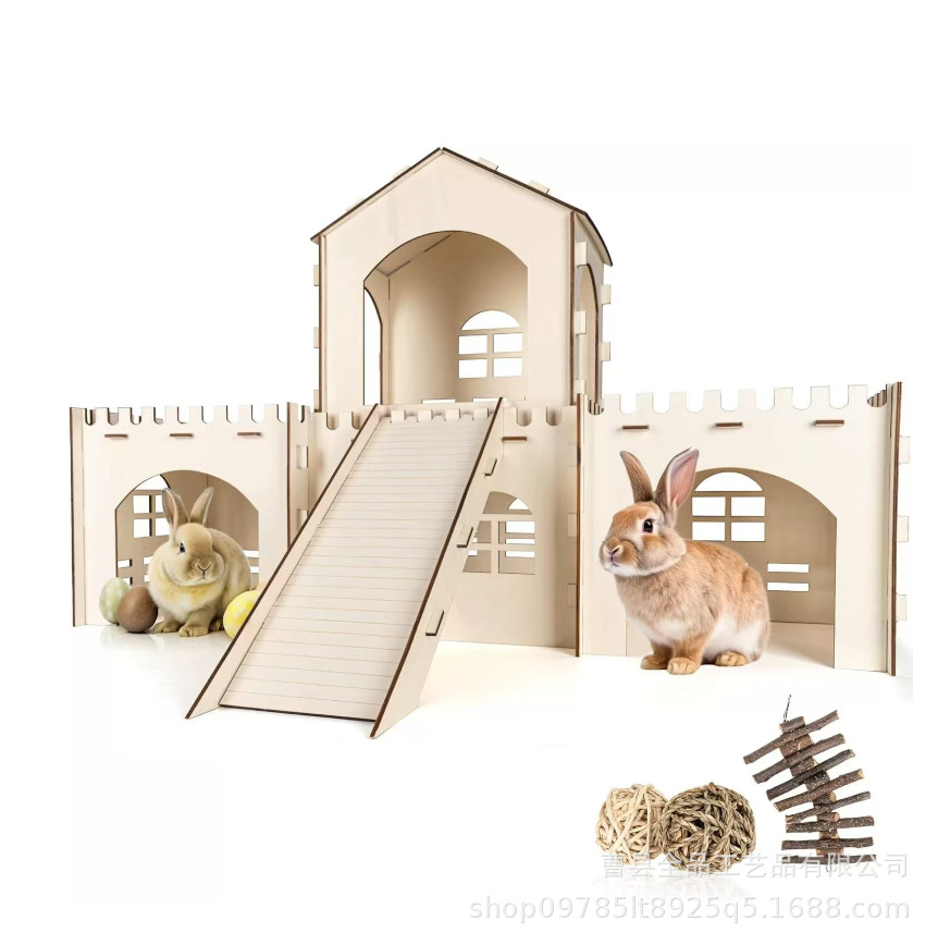 Деревянный съемный кролик с рампой Замок собранный кролик Шале Дом Морской свинки Голландский Свинья Открытый Дом Уклонения
