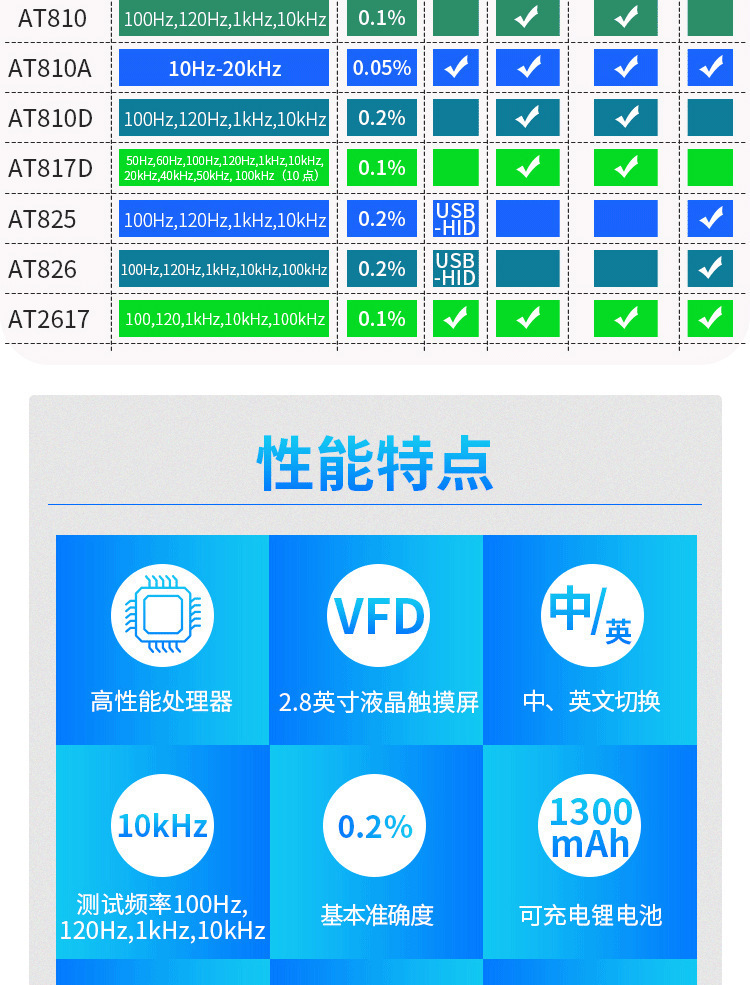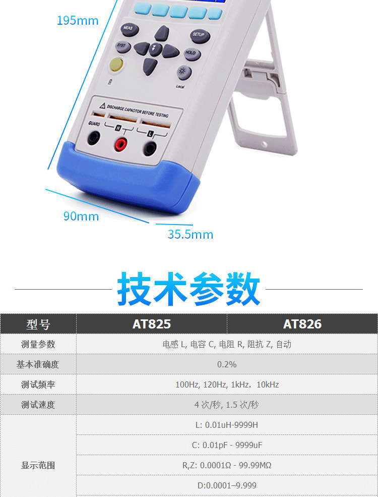 Amber AT825/826 Высокая точность ручной LCR цифровой мост резистор AT2811/AT817D