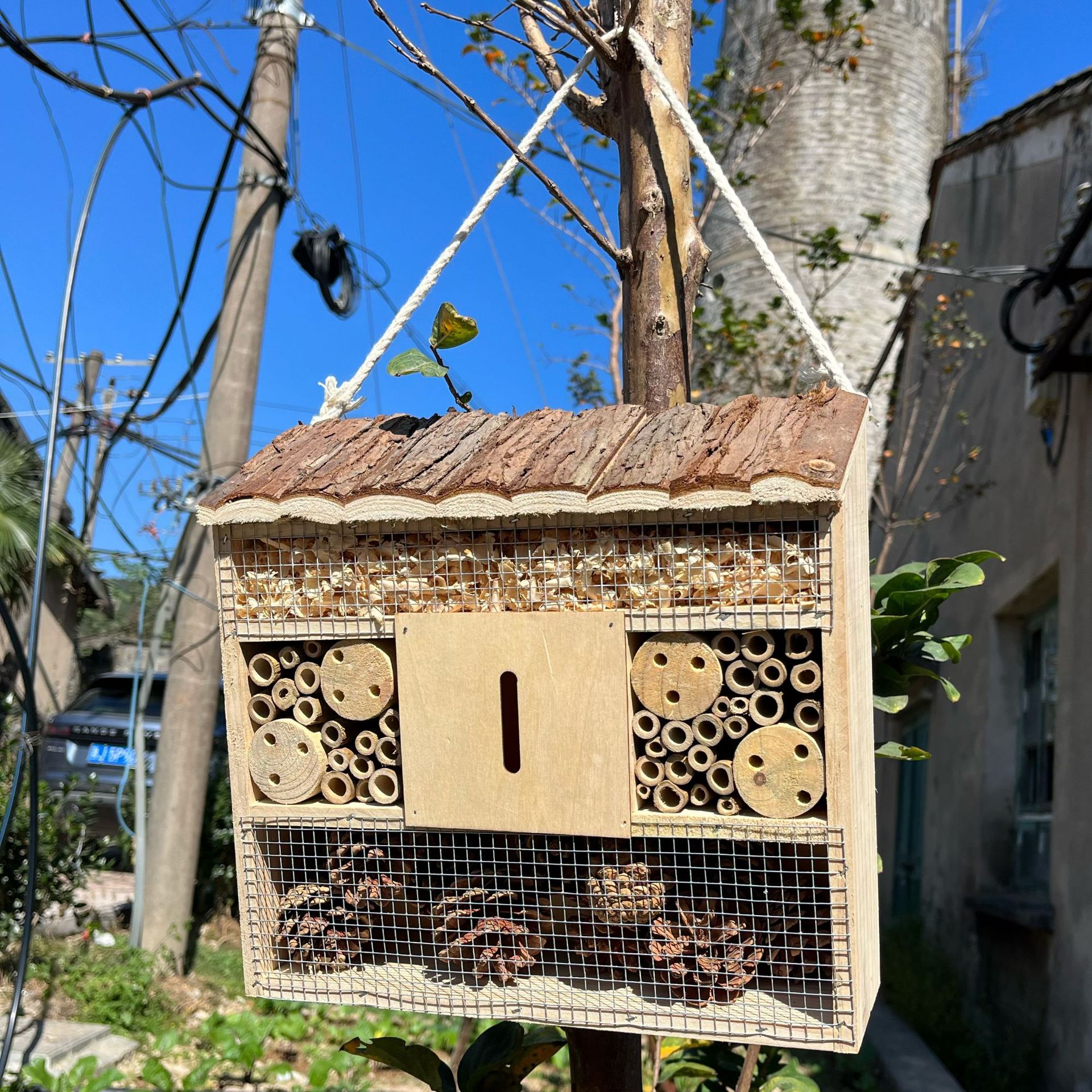 Спот сад деревянный дом насекомых с веревкой может повесить бабочку улья божья коровка полезна насекомое отель дом бабочки