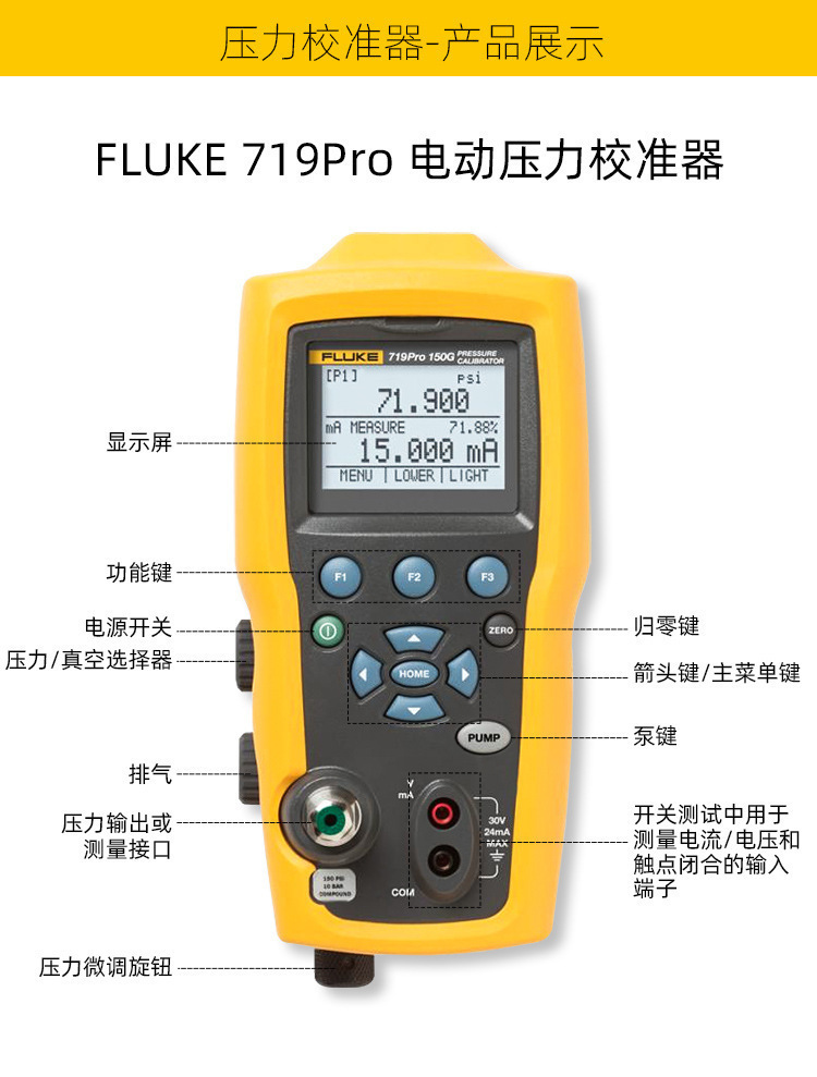FLUKE/Fluke 719PRO 30G 150G 300G Электрический калибратор давления 1 год