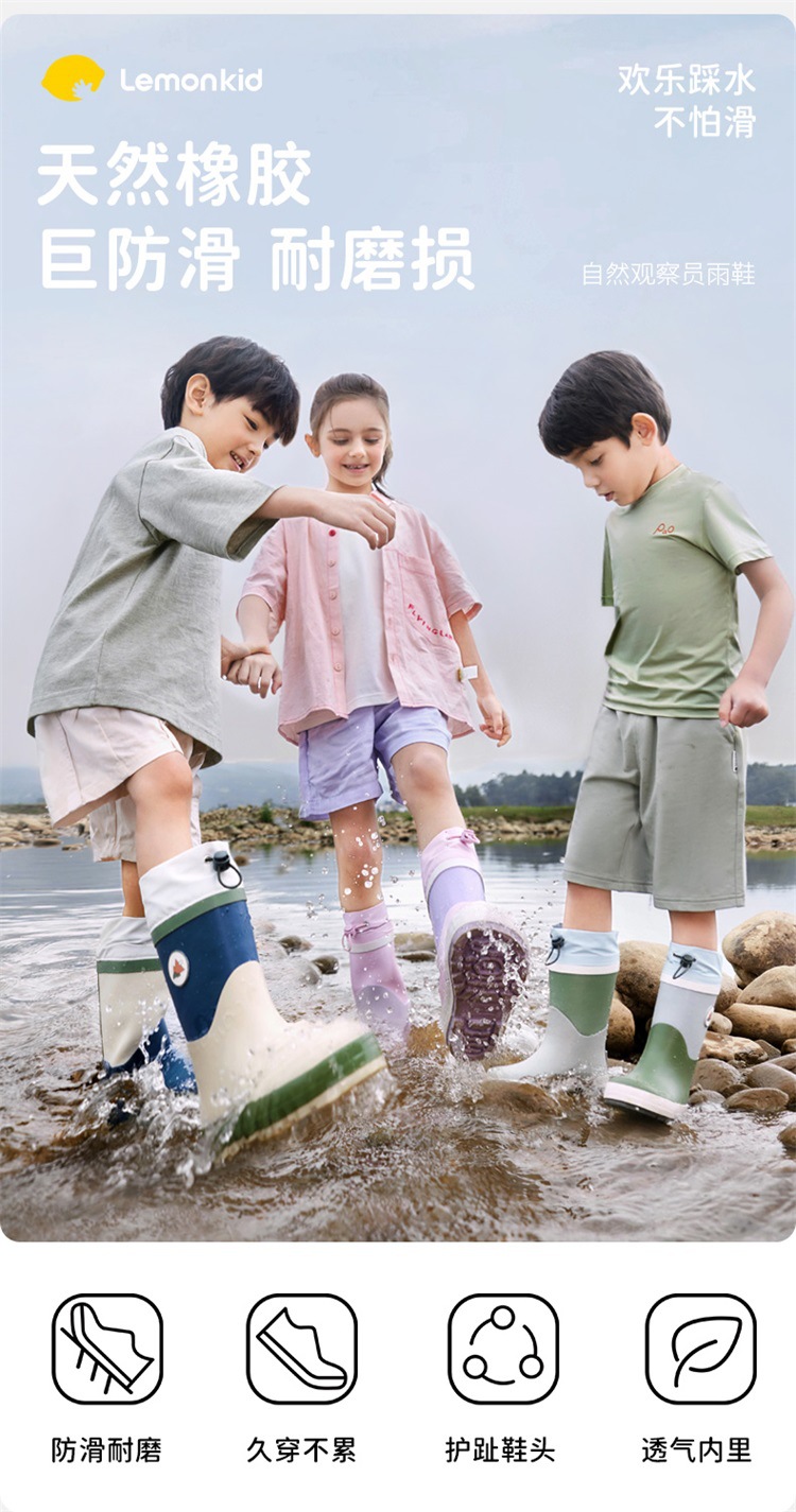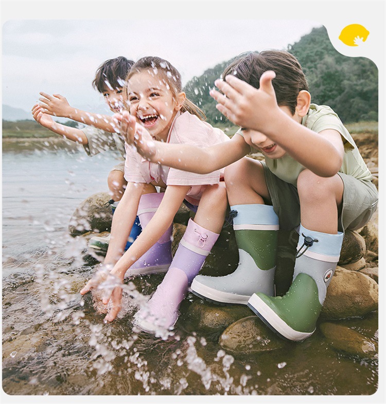 Лимонный ребенок детская резиновая резиновая обувь для мальчиков девочек нескользящая водяная обувь для мальчиков и девочек длинные высокие школьники дождевые сапоги