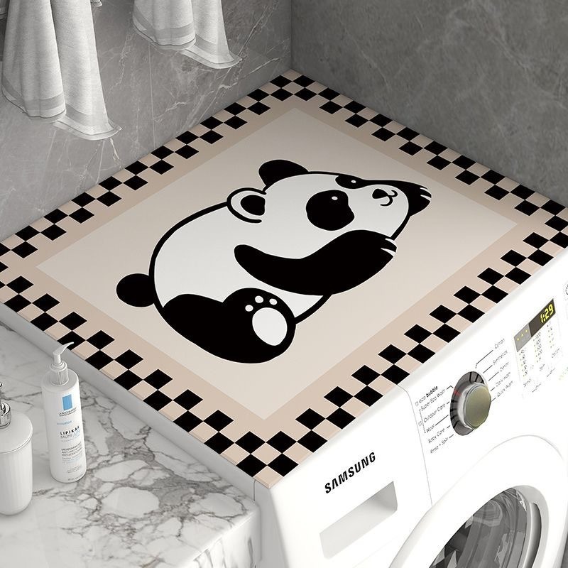 Мультяшная панда диатомовая грязь барабан стиральная машина солнцезащитный крем черно-белый решетчатый водопоглощающий быстрый сухой пылезащитный коврик для оптовой продажи