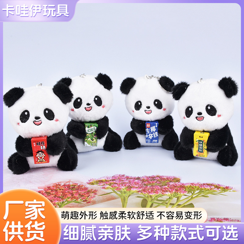 Мультфильм плюшевая игрушка милая гигантская панда держит напиток маленький кулон