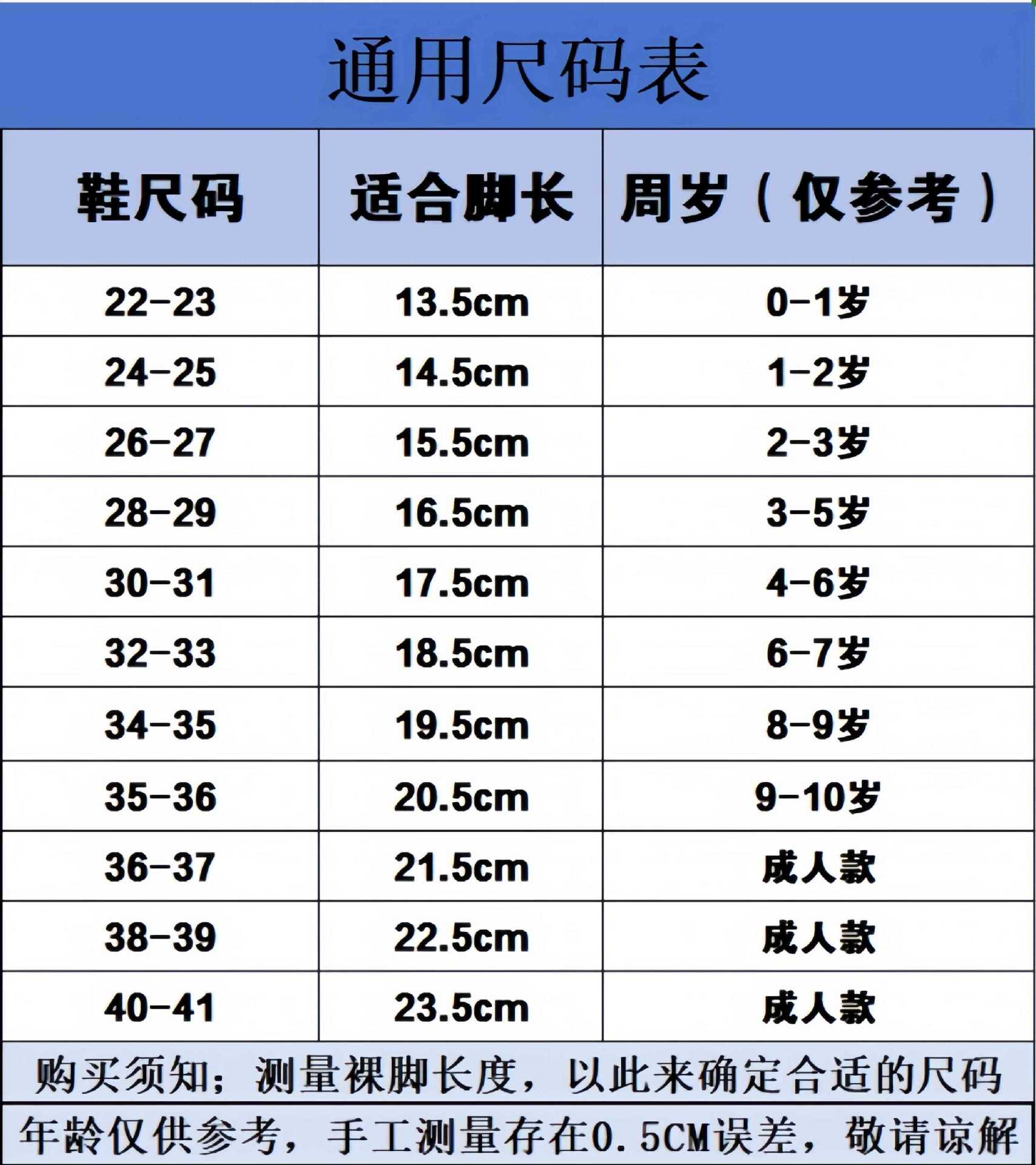 26-27 внутренняя длина 16 см (около 2-3 лет); 28-29 внутренняя длина 17 см (около 3-5 лет); 30-31 внутренняя длина 18 см (около 5-6 лет); 32-33 внутренняя длина 19 см (около 6-7 лет); 34-35 внутренняя длина 20 см (около 8-9 лет); Внутренняя длина 36-37 21 см (около 9-11 лет)