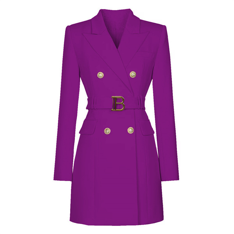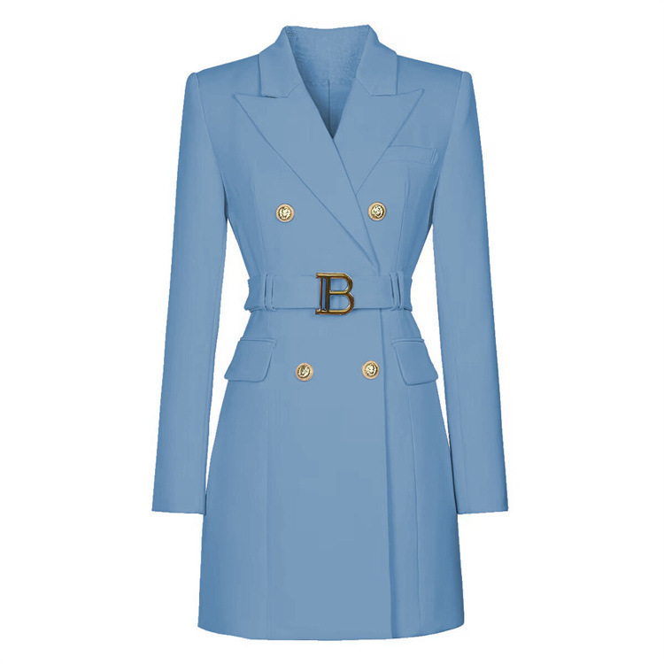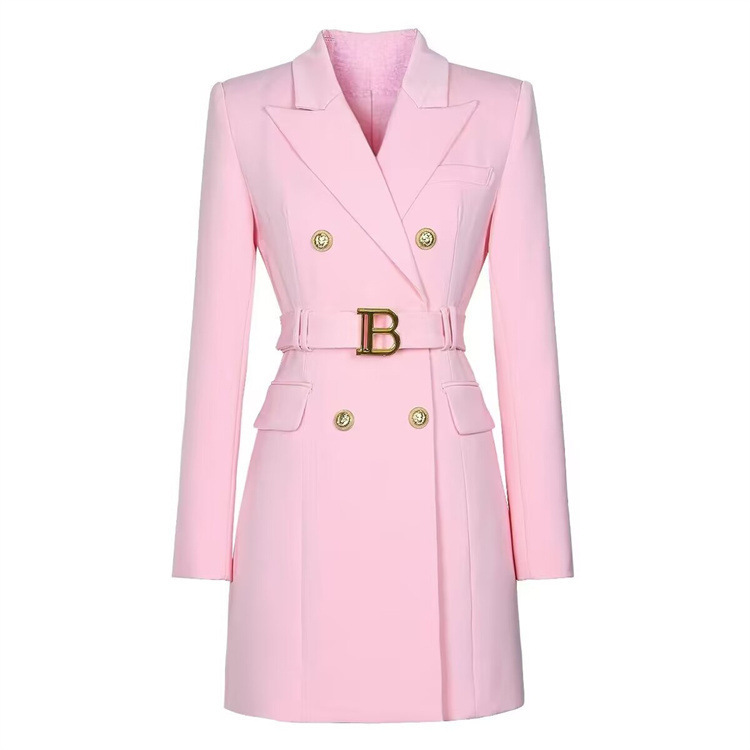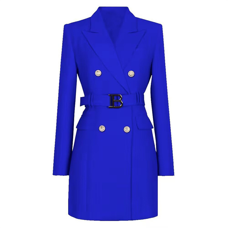 2025 весна и осень новый модный высокий сплошной пояс с длинными рукавами тонкое темпераментное платье для пригородных костюмов для женщин в месте