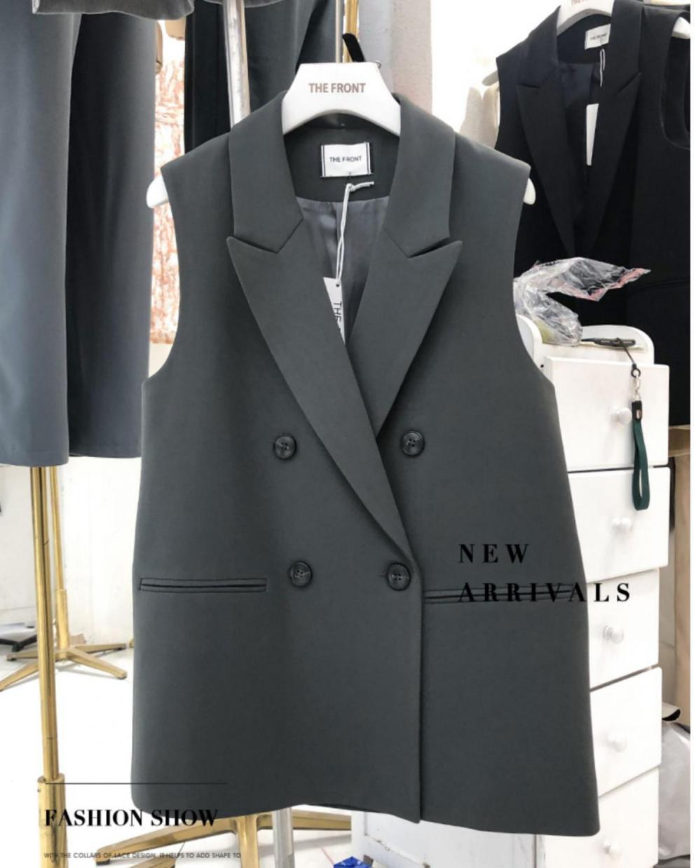 Костюм Черная жилет Женская куртка Весна и Осень Повседневный Новый темперамент без рукавов