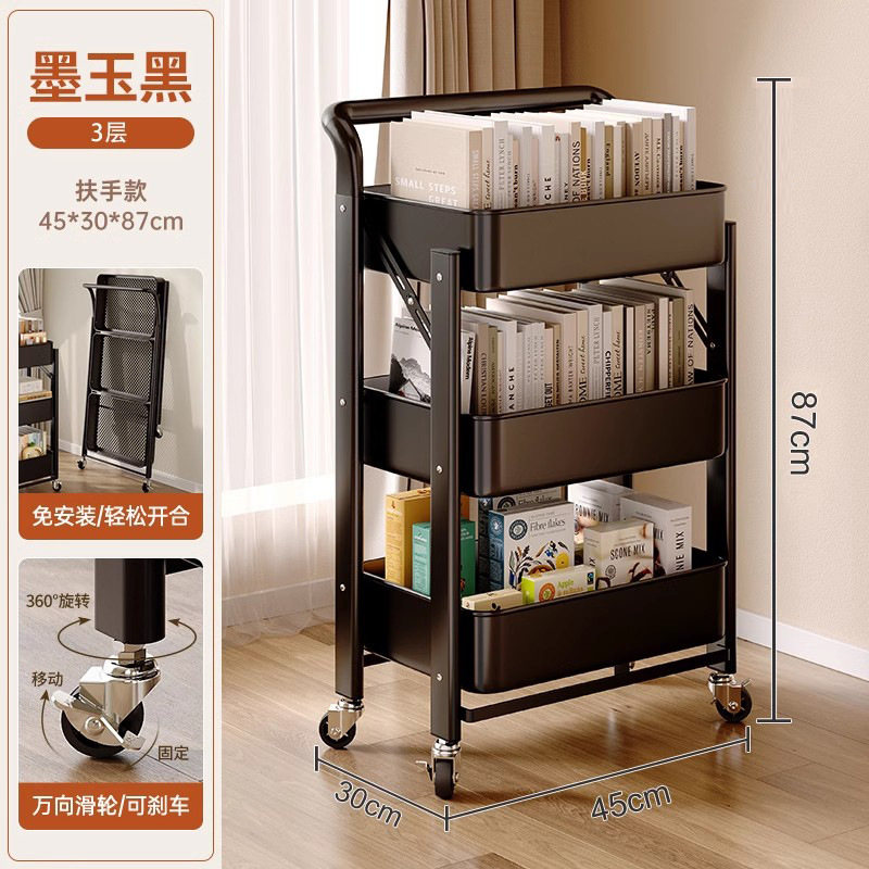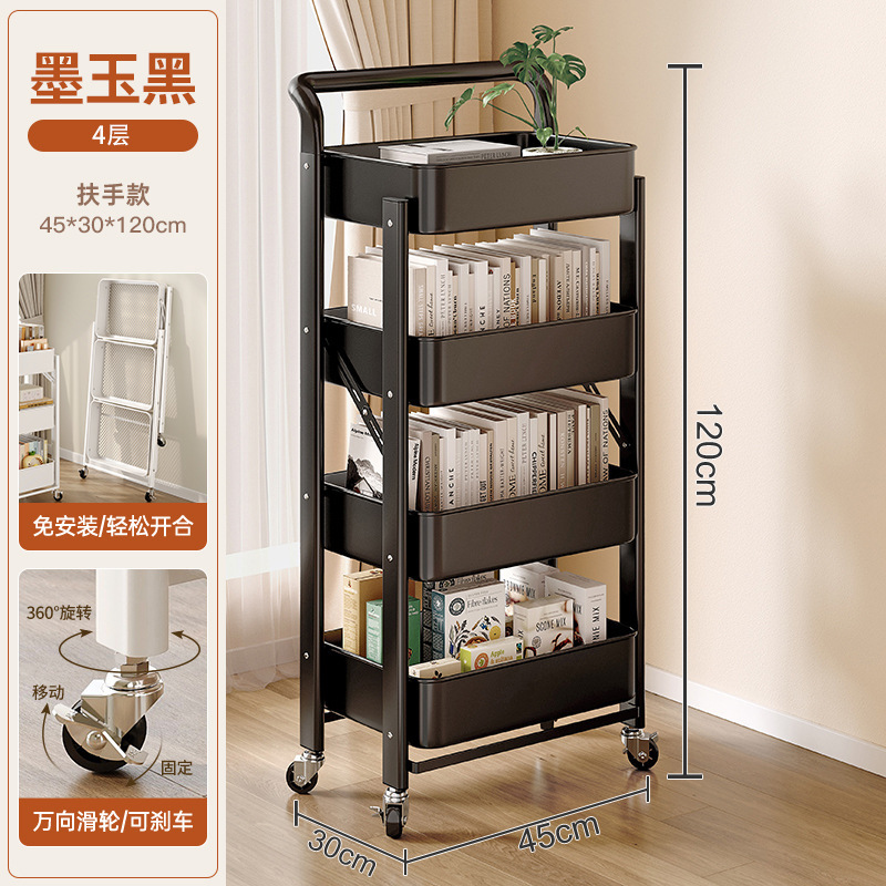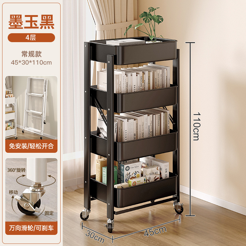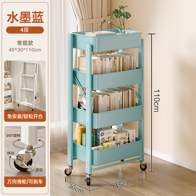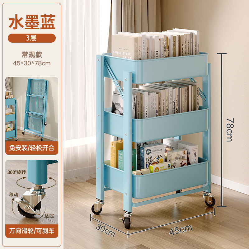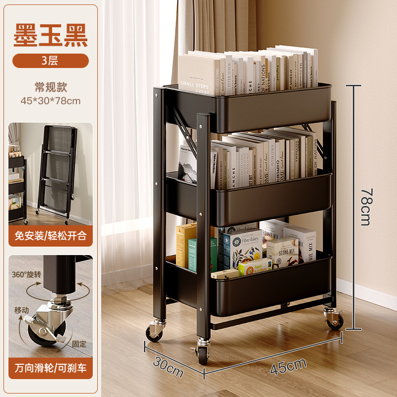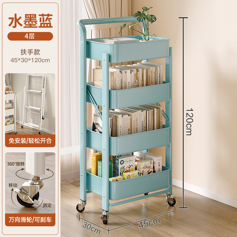 Среднедревняя тележка для гостиной для закусок полки на полу Мобильная книжная полка многофункциональная гостиная дома Многослойный шкаф для хранения