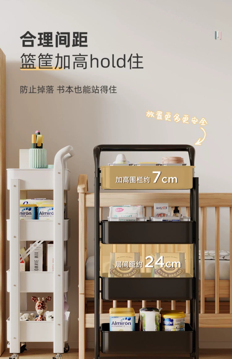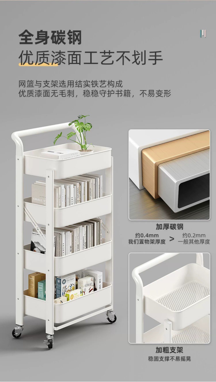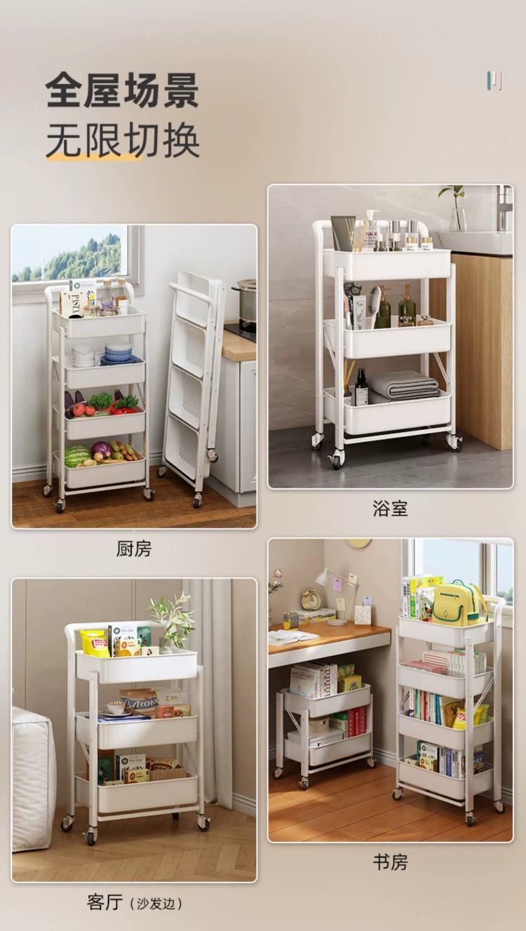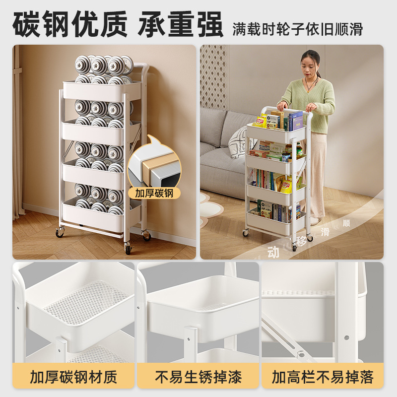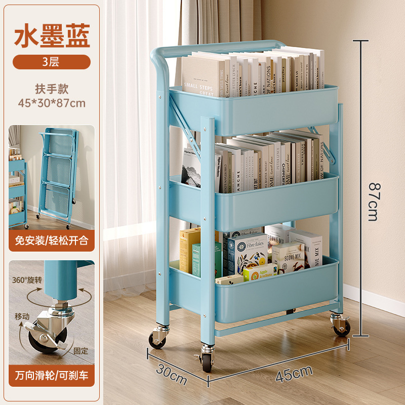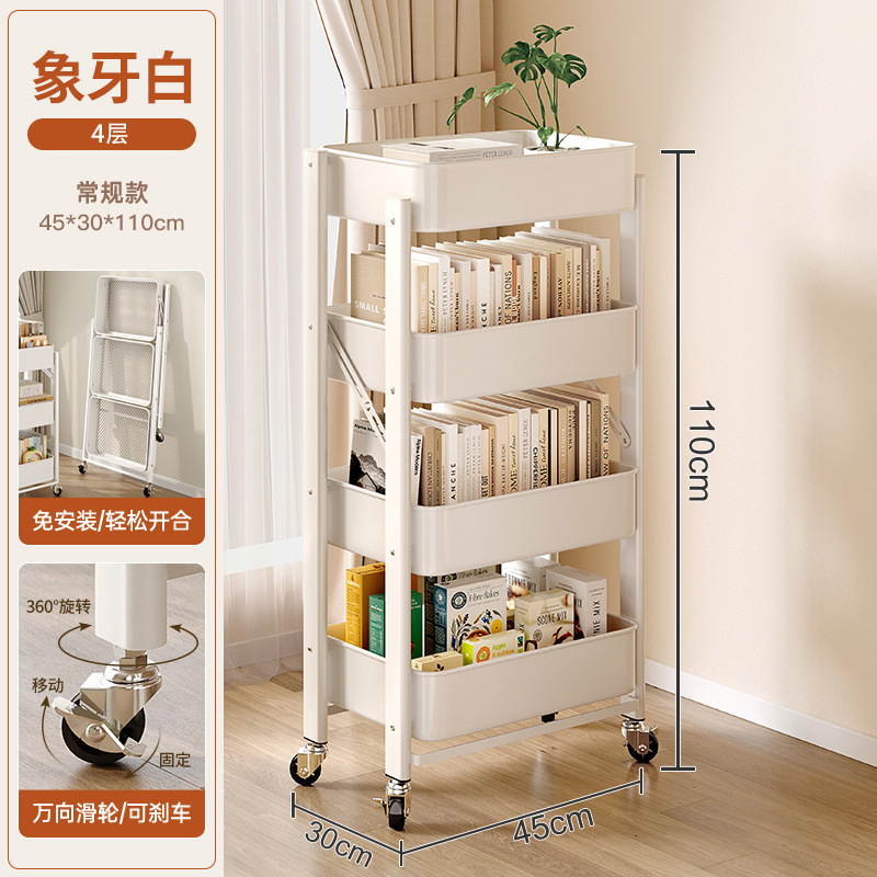 Среднедревняя тележка для гостиной для закусок полки на полу Мобильная книжная полка многофункциональная гостиная дома Многослойный шкаф для хранения