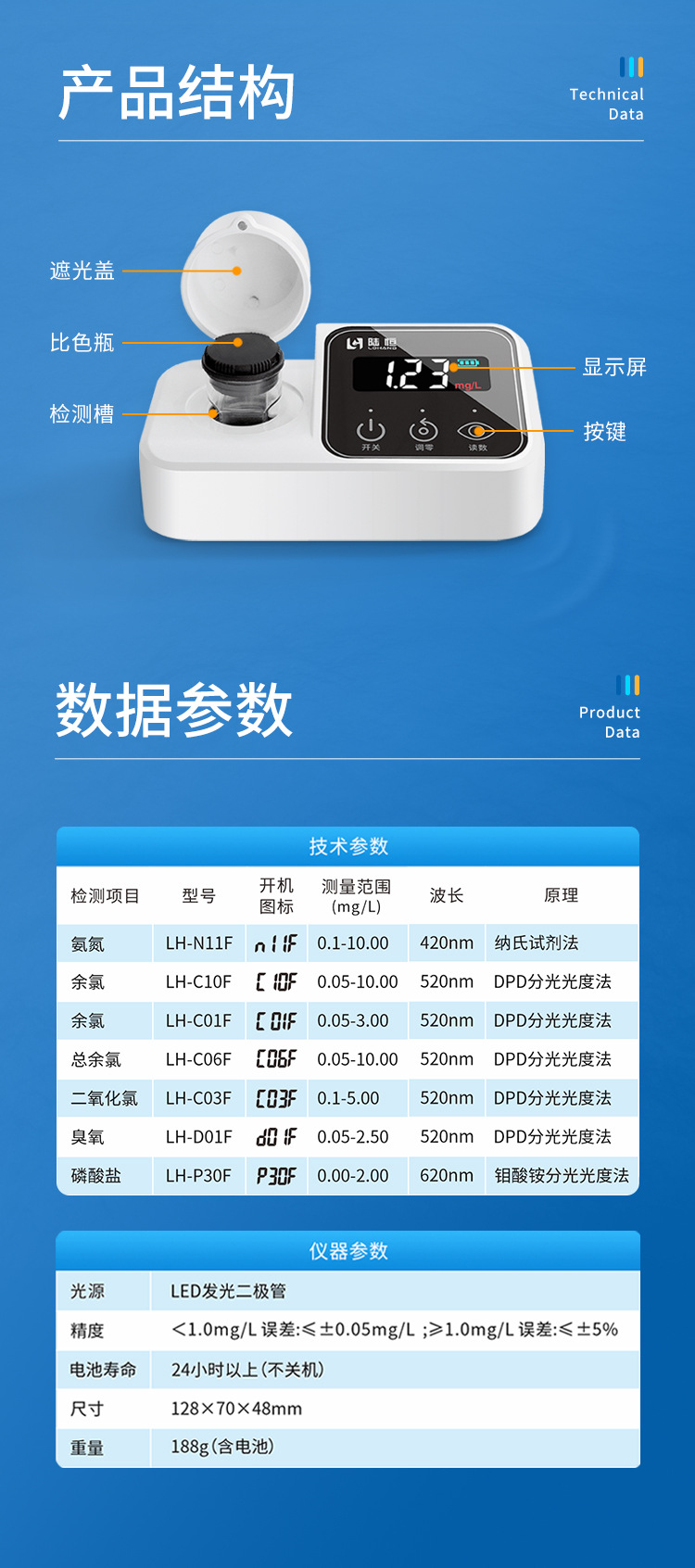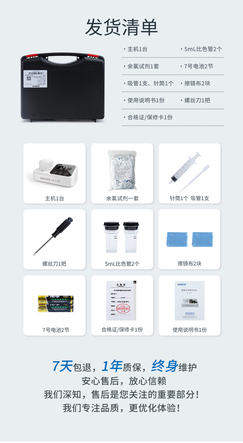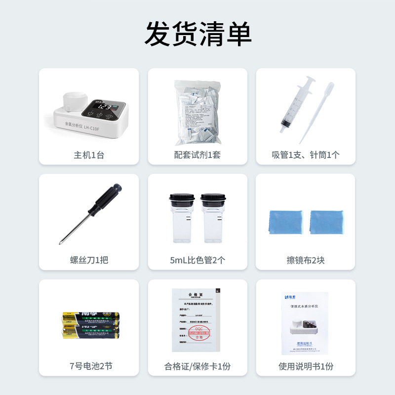 Детектор остаточного хлора 0-10 мг/л, подходит для сточных вод LH-C10F; Детектор остаточного хлора 0-3 мг/л водопроводной воды LH-01F; Детектор общего хлора; Детектор аммиачного азота; Детектор озона; Детектор диоксида хлора; Детектор фосфатов; Реагент аммиачный азот 50 раз/комплект, эксклюзивно для N11F; Реагент для обнаружения остаточного хлора, 100 раз/комплект