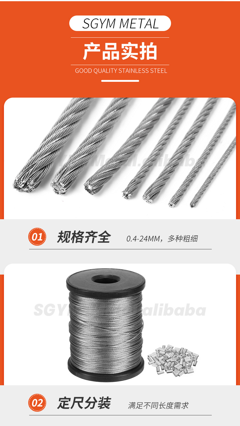 304/316 нержавеющая сталь проволочный канат для ограждения канатов