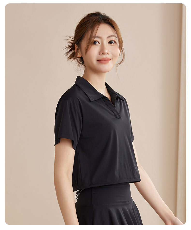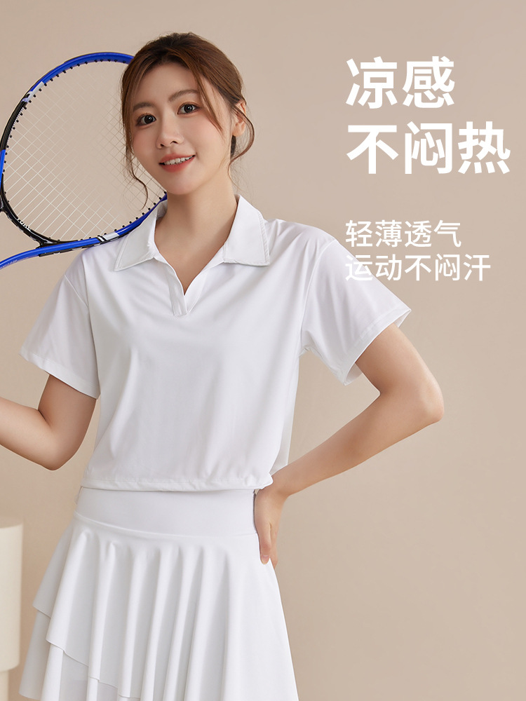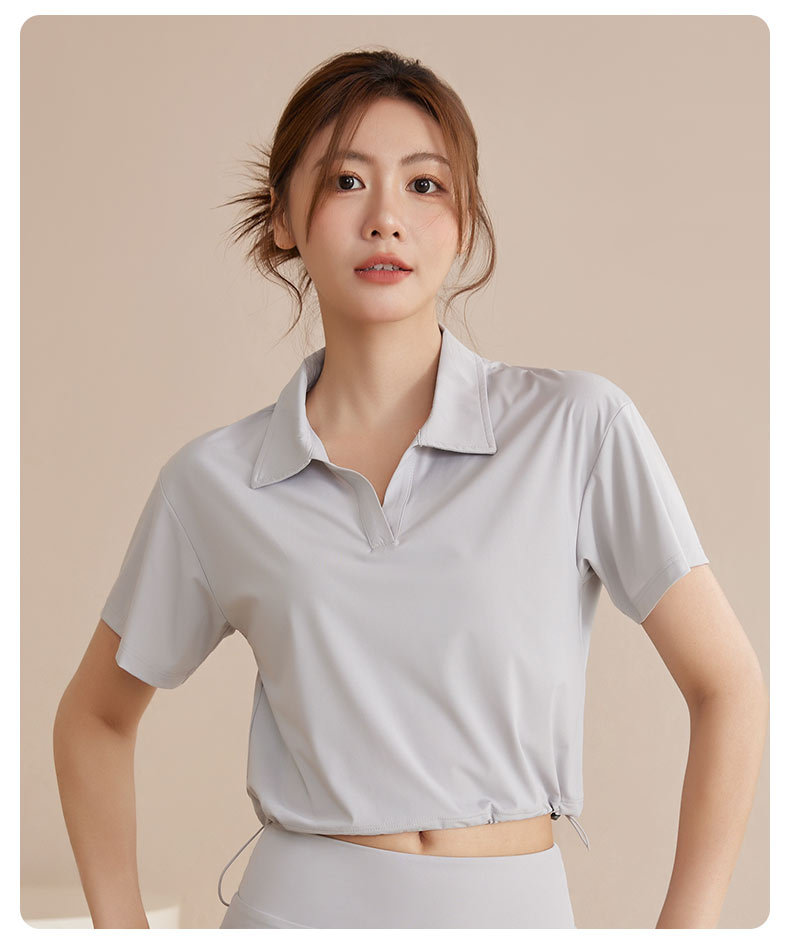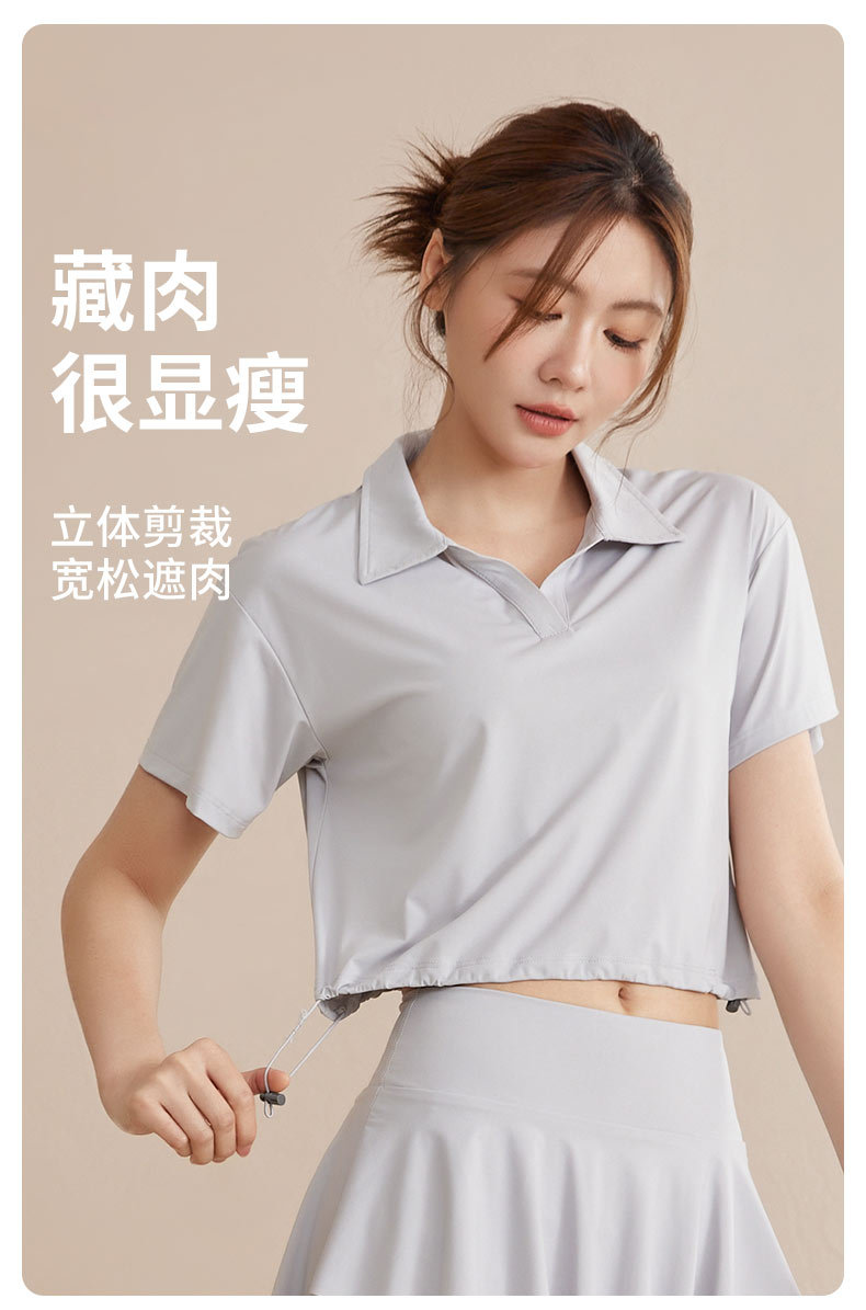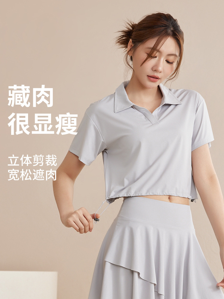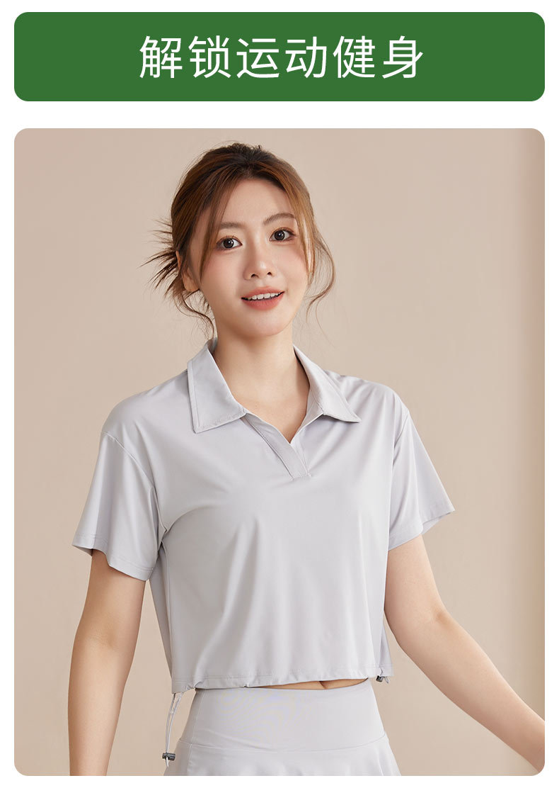 Большой размер женская повседневная спортивная ледяная женщина летом новая мода поло воротник тонкая йога футболка с короткими рукавами