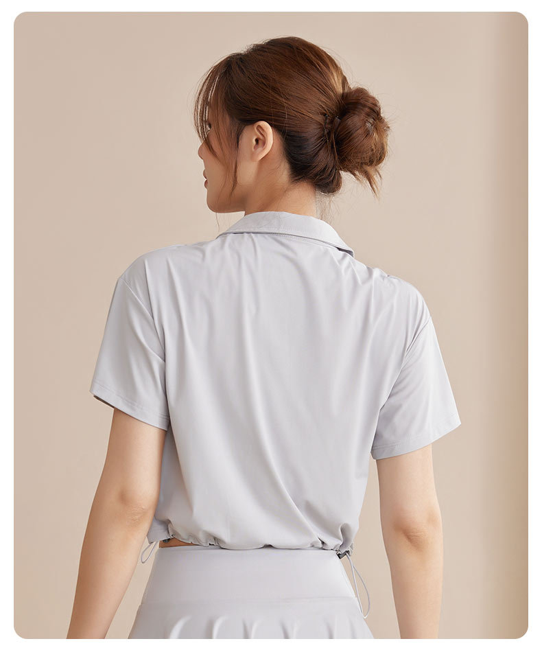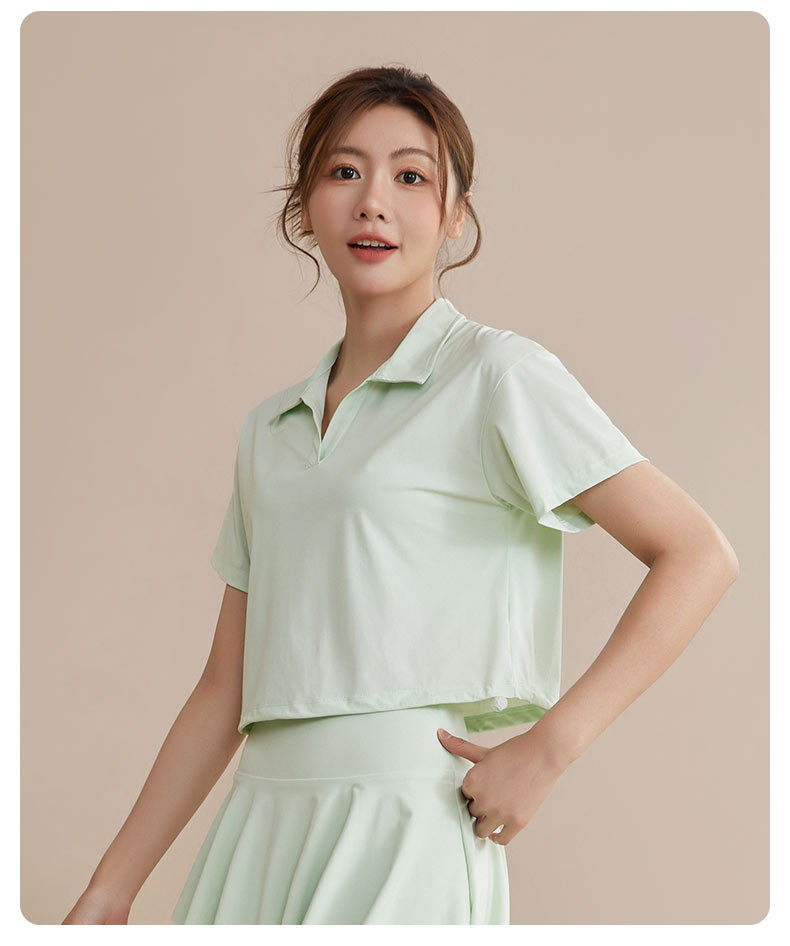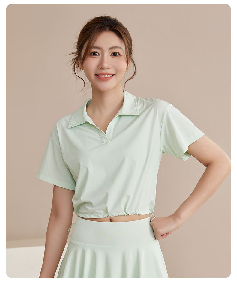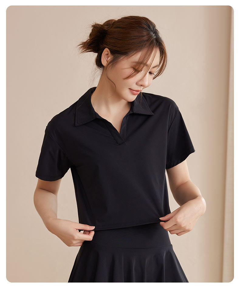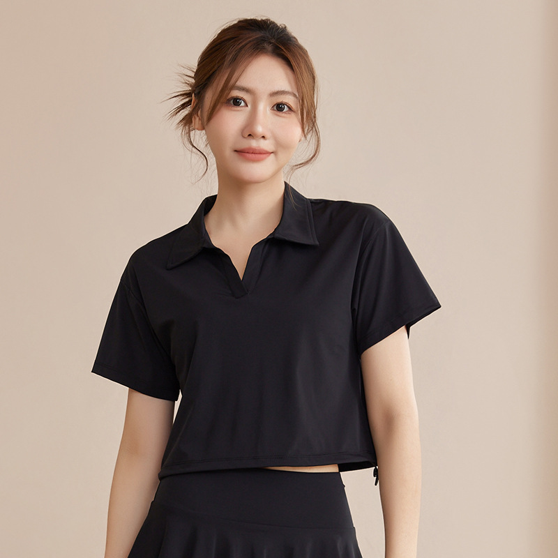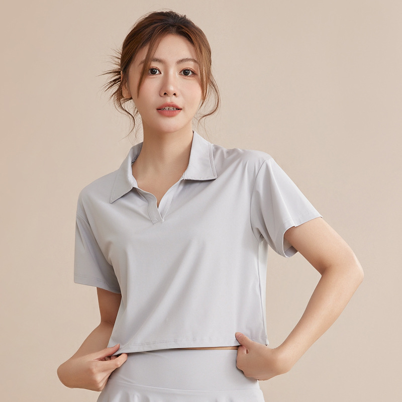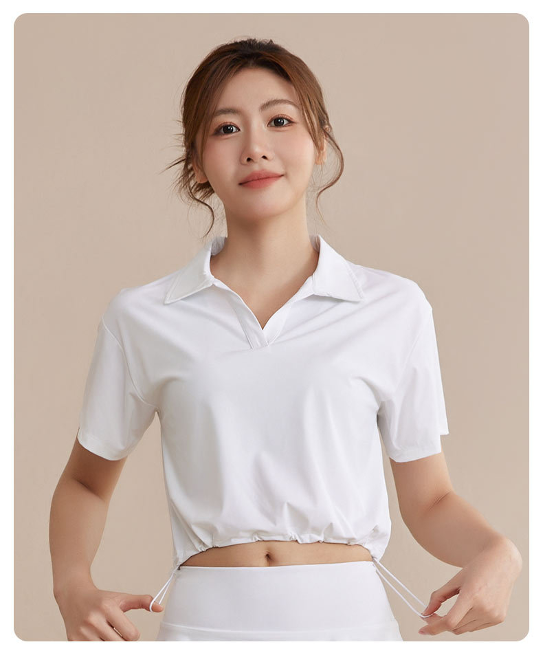 Большой размер женская повседневная спортивная ледяная женщина летом новая мода поло воротник тонкая йога футболка с короткими рукавами