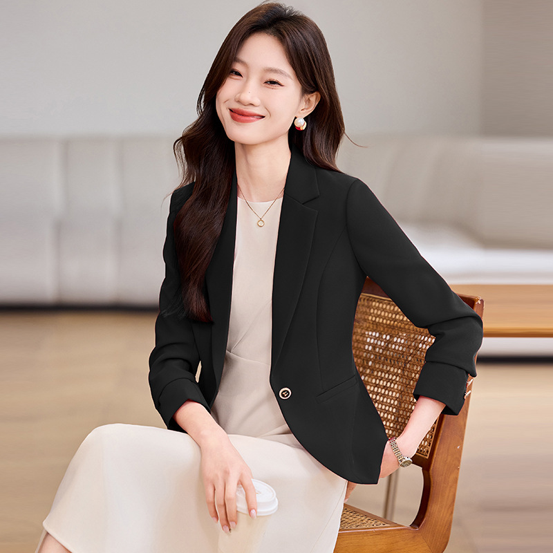 2025 новый весенний и осенний премиум чувство черный пиджак женский корейский модный маленький повседневный маленький костюм топ