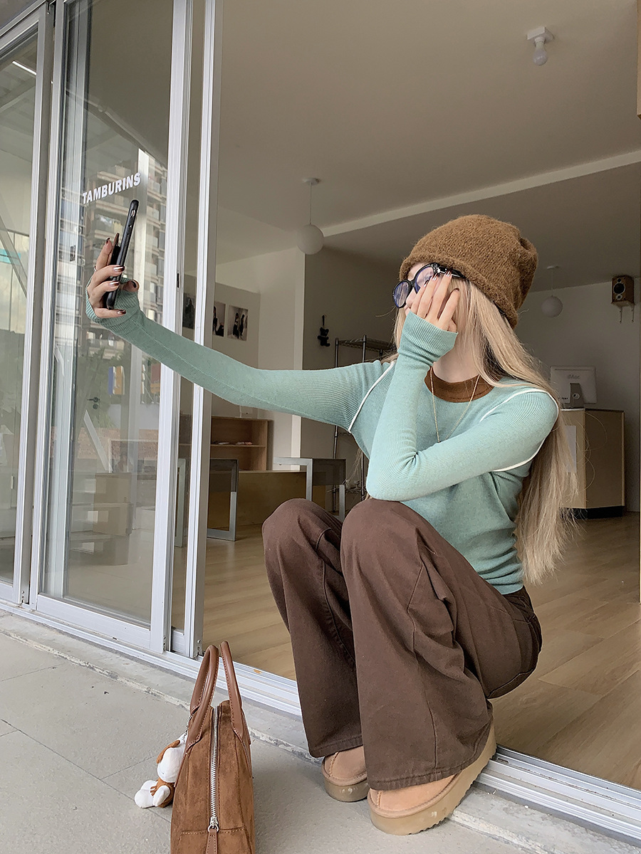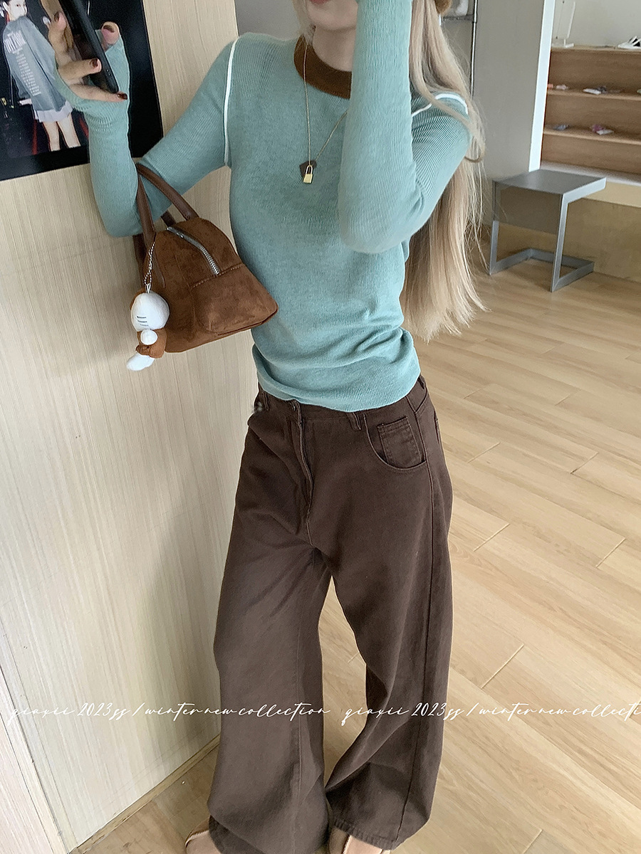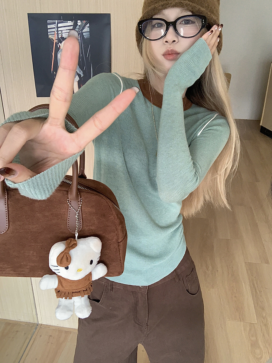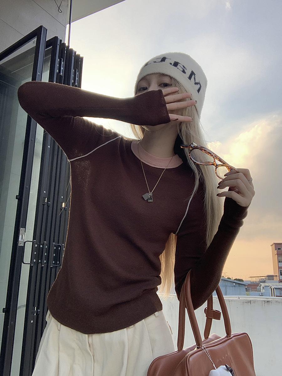 Ретро-контрастный цвет сшивания с вязаным свитером