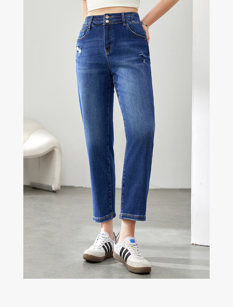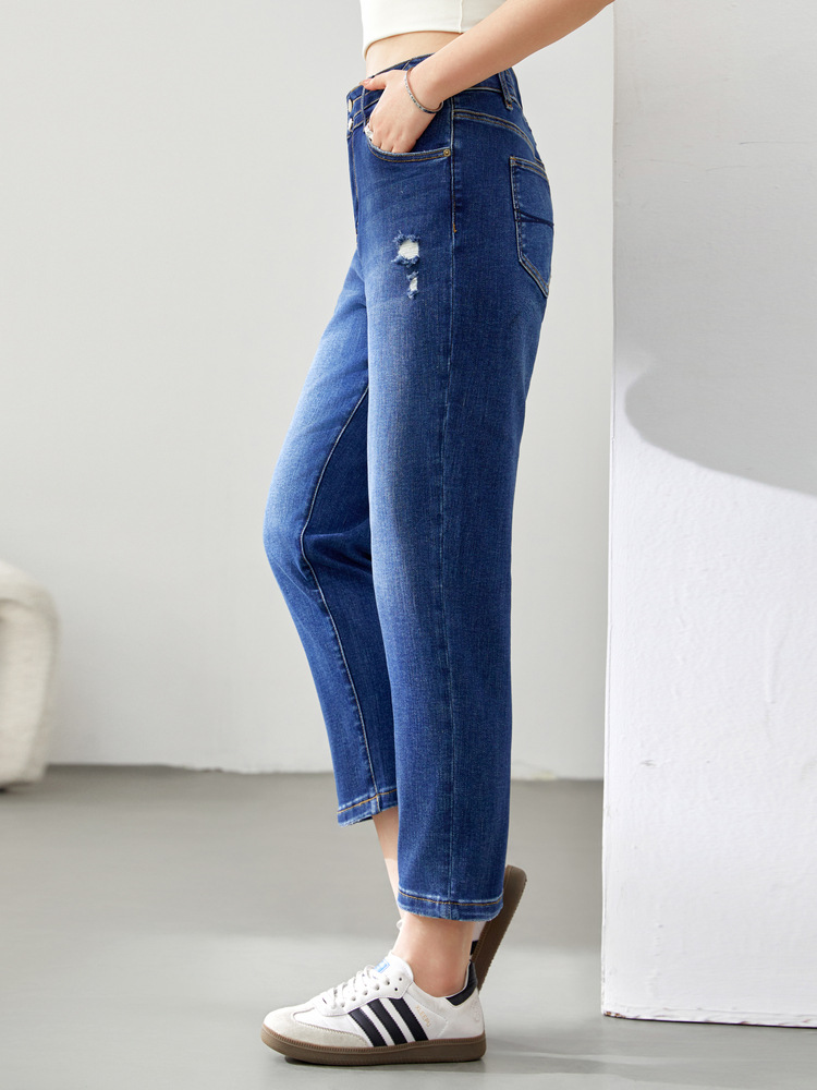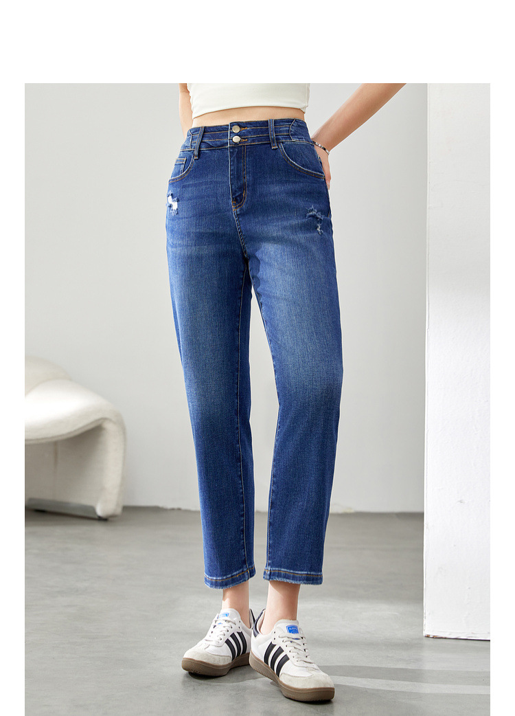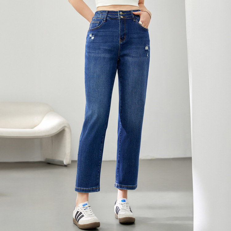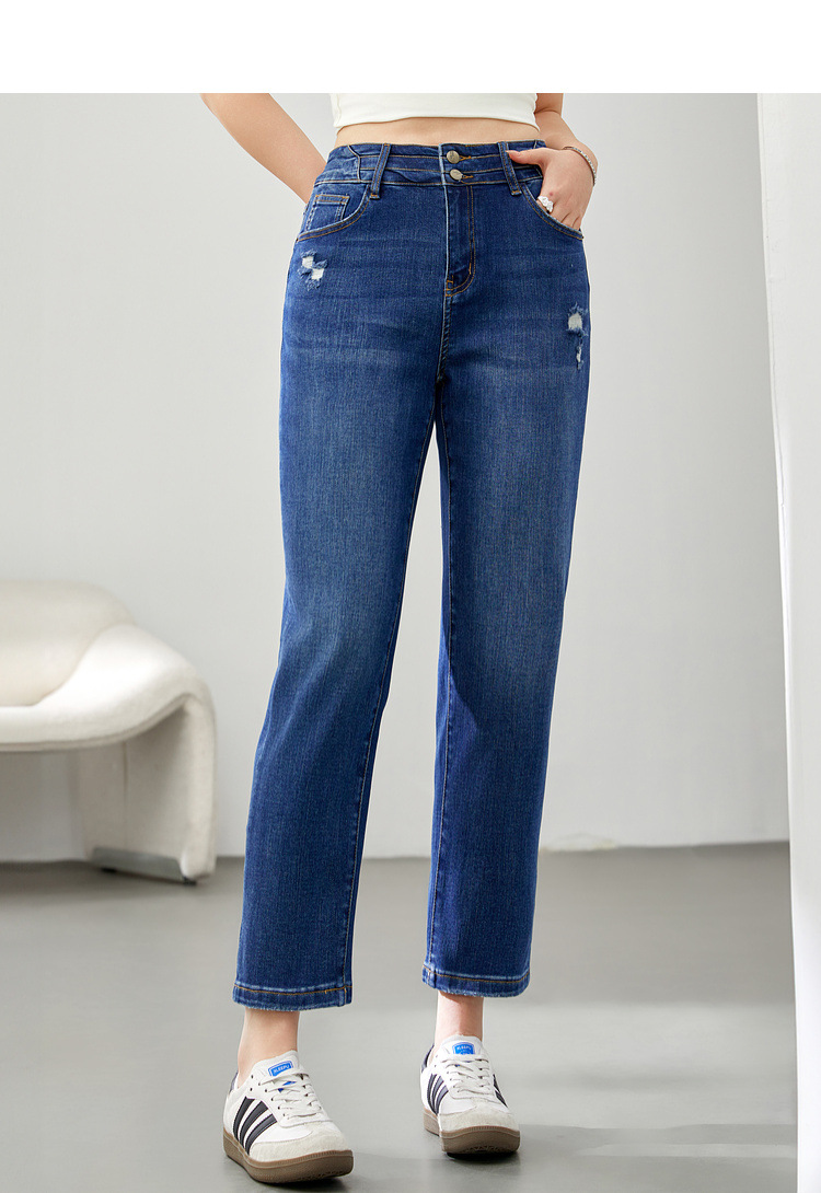 [Дизайн дыры темперамента дикие тонкие джинсы] Funny Show большой размер женский толстый mm2025 весенний новый