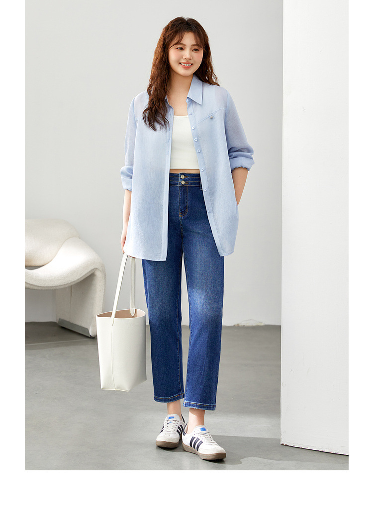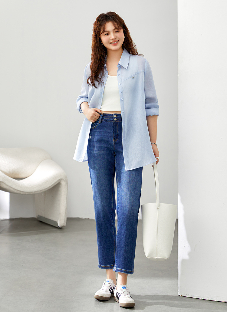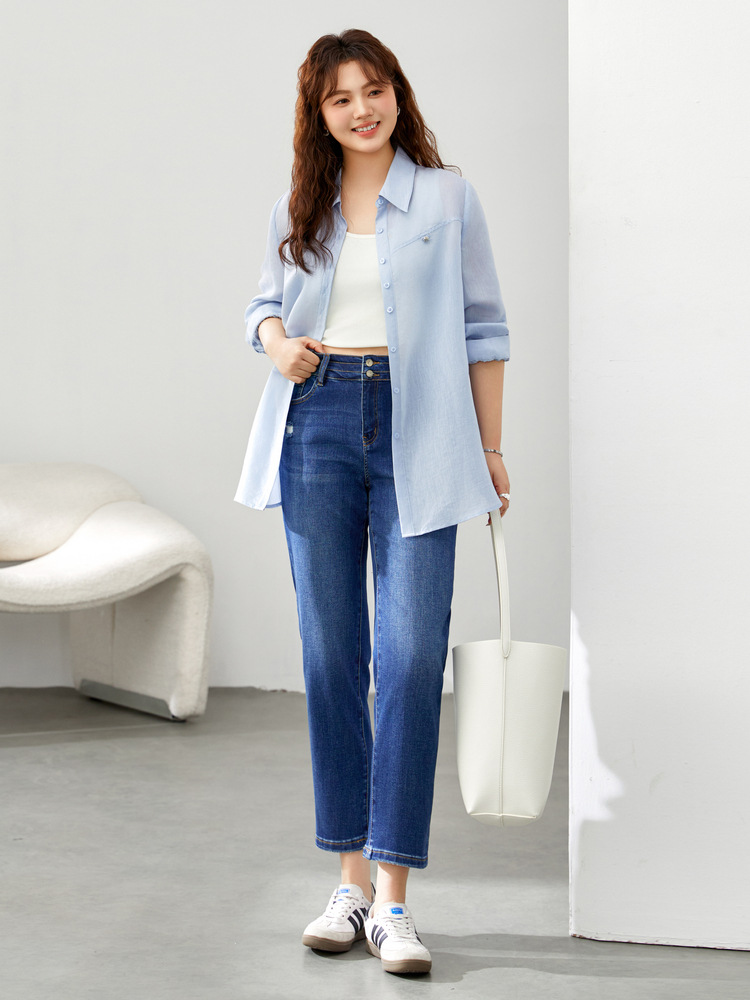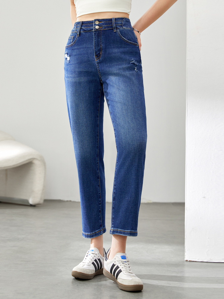 [Дизайн дыры темперамента дикие тонкие джинсы] Funny Show большой размер женский толстый mm2025 весенний новый