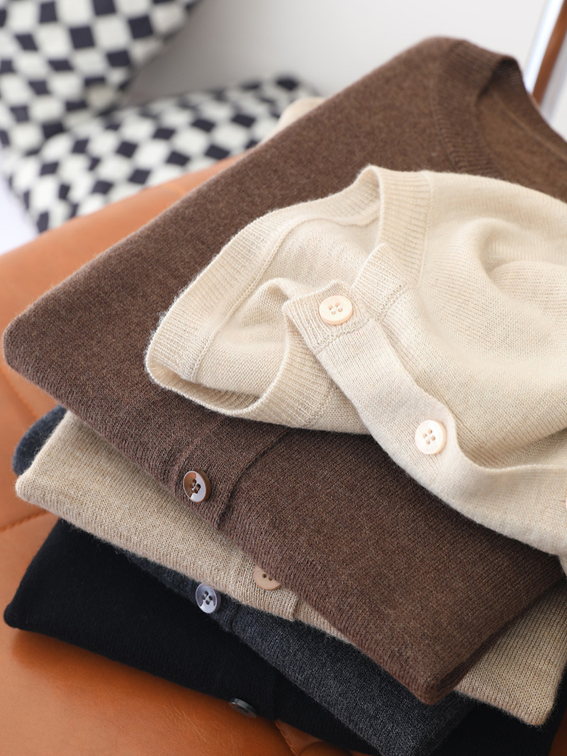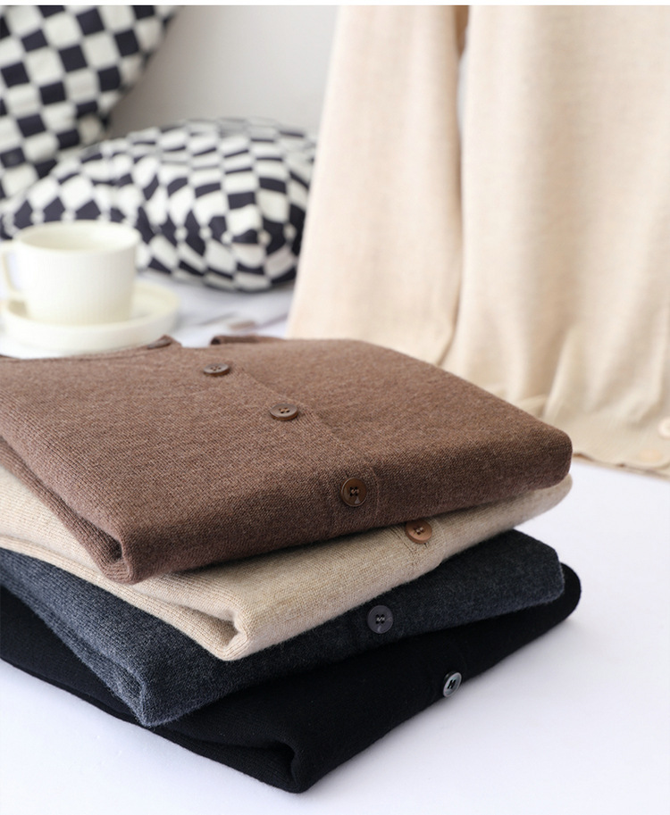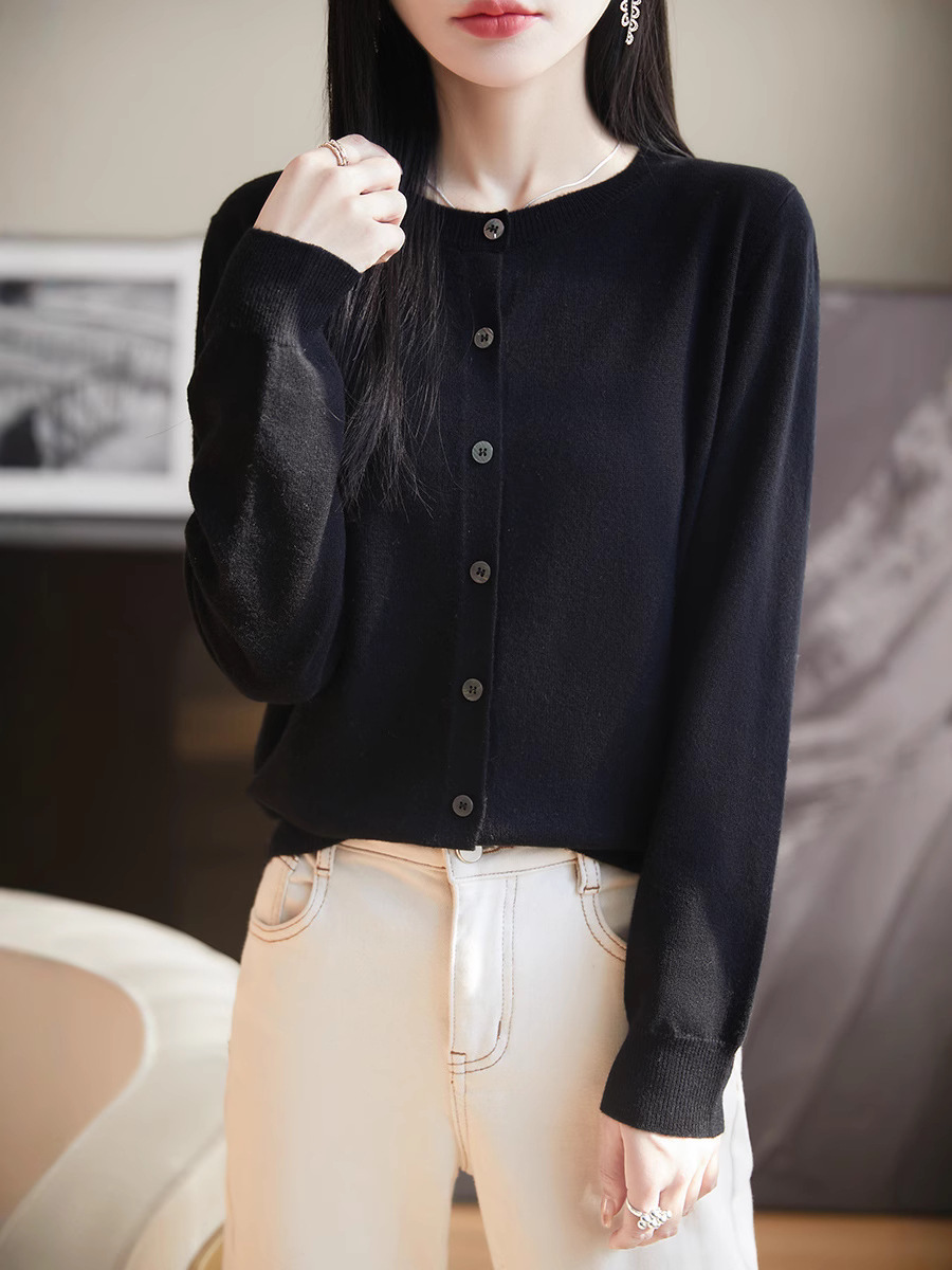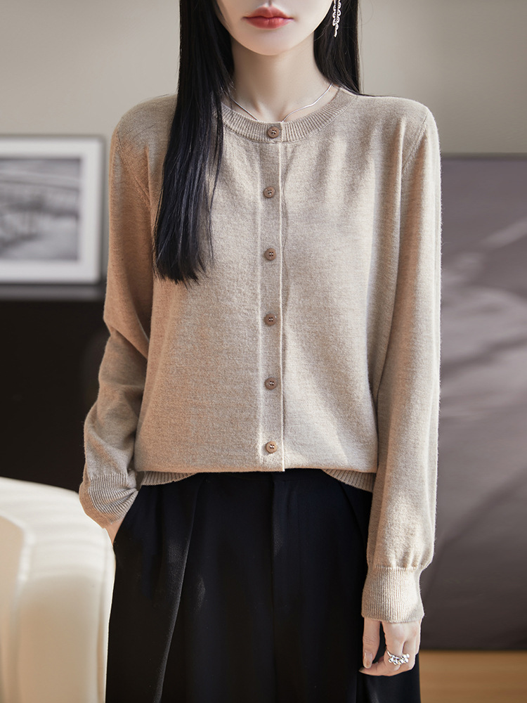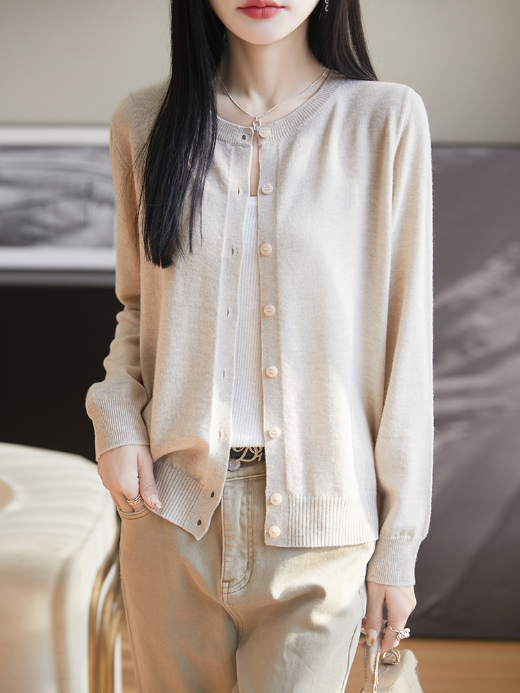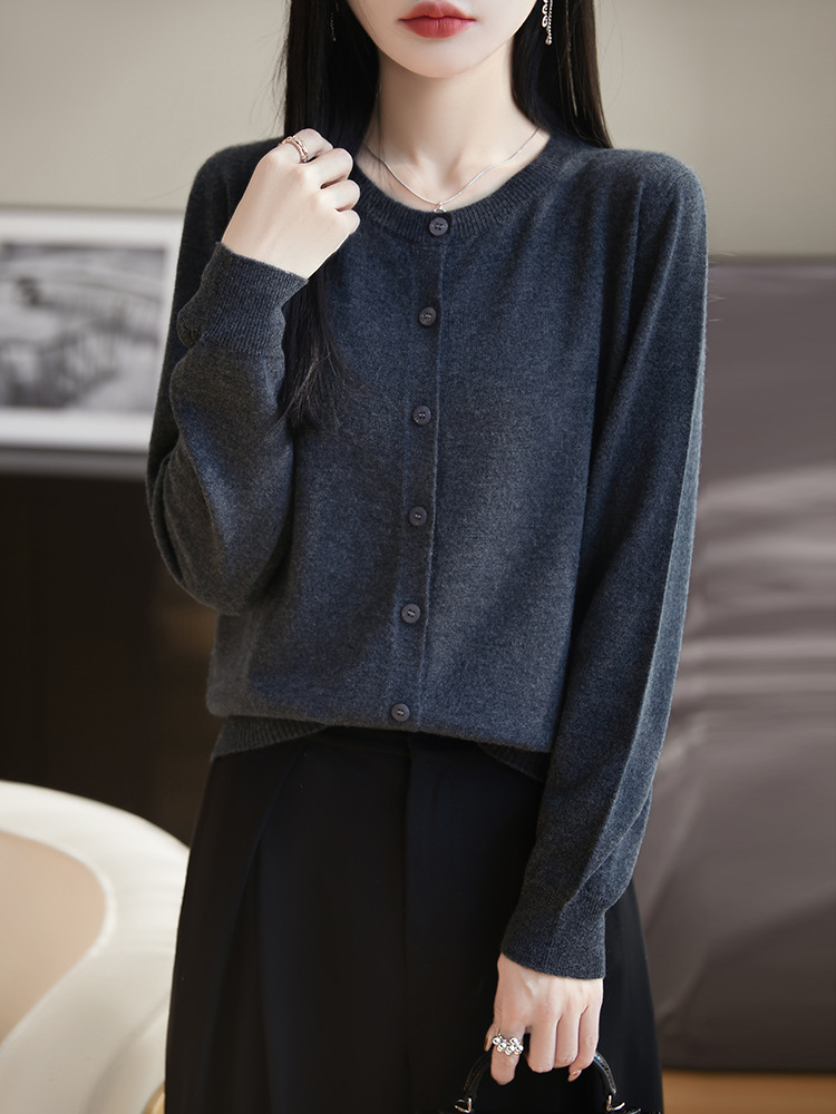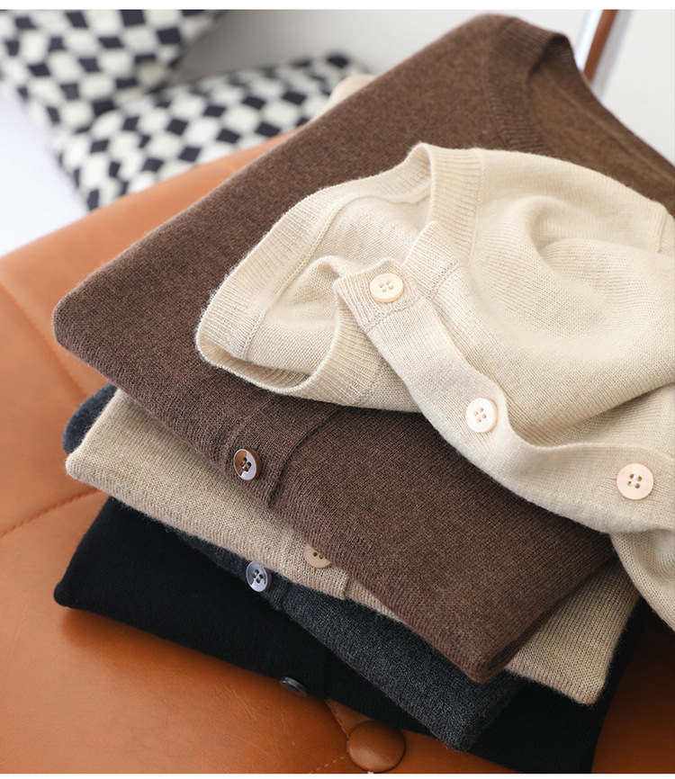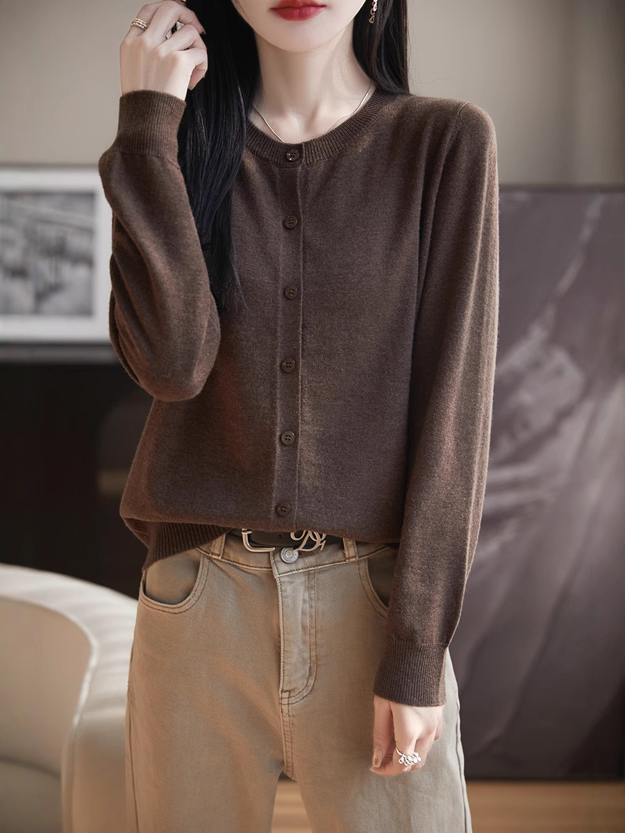 Тонкий кардиган из тонкой пряжи для ранней осени, свободный и стройнящий трикотажный жакет для весны и осени, 100% чистый шерстяной кардиган для женщин с круглым вырезом.
