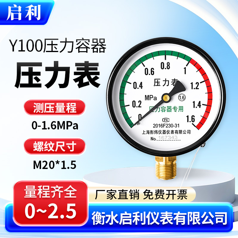 Qili [Y1000 манометр сосуда под давлением 0-1.6 МПа] Радиальный манометр резервуара