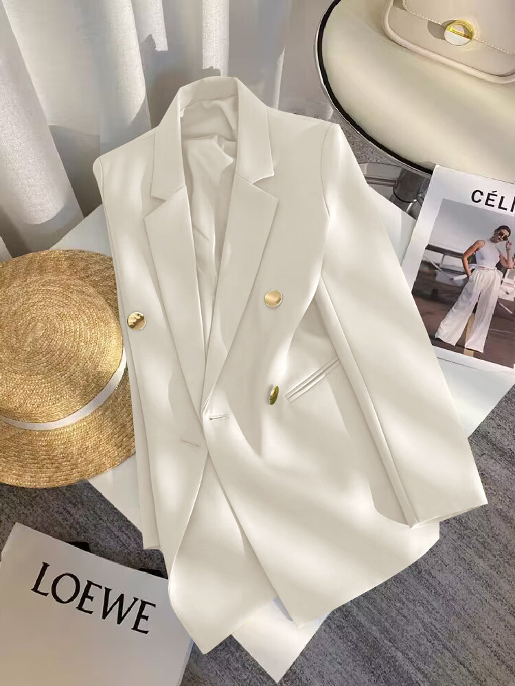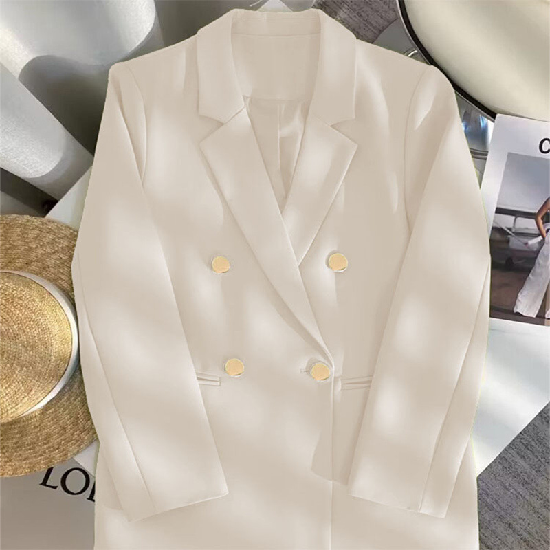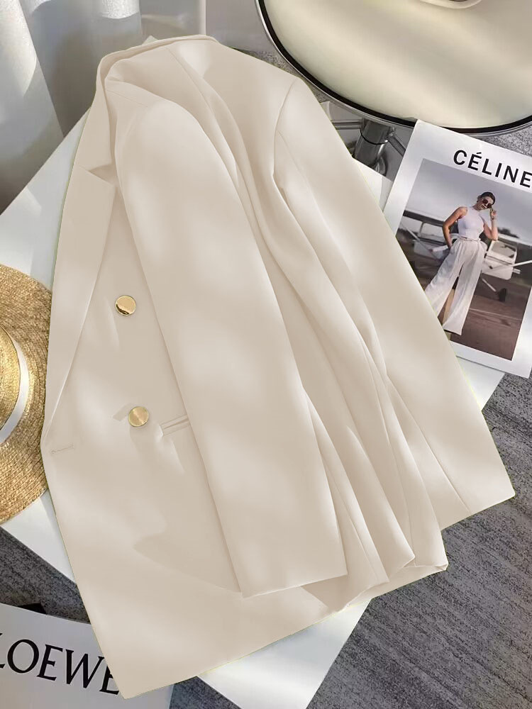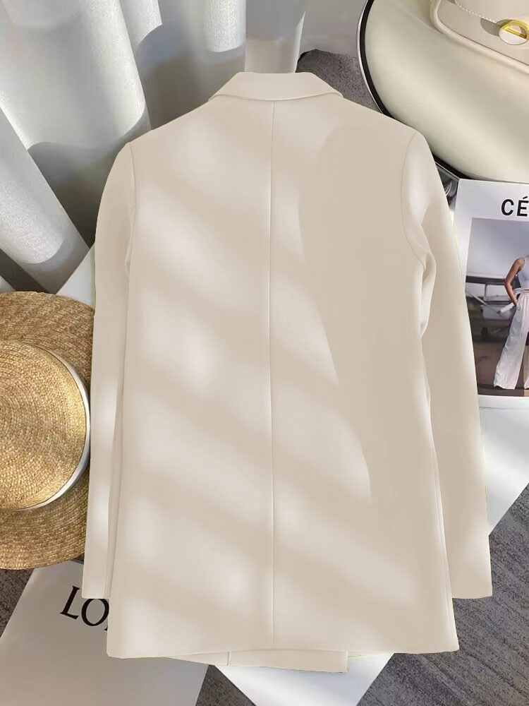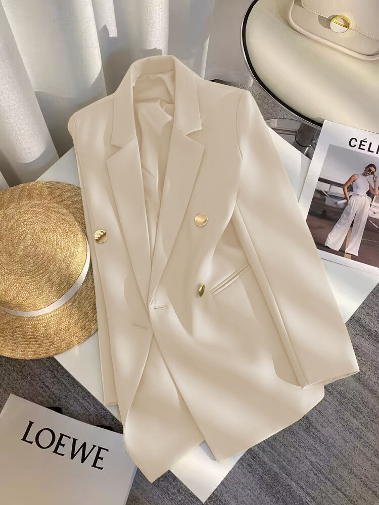 2025 Весенний и Осенний Женский Корейский Новый Дизайн Чувство Простой Темперамент Модный Костюм Пиджак с длинными рукавами Кости Белый Костюм из слоновой кости