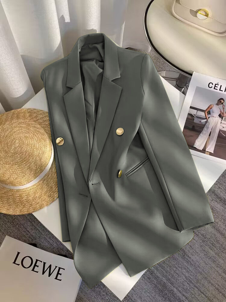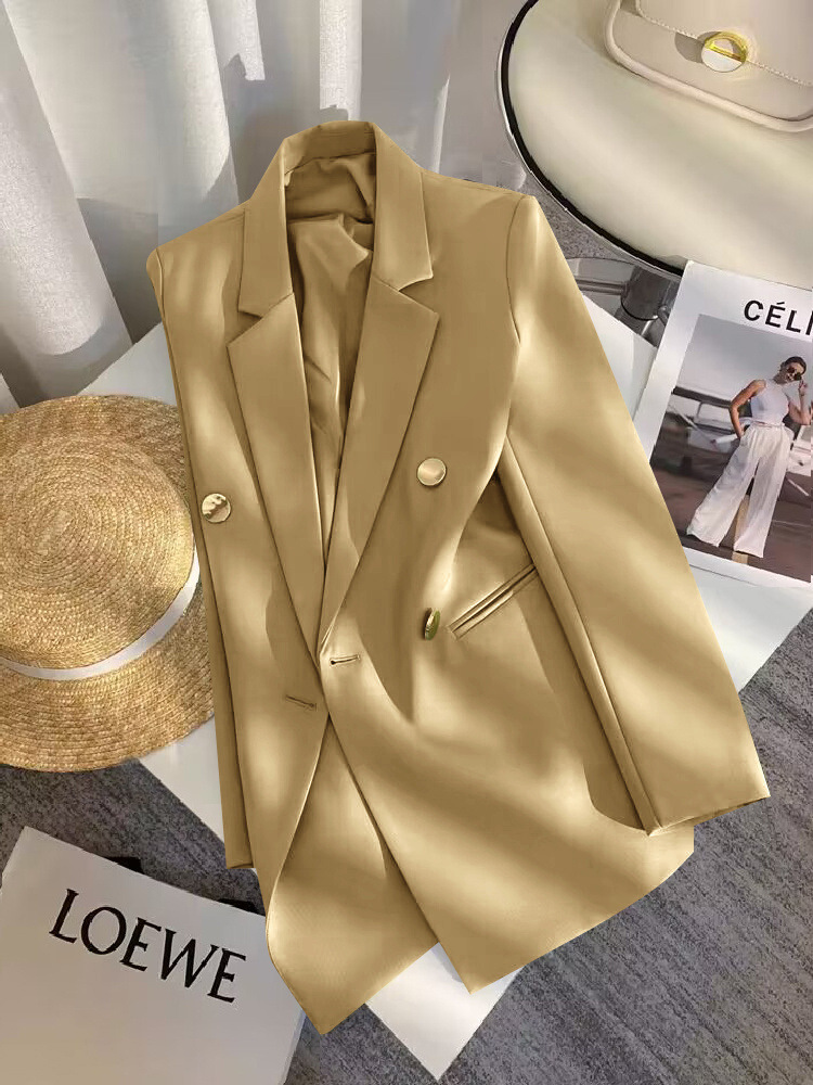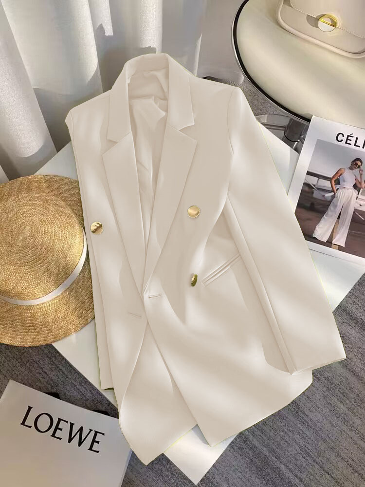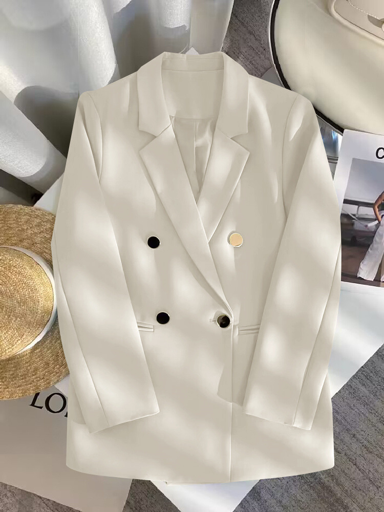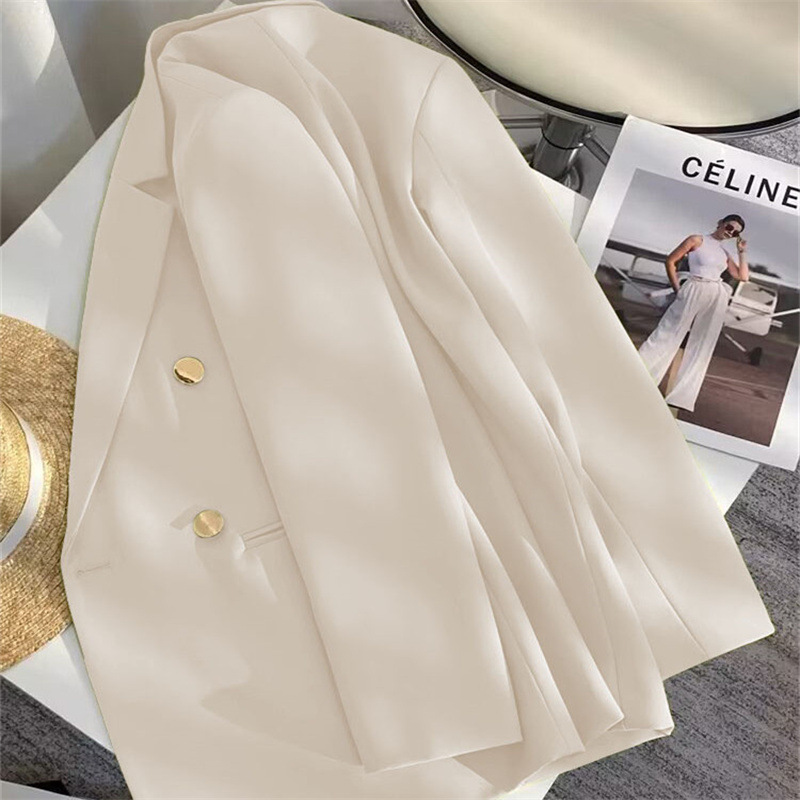 2025 Весенний и Осенний Женский Корейский Новый Дизайн Чувство Простой Темперамент Модный Костюм Пиджак с длинными рукавами Кости Белый Костюм из слоновой кости