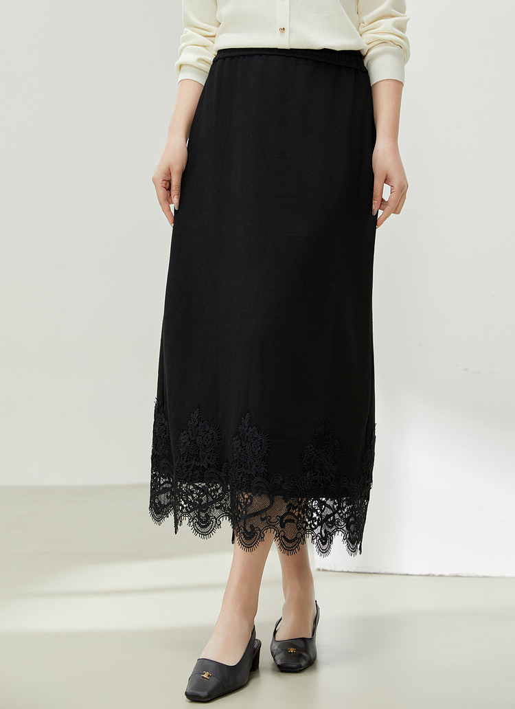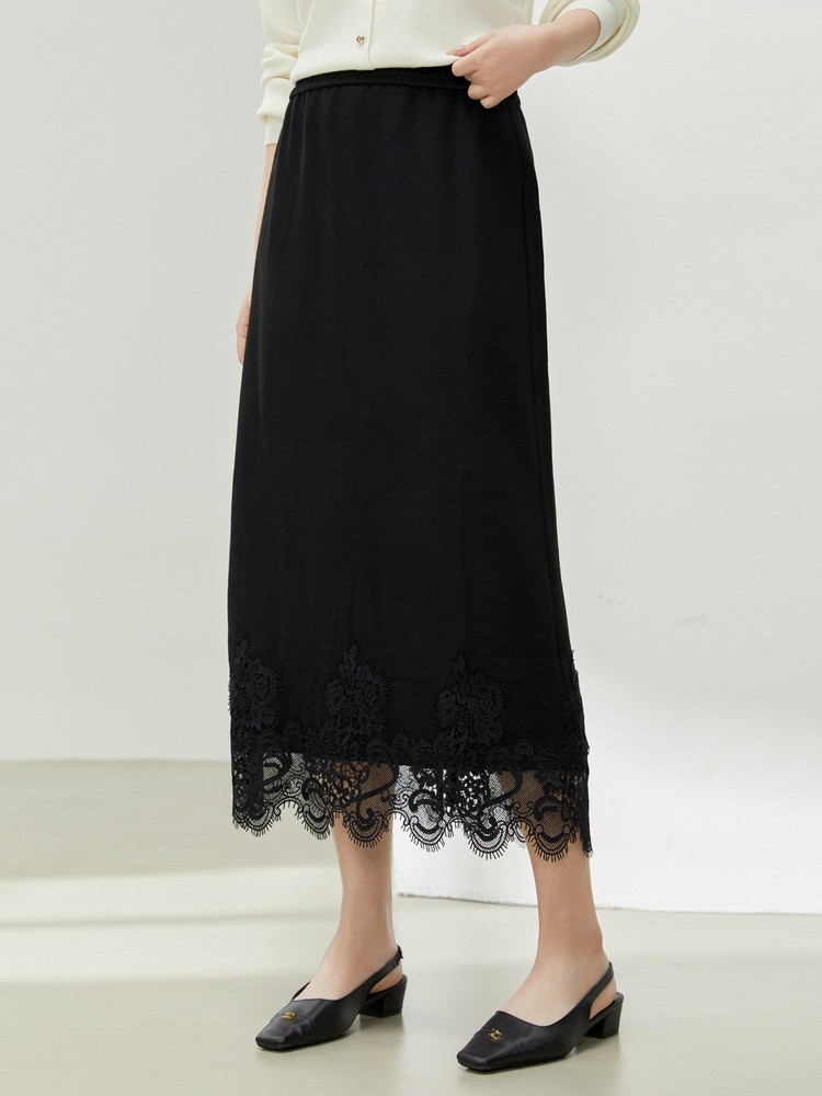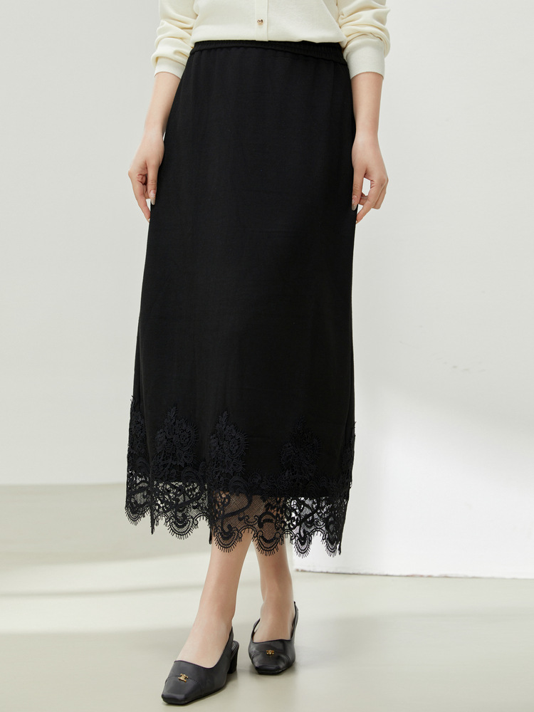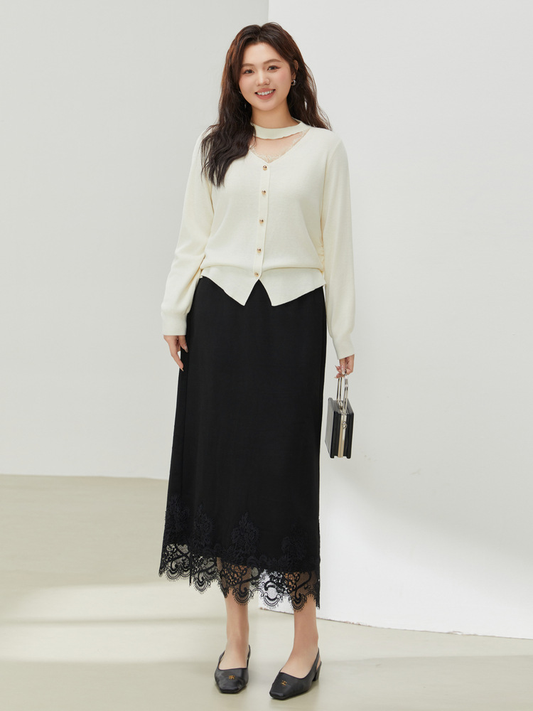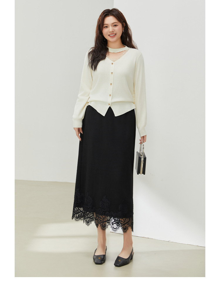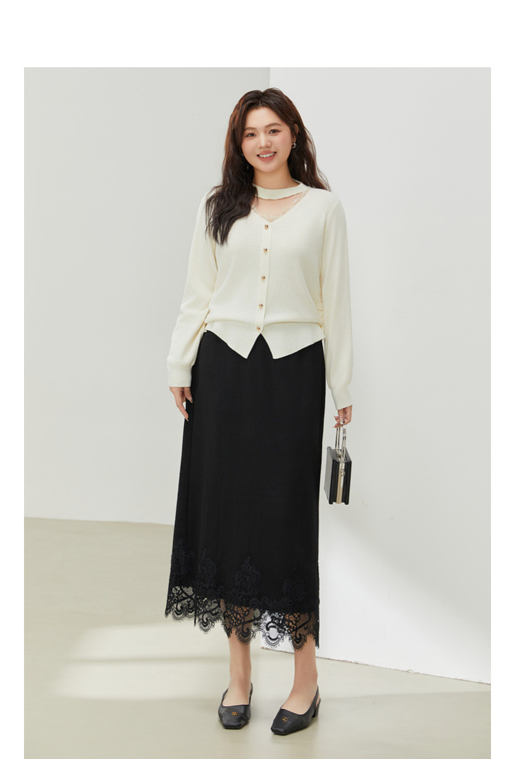 [Элегантная легкая и зрелая кружевная сшитая трикотажная юбка] Funny Show Fat Mm Spring New