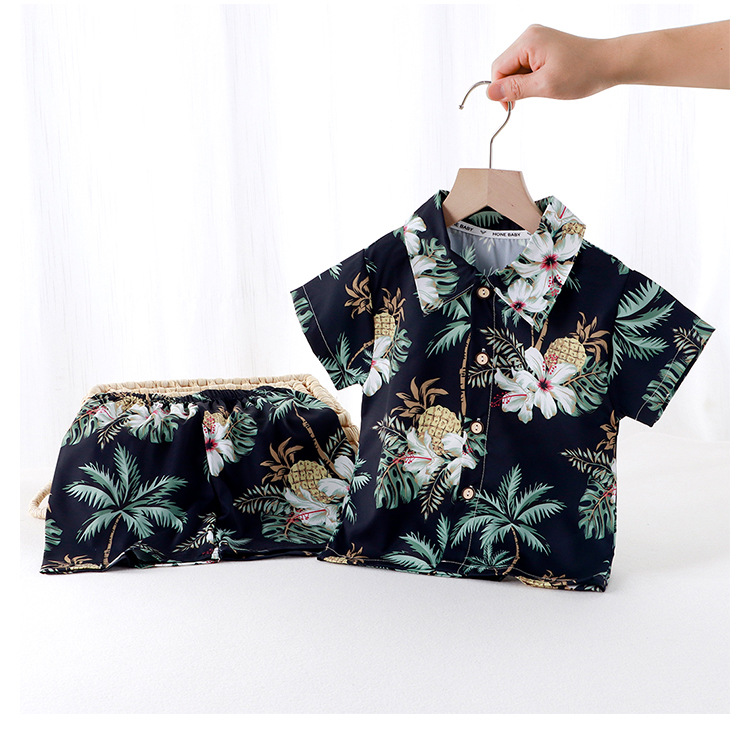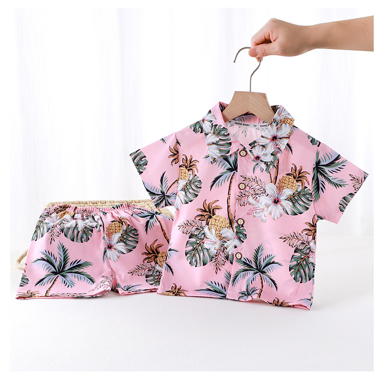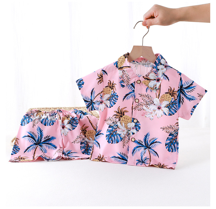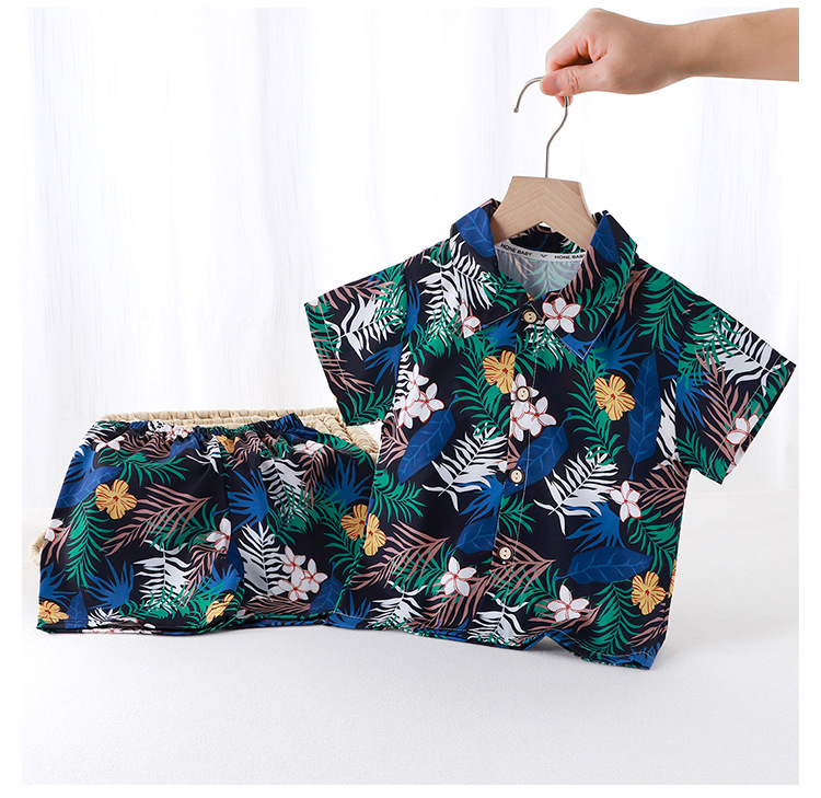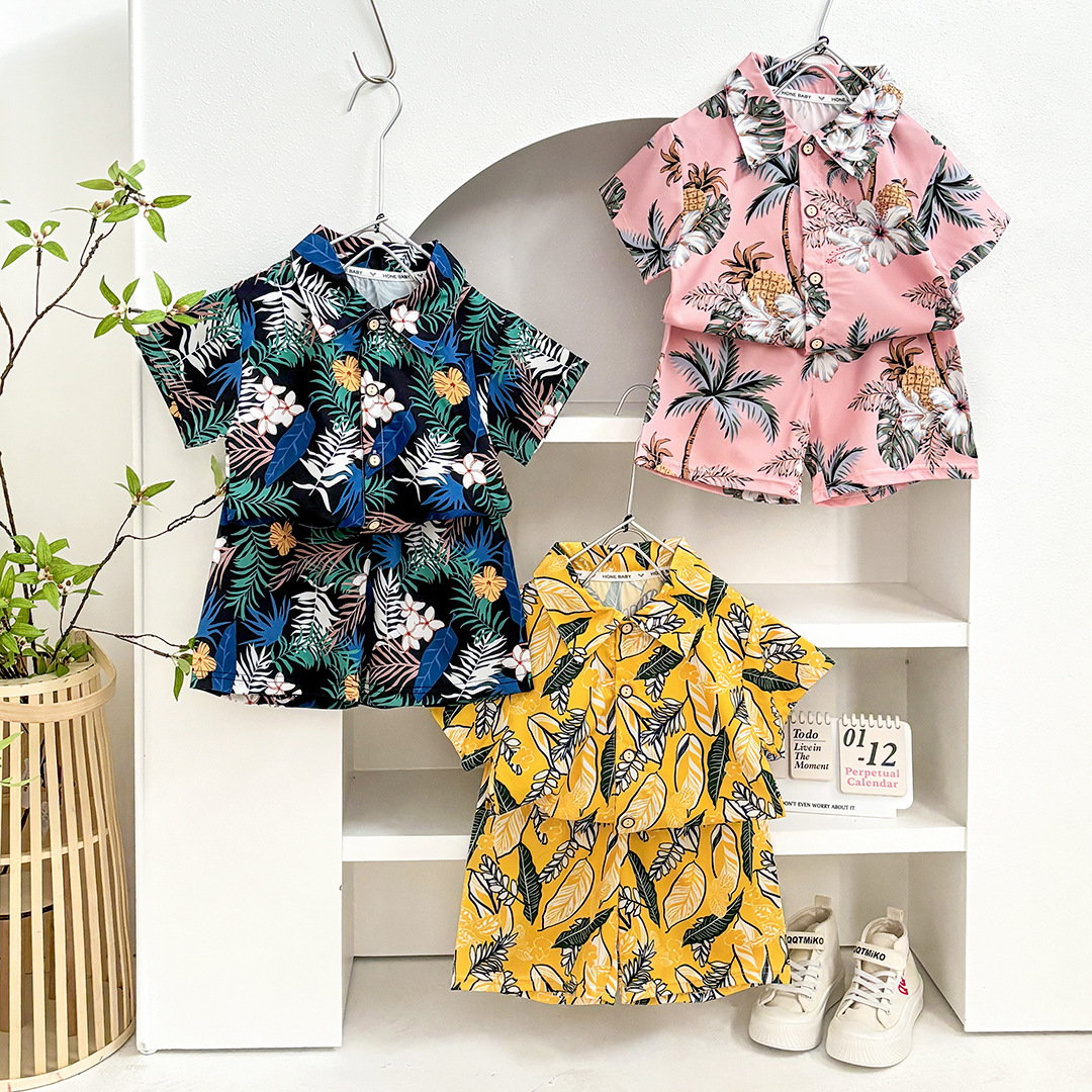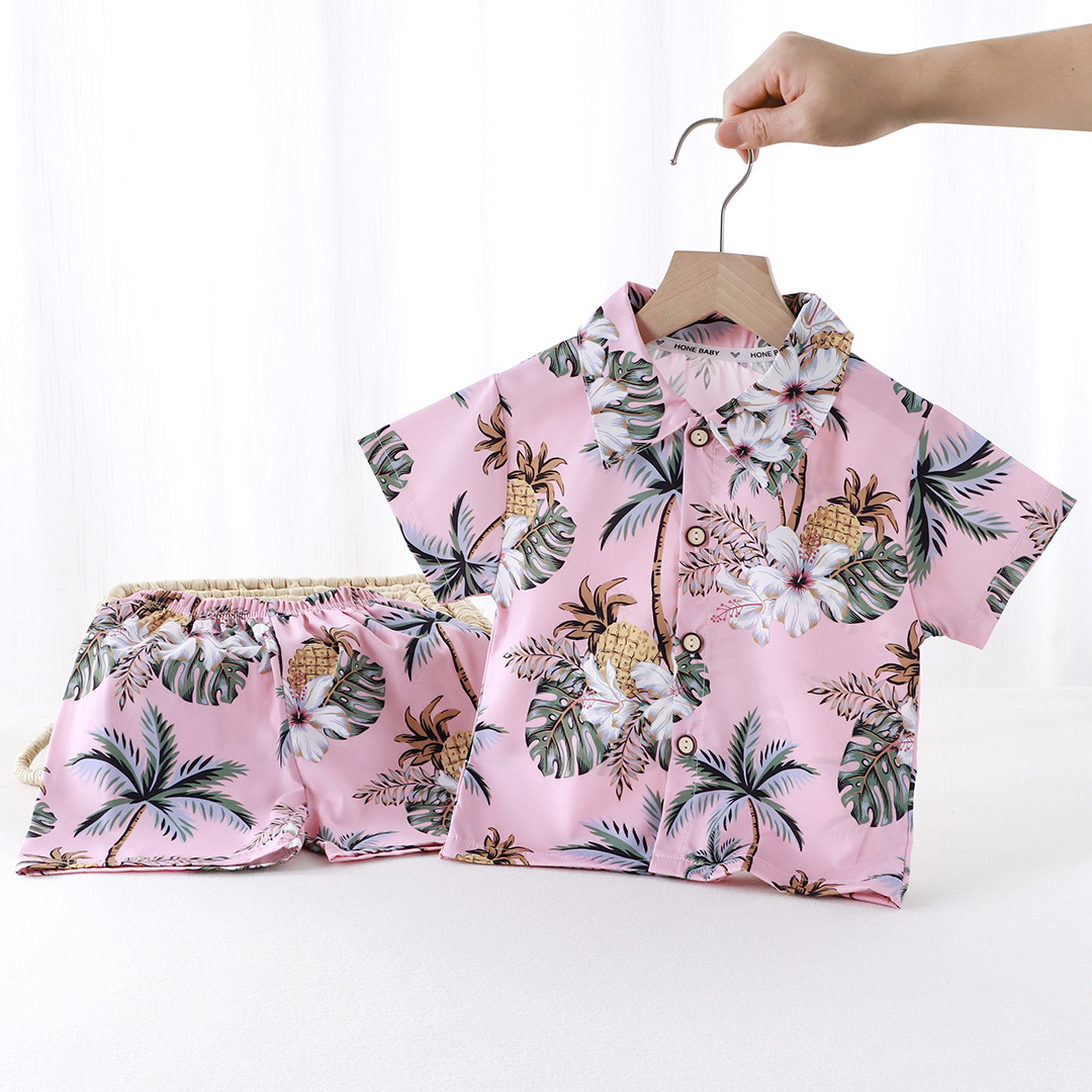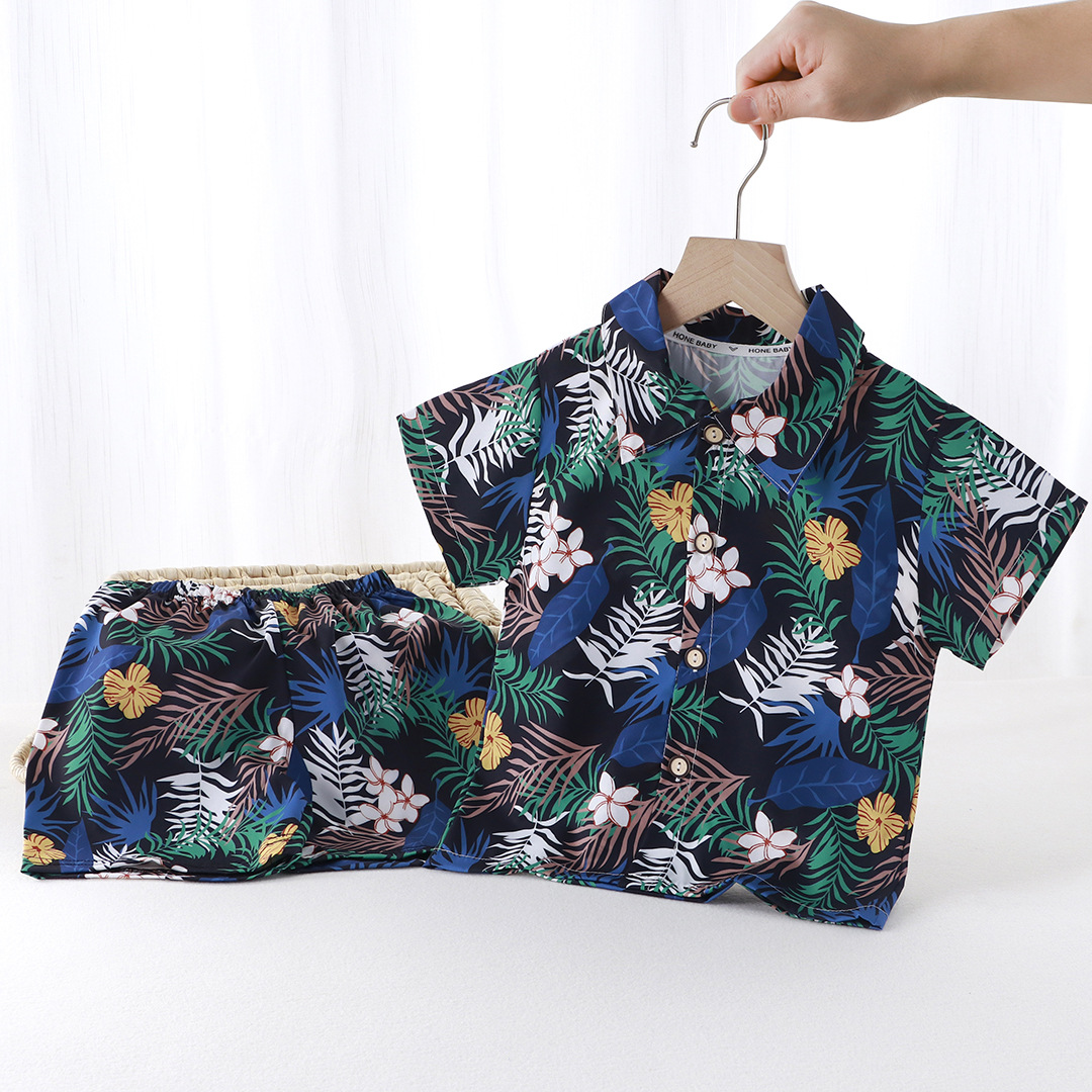 Новый набор детских пляжных рубашек с короткими рукавами для мальчиков и девочек свободные цветочные рубашки для отдыха ветер короткие рукава шорты из двух частей
