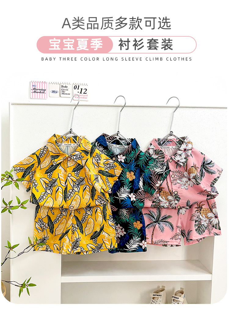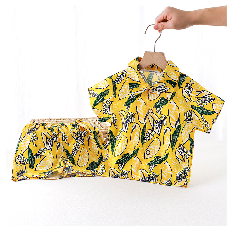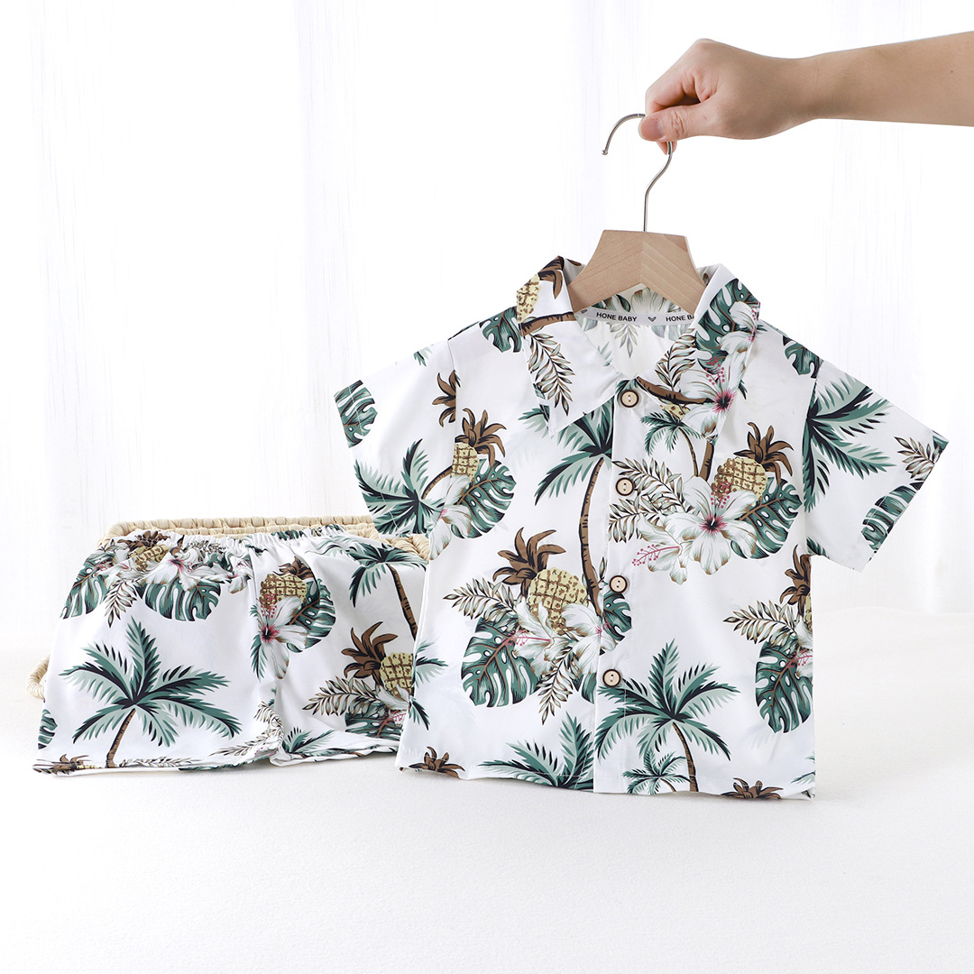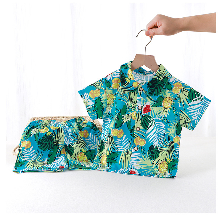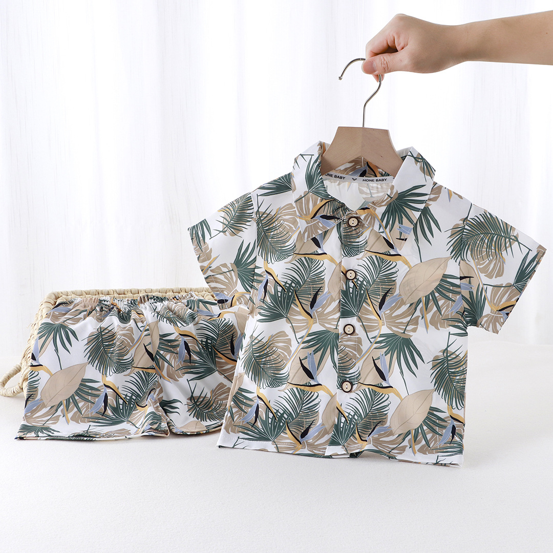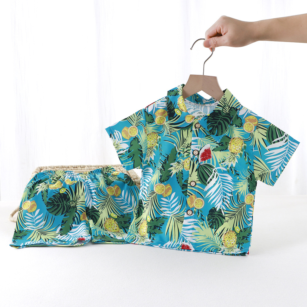 Новый набор детских пляжных рубашек с короткими рукавами для мальчиков и девочек свободные цветочные рубашки для отдыха ветер короткие рукава шорты из двух частей