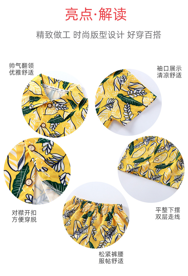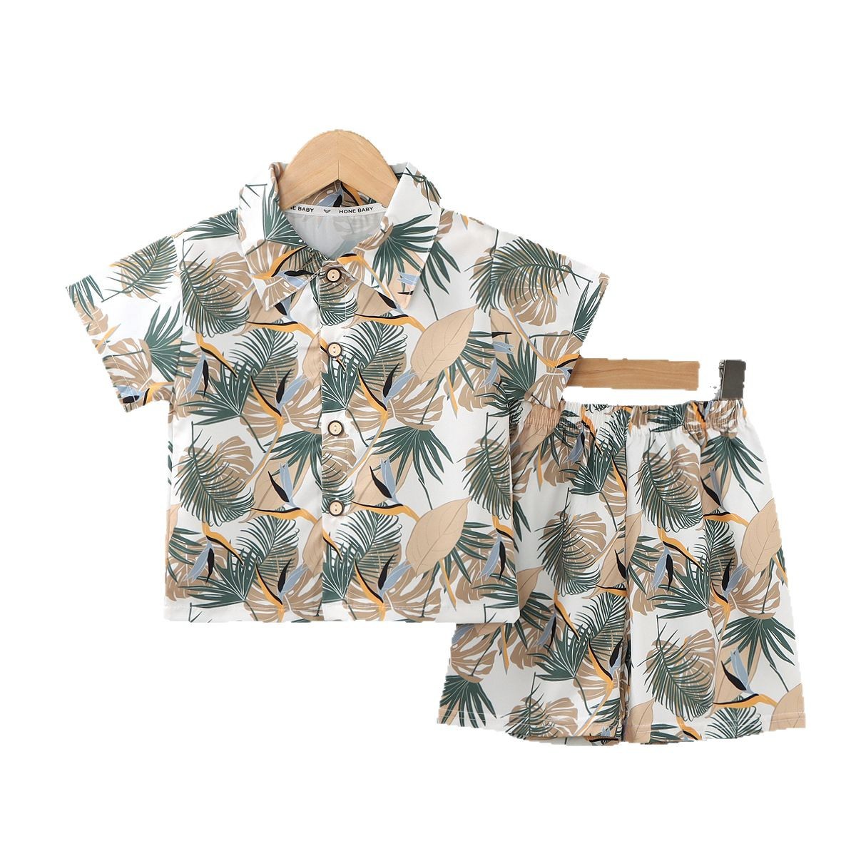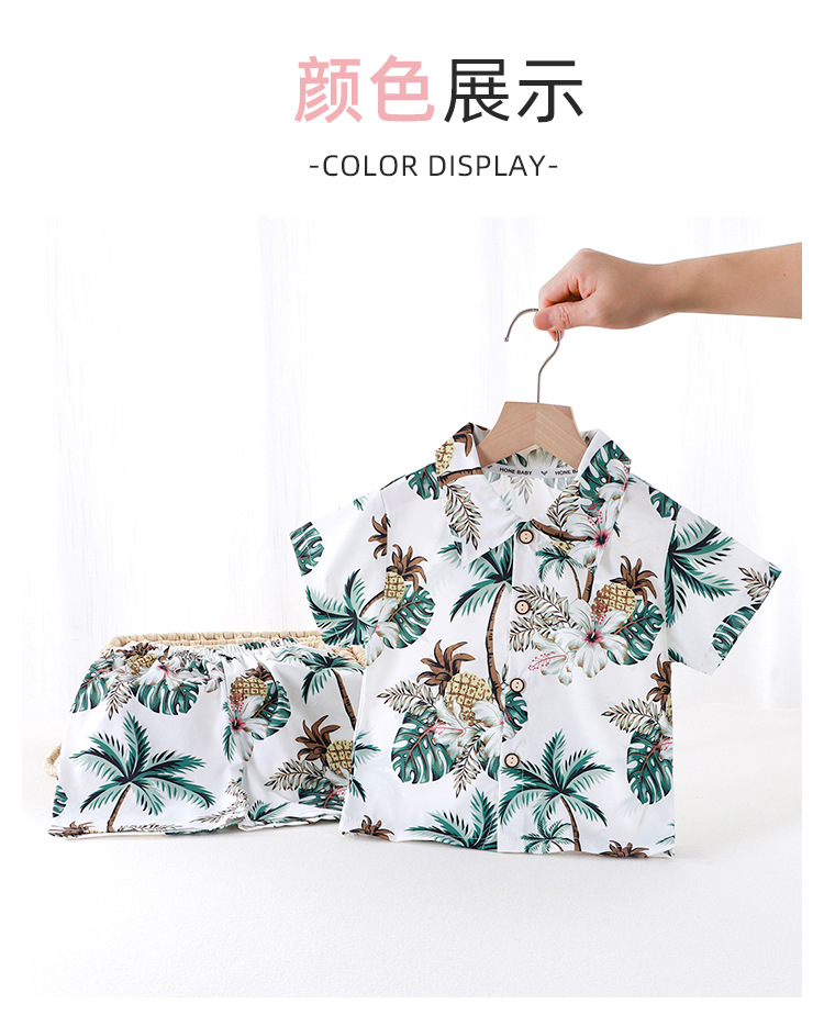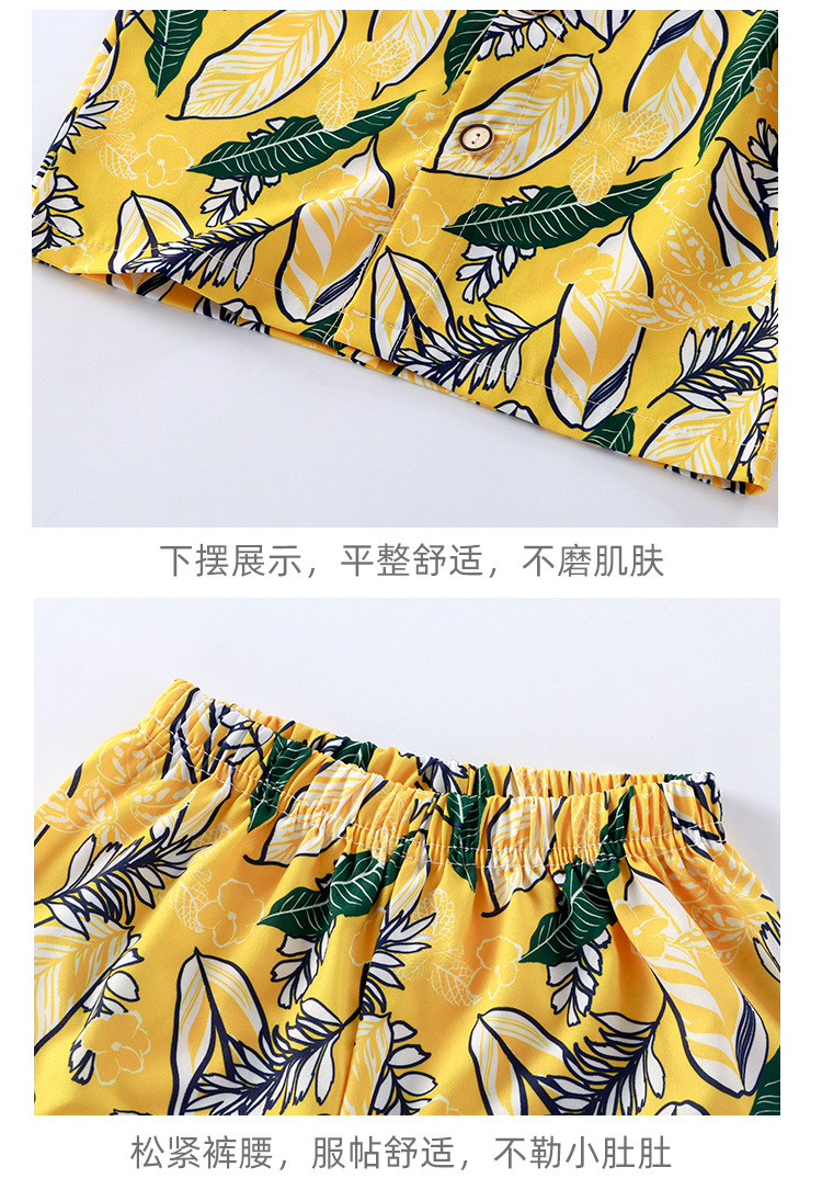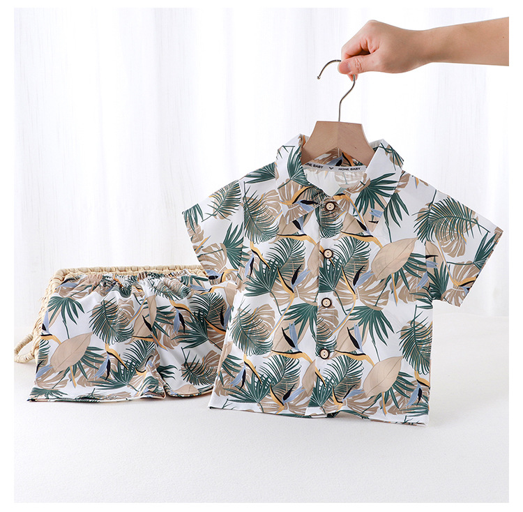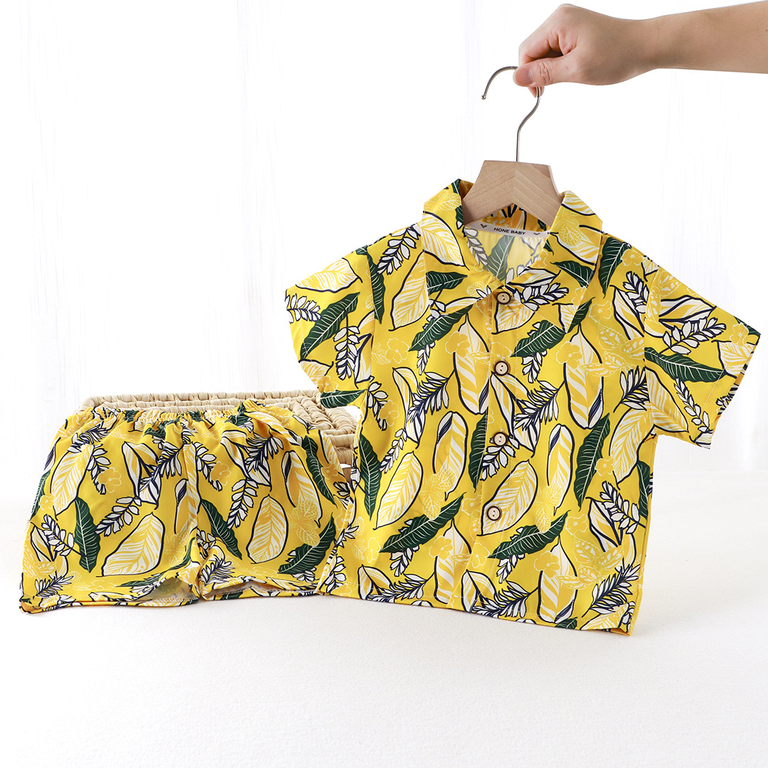 Новый набор детских пляжных рубашек с короткими рукавами для мальчиков и девочек свободные цветочные рубашки для отдыха ветер короткие рукава шорты из двух частей